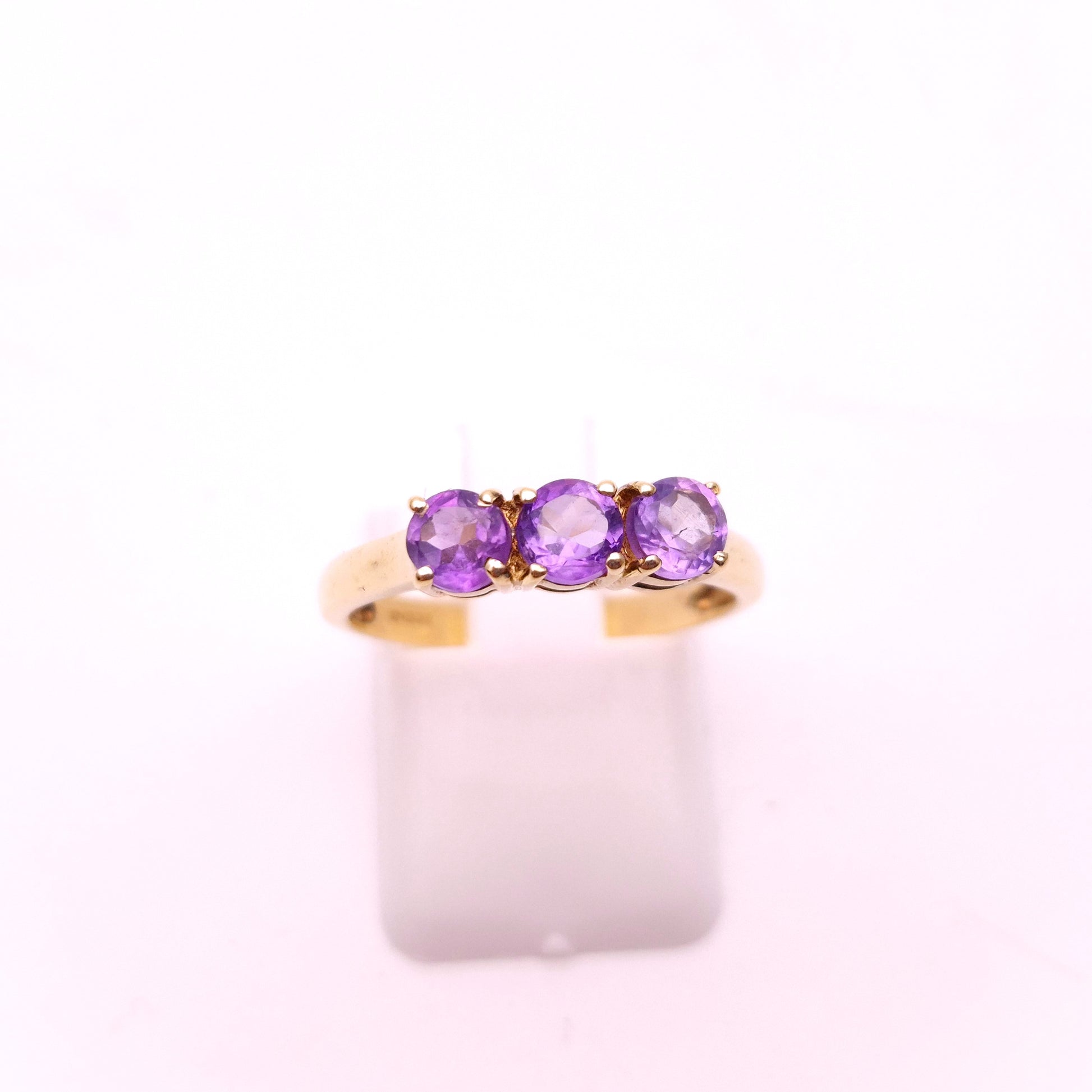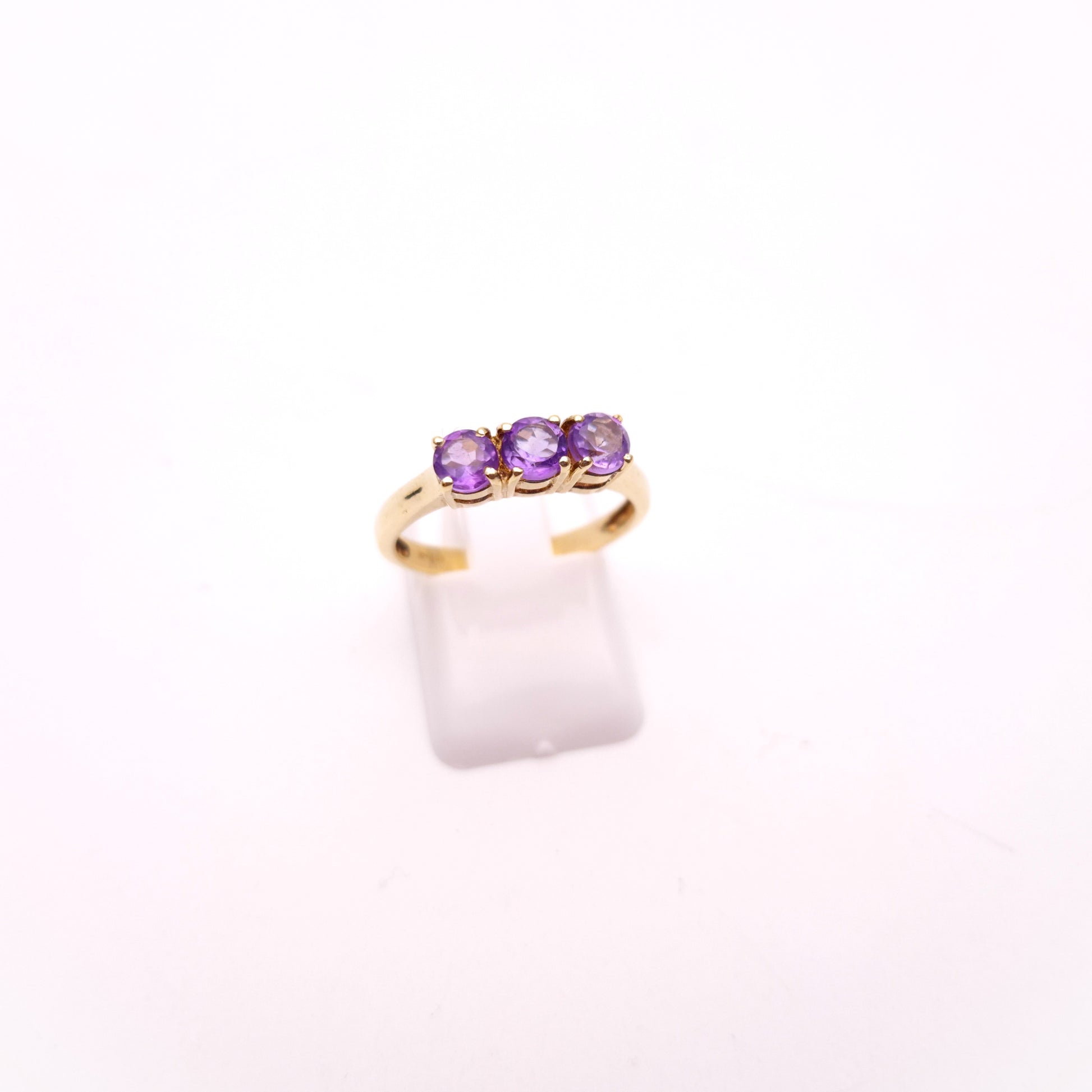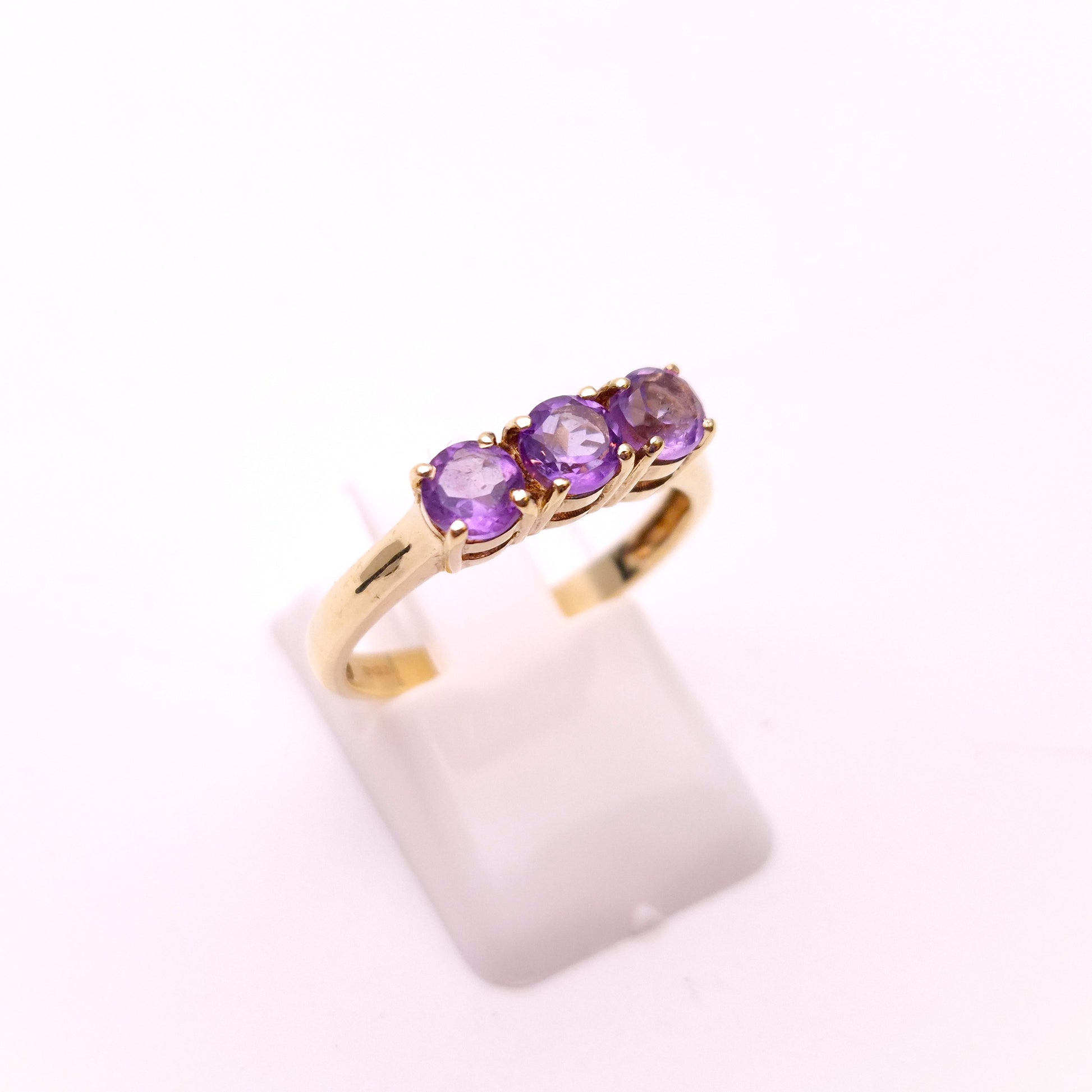 9ct Yellow Gold Amethyst 3 stone Trilogy Ring
