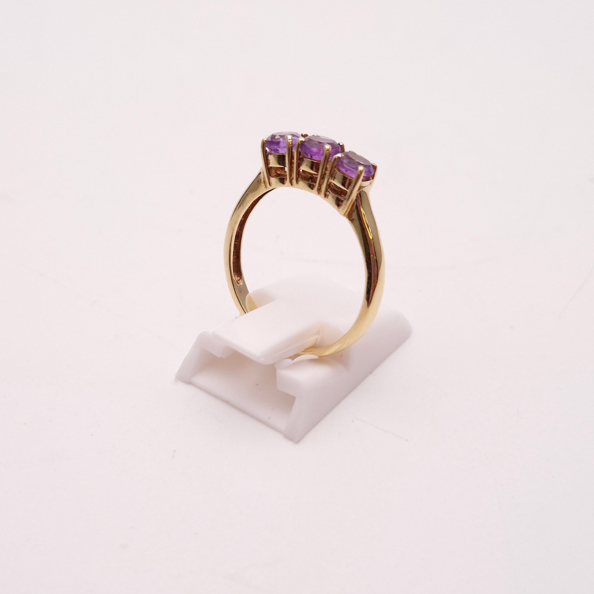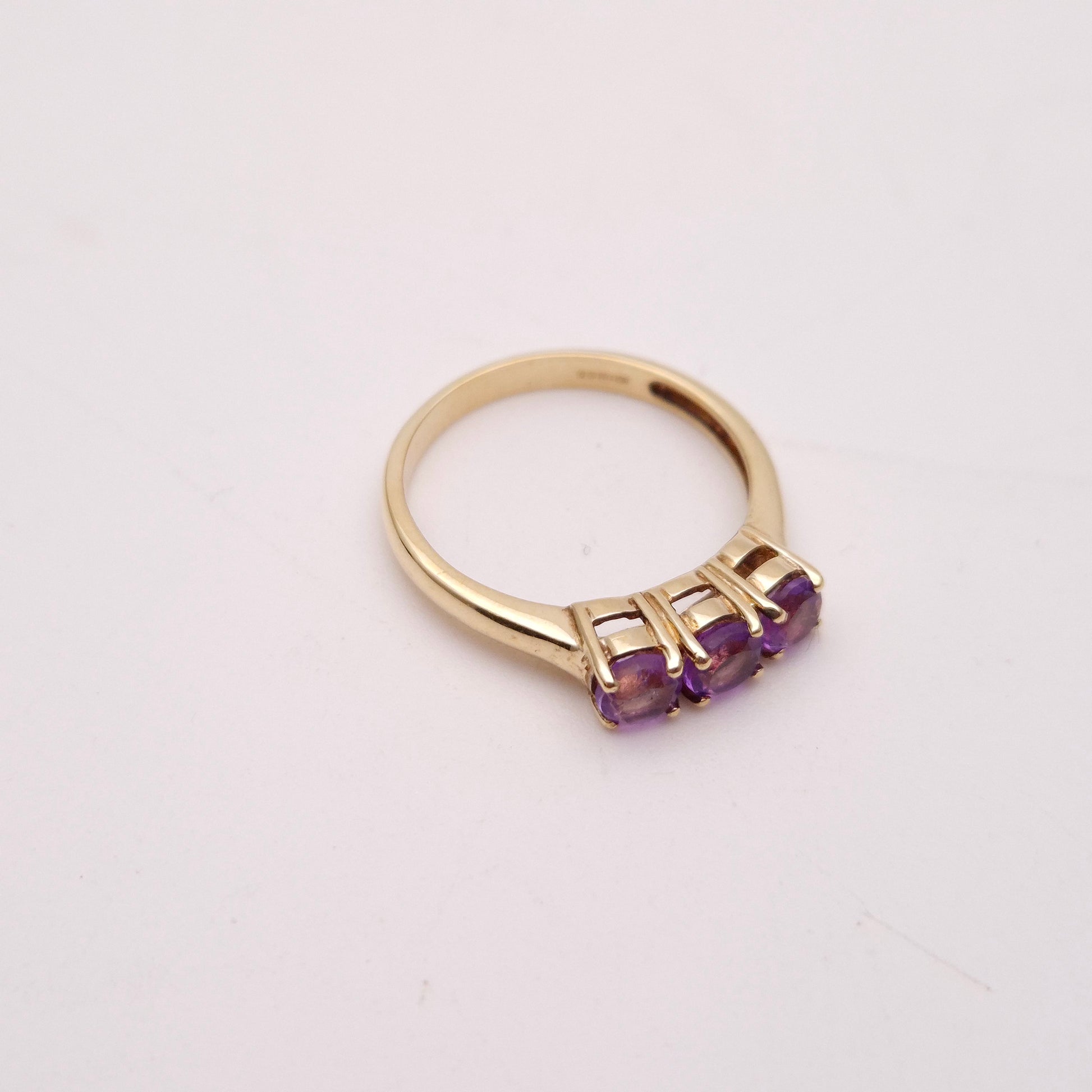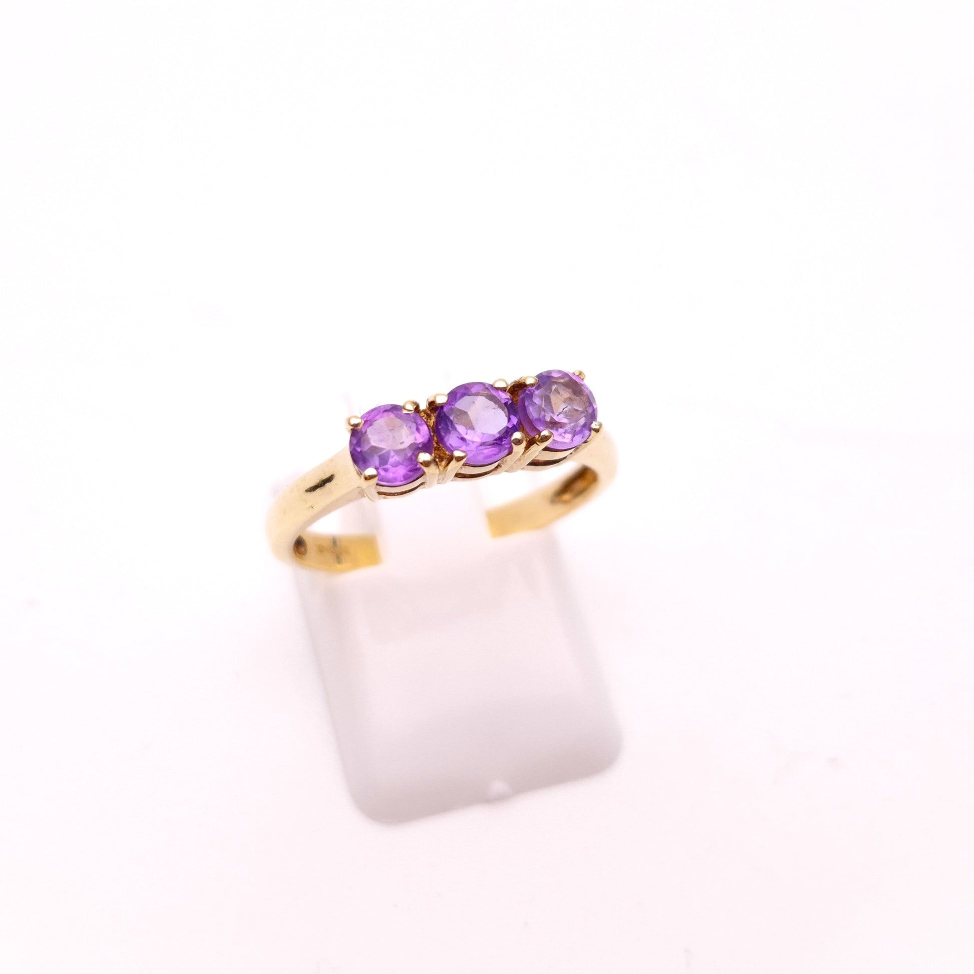 9ct Yellow Gold Amethyst 3 stone Trilogy Ring