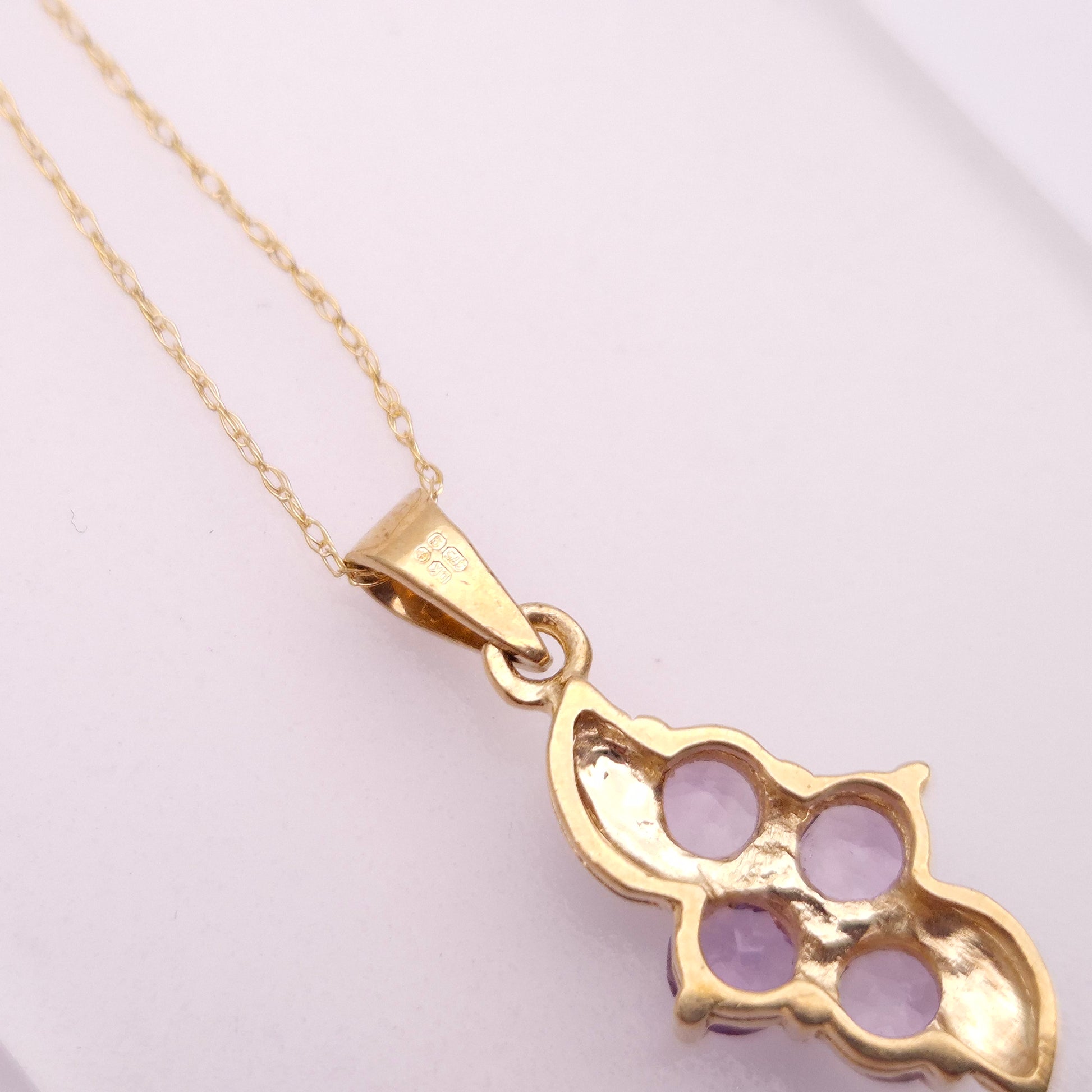 9ct Yellow Gold Amethyst 4 Stone Pendant and Chain Necklace