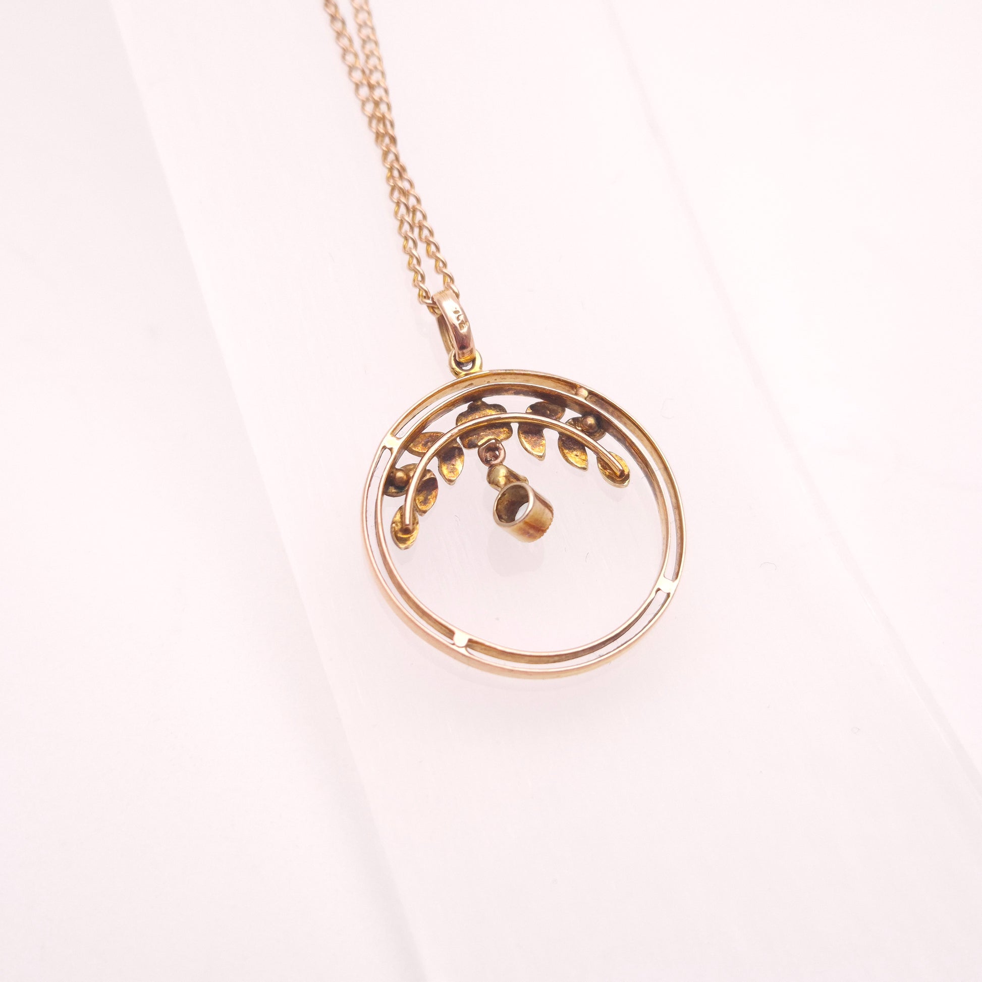 This enchanting necklace is a superb example of Art Nouveau and Edwardian era jewellery, prized for its delicate, naturalistic, and flowing design. It is crafted in warm 9ct yellow gold, offering a lovely period-appropriate tone.