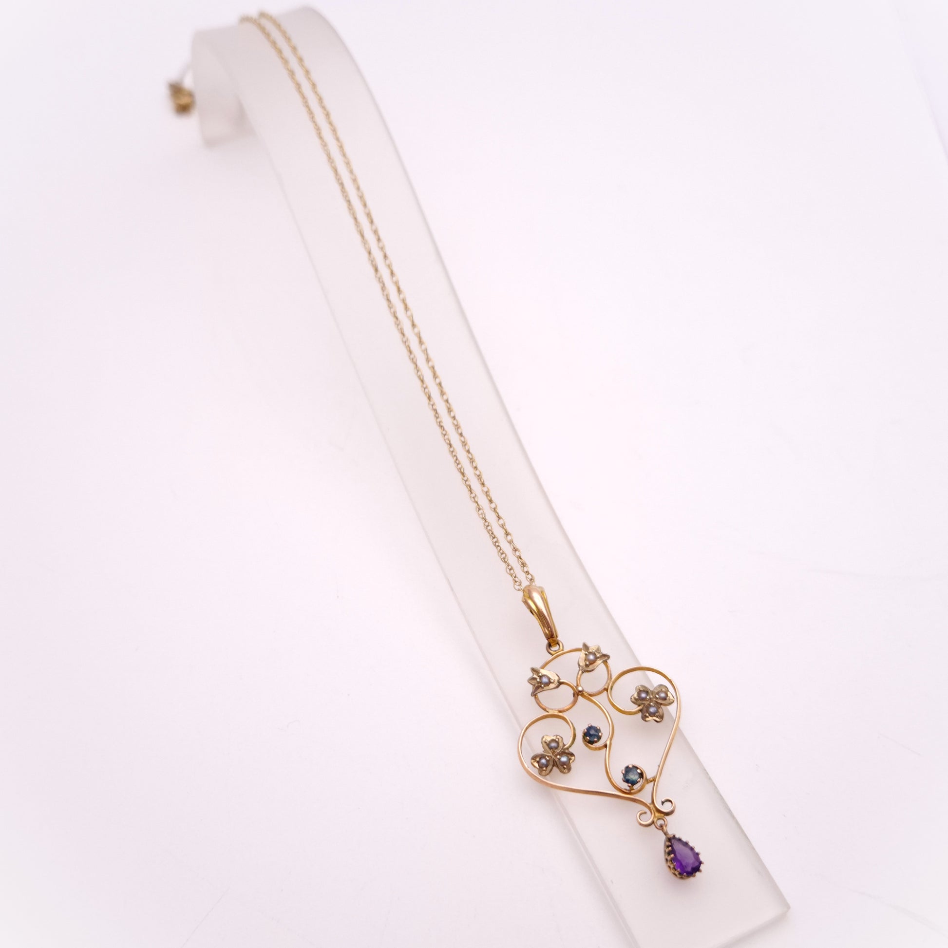9ct Yellow Gold Antique Edwardian Pearl, Amethyst and Sapphire Necklace