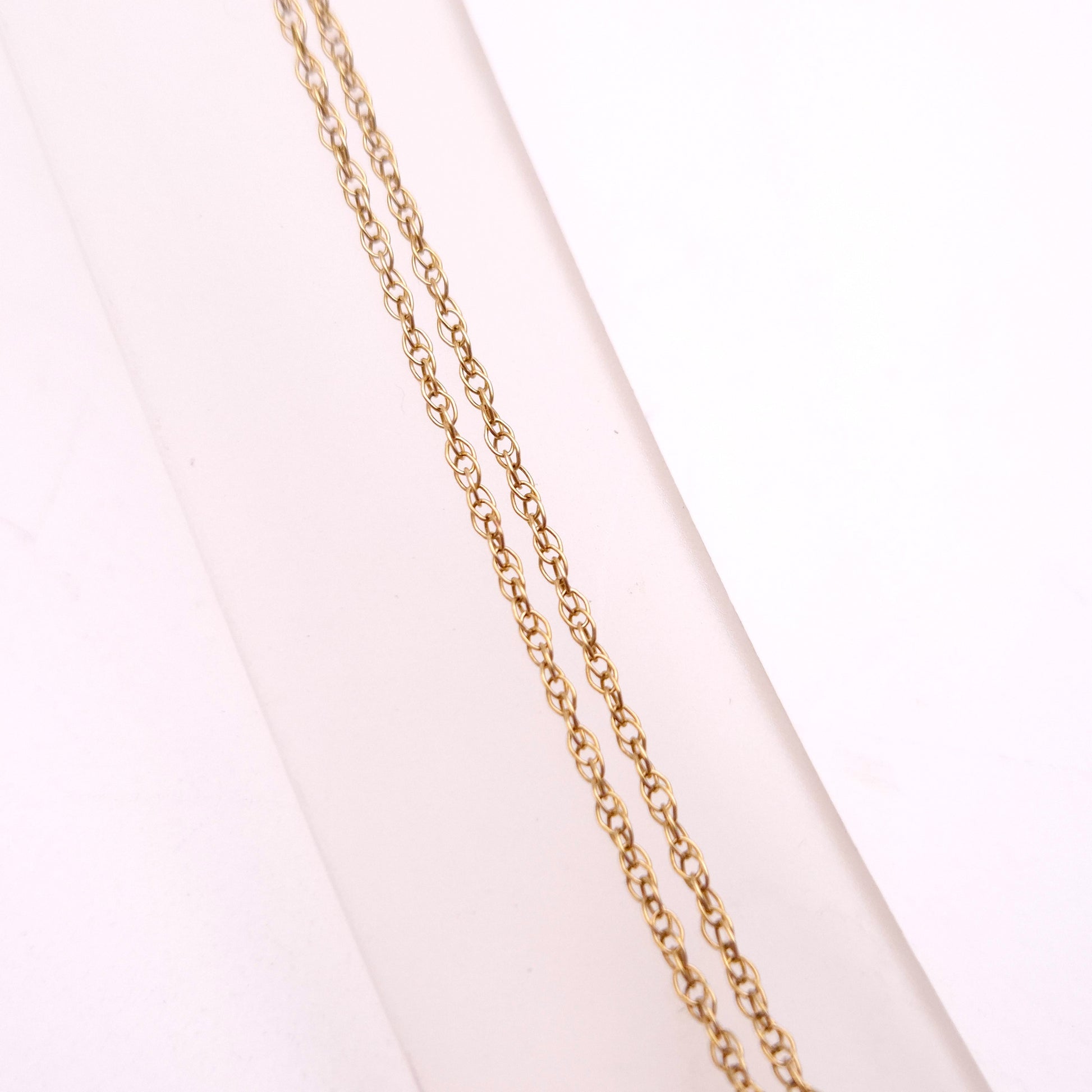This exquisite 9ct yellow gold necklace whispers tales of the Edwardian era, a time of elegance and delicate beauty. At its heart lies a captivating lavaliere pendant, a testament to the period's graceful designs.