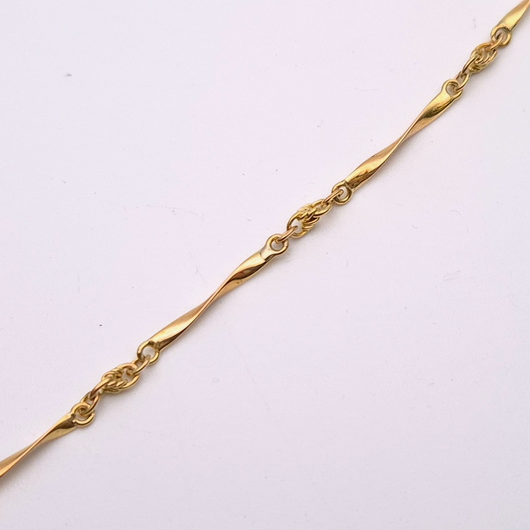 This showstopper necklace is a wonderful example of art nouveau styling and comprises of a fancy link chain and a large pendant piece. The chain is 42cm / 16.5 inches and supports the pendant piece which is floral in design having small textured flowers and leaves on the piece, classic linework and is set with a large oval cut amethyst at the centre, a pearl in the lower section and from the bottom a pear cut peridot hangs freely .