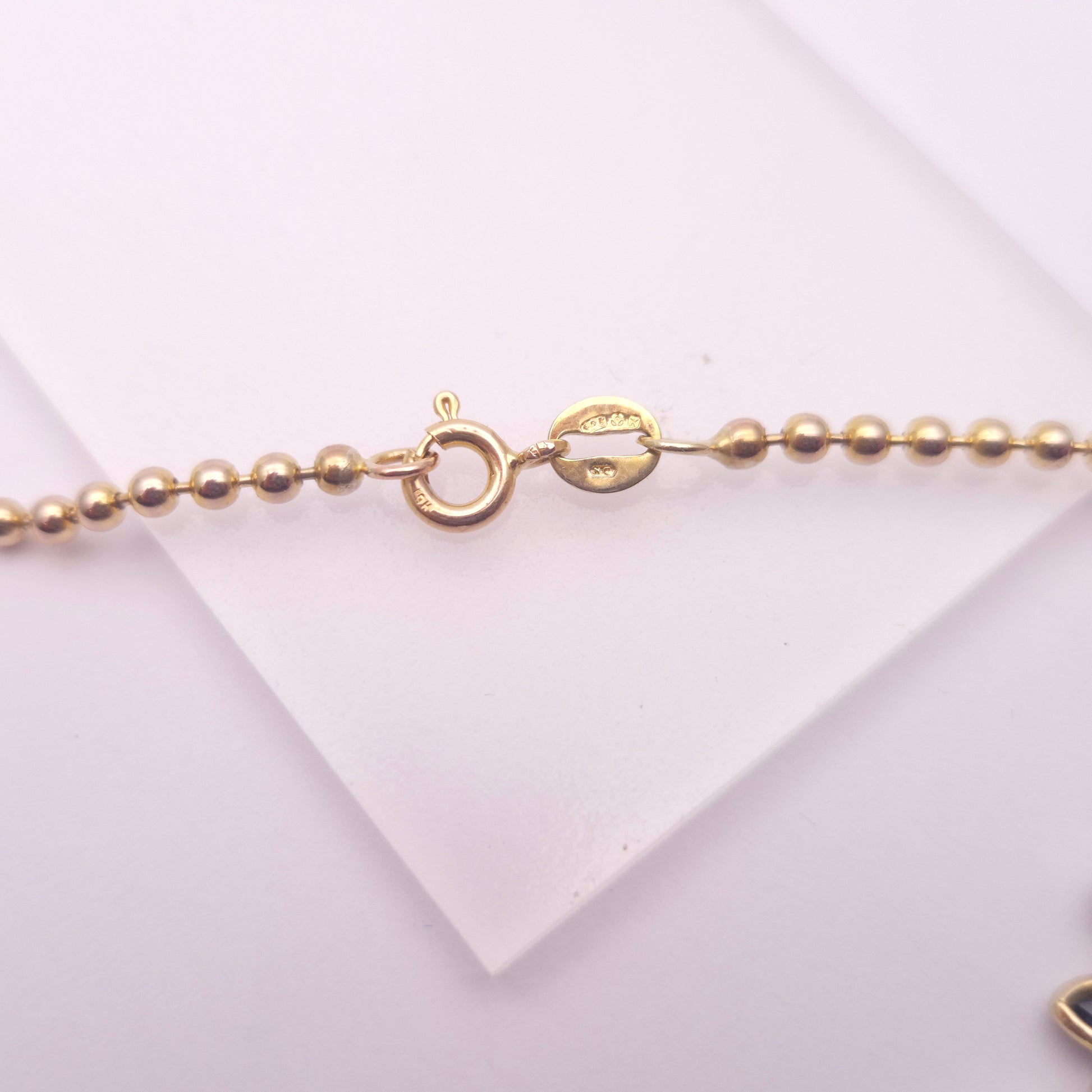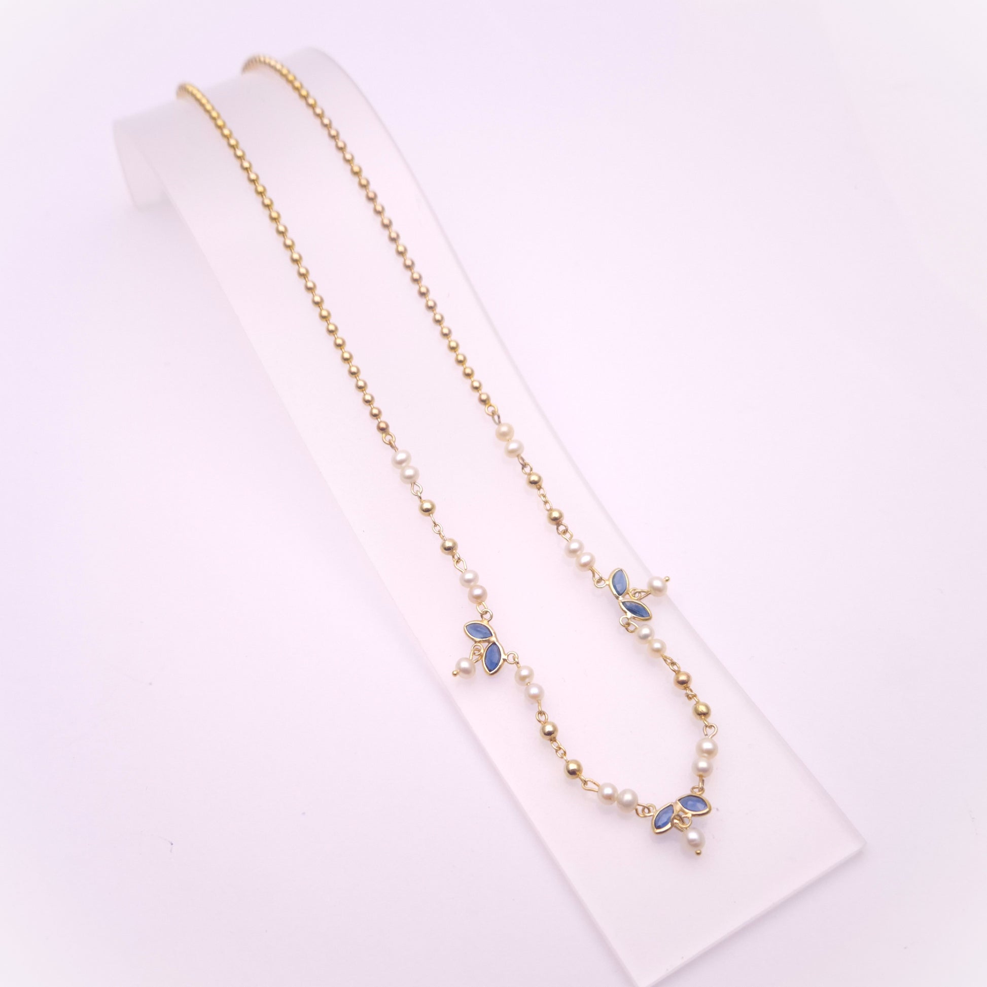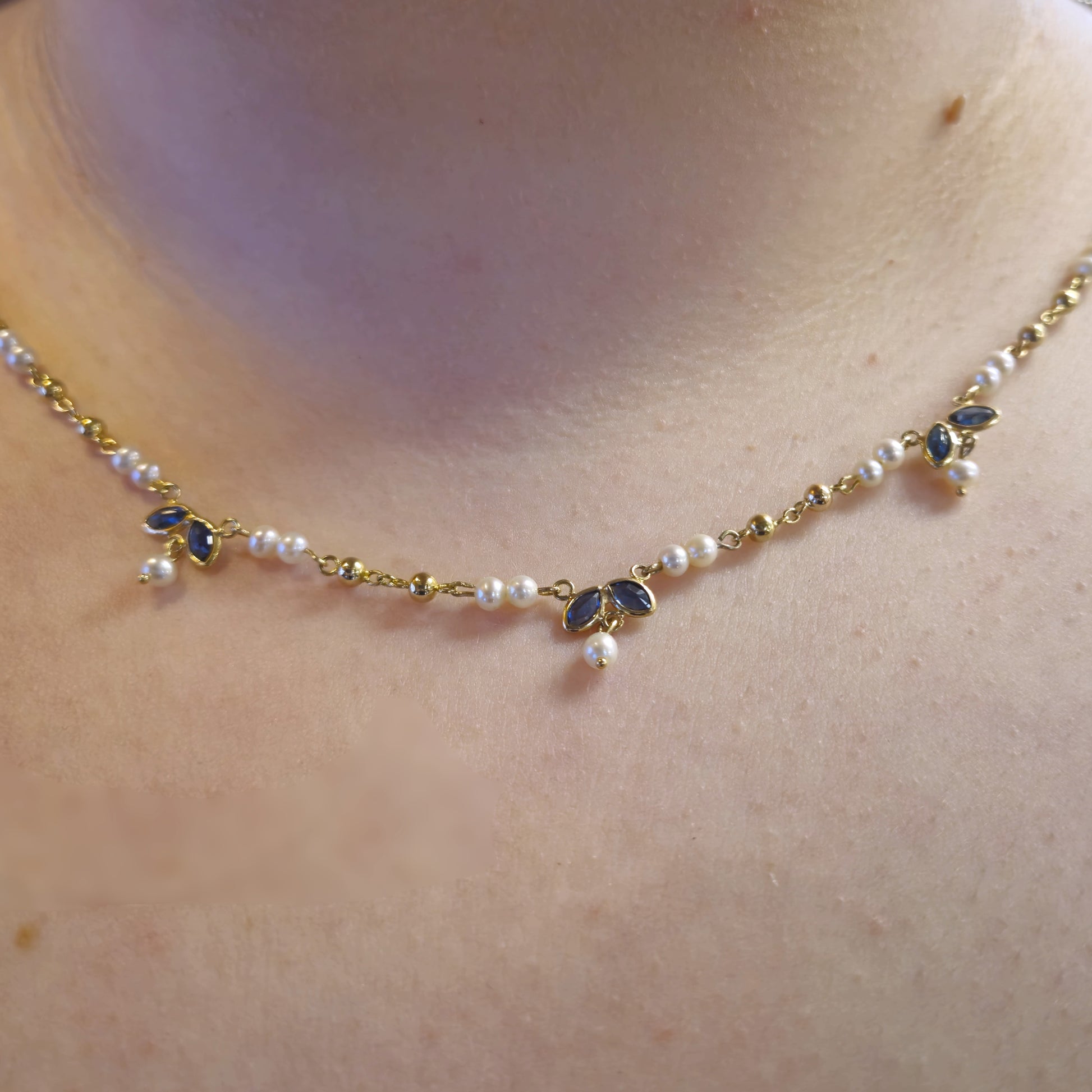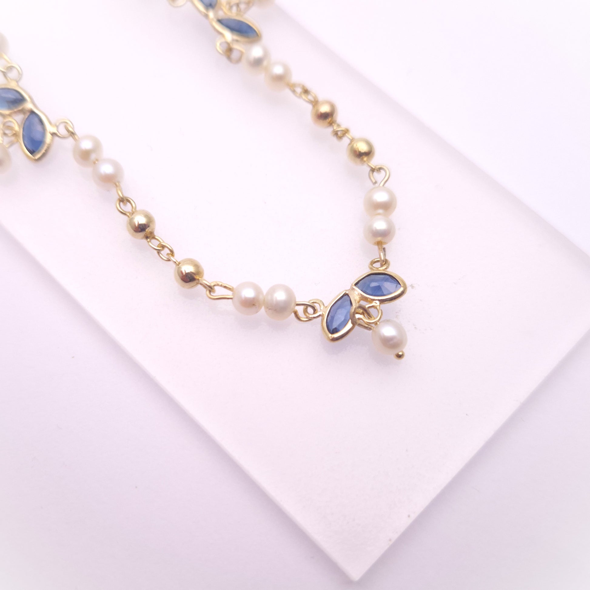9ct Yellow Gold Beaded Chain Sapphire and Pearl Delicate Necklace