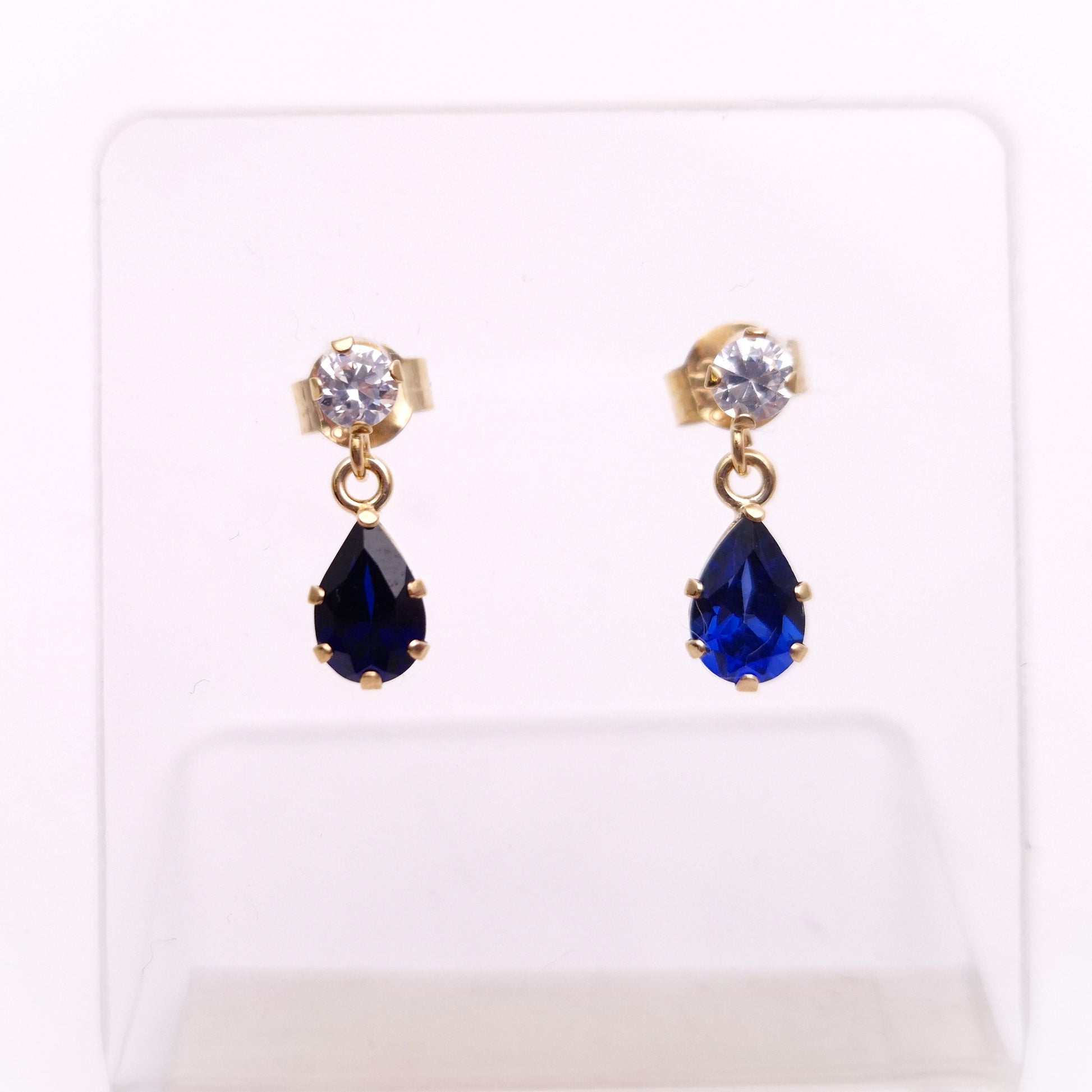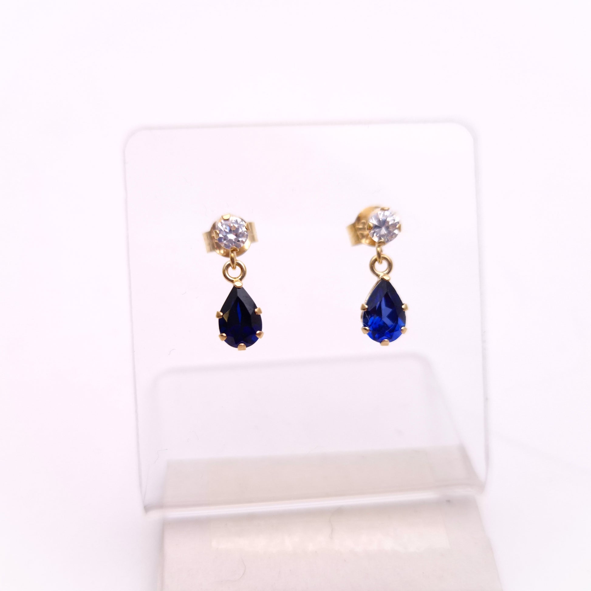 9ct Yellow Gold Blue and White Stone Small Drop Earrings