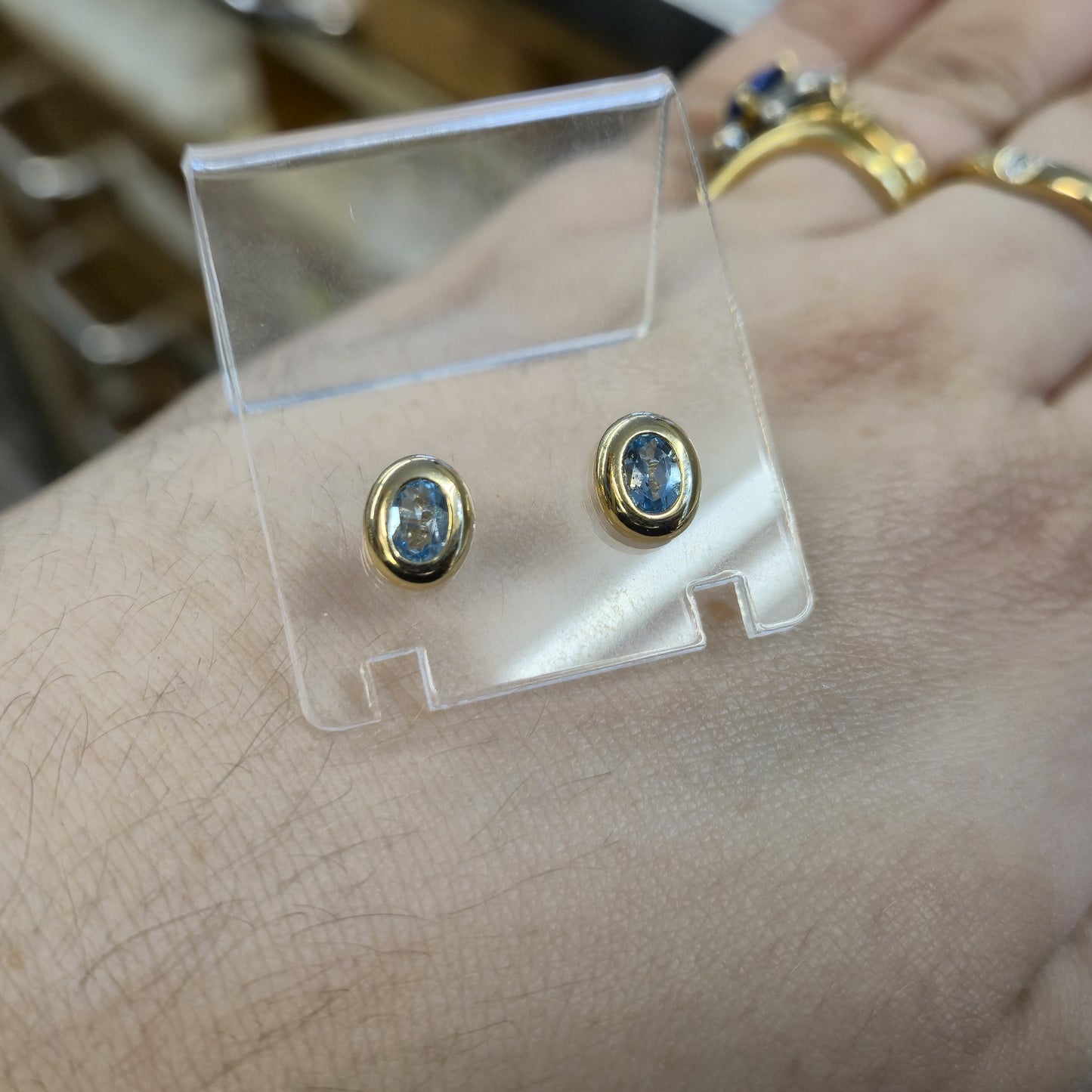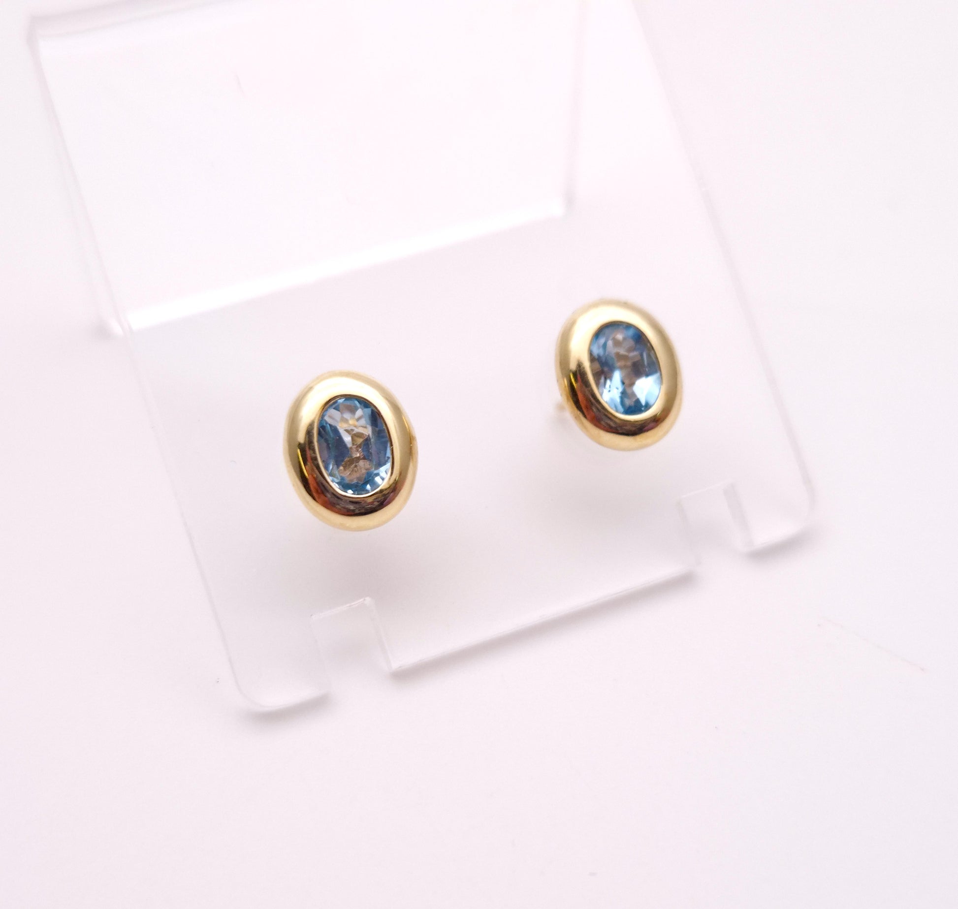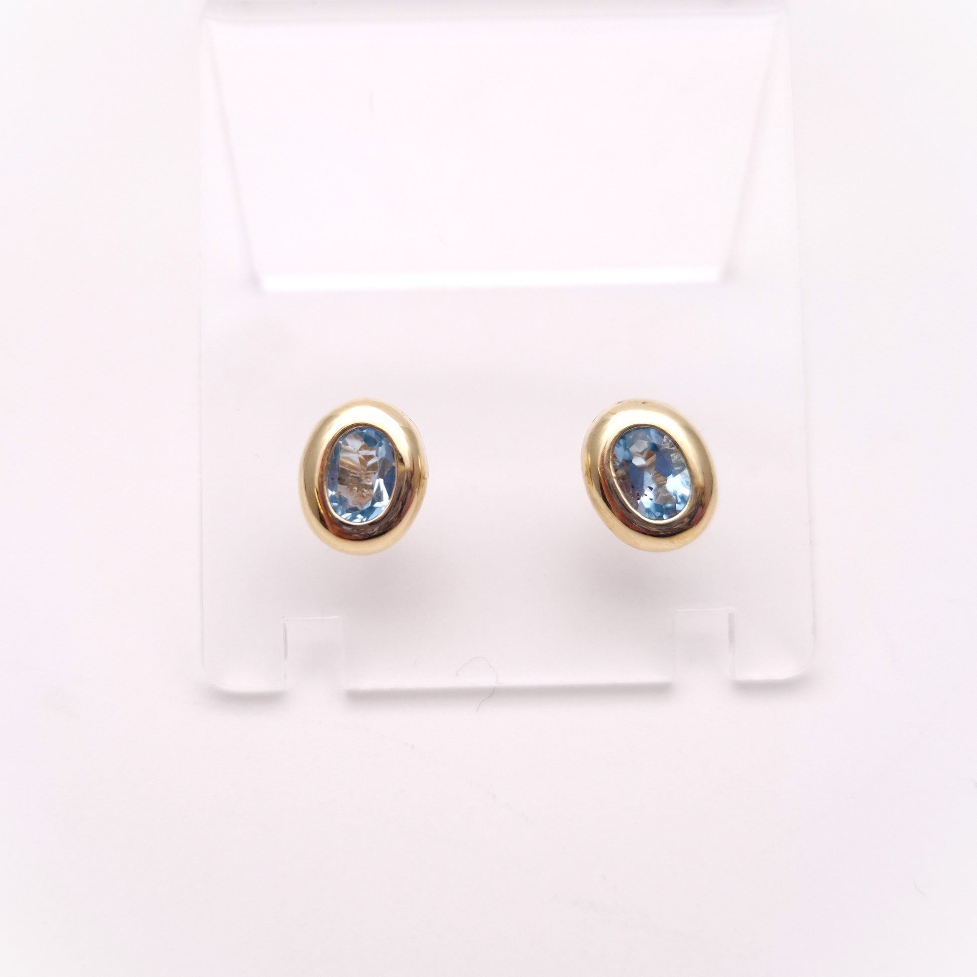 9ct Yellow gold Blue Topaz Bezel Set Stud Earrings