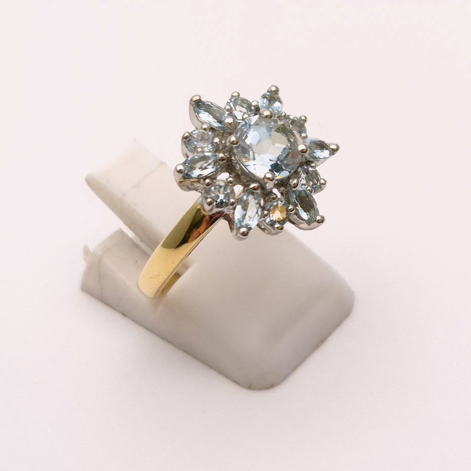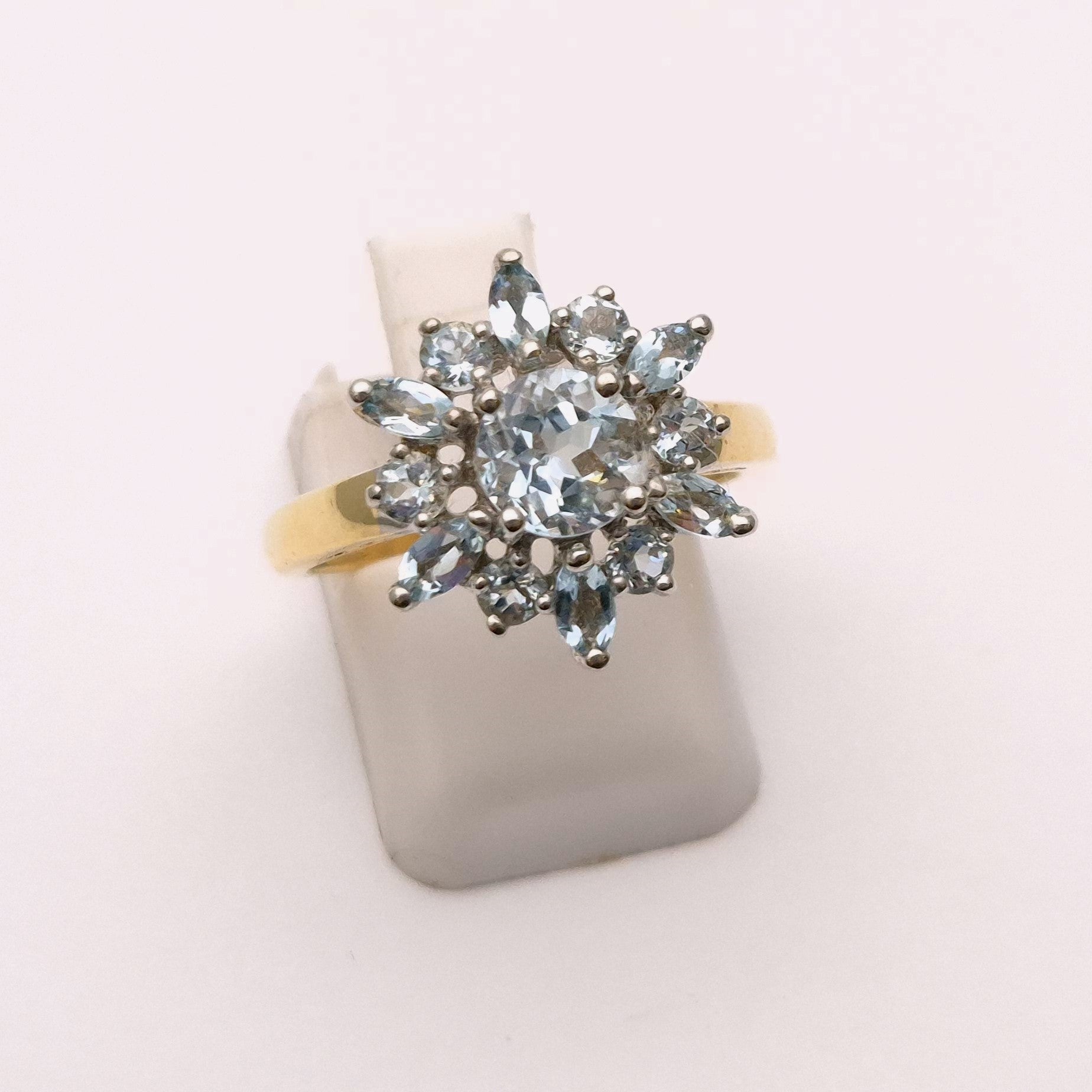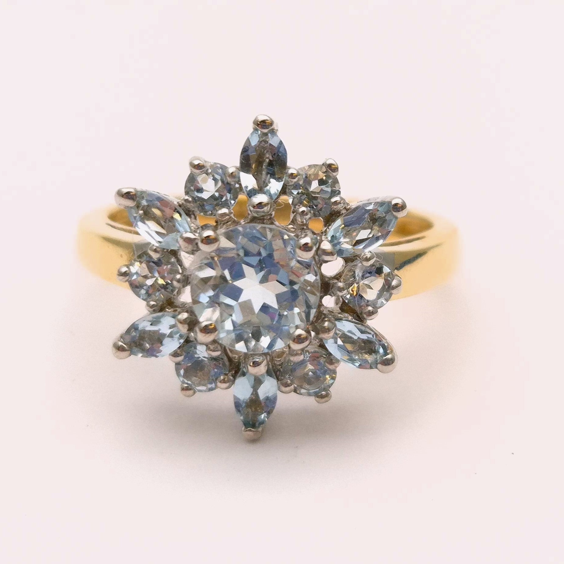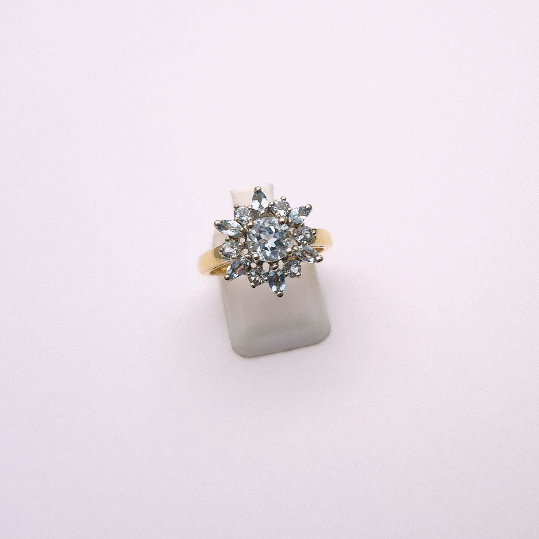 9ct Yellow Gold Blue Topaz Starburst Cluster Ring