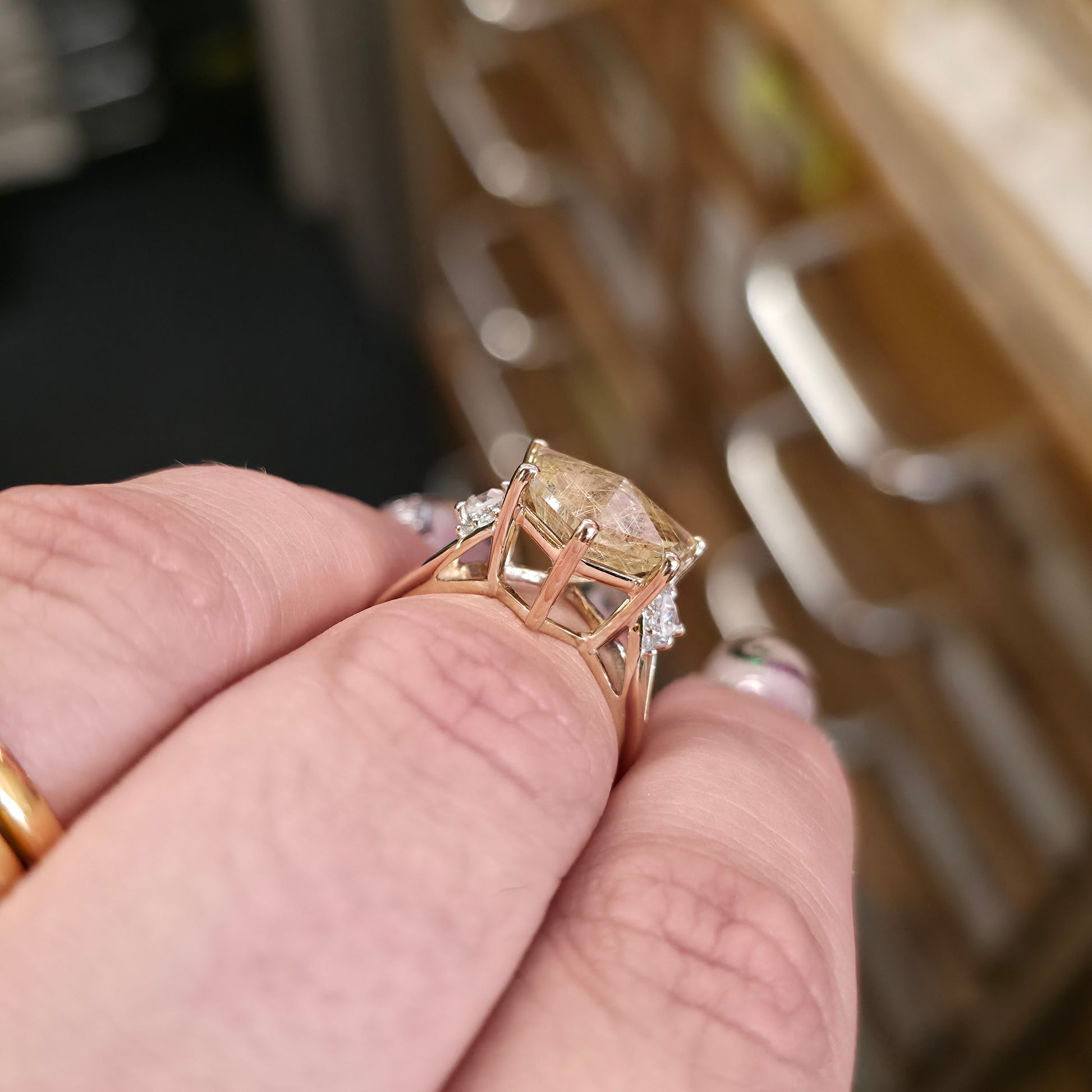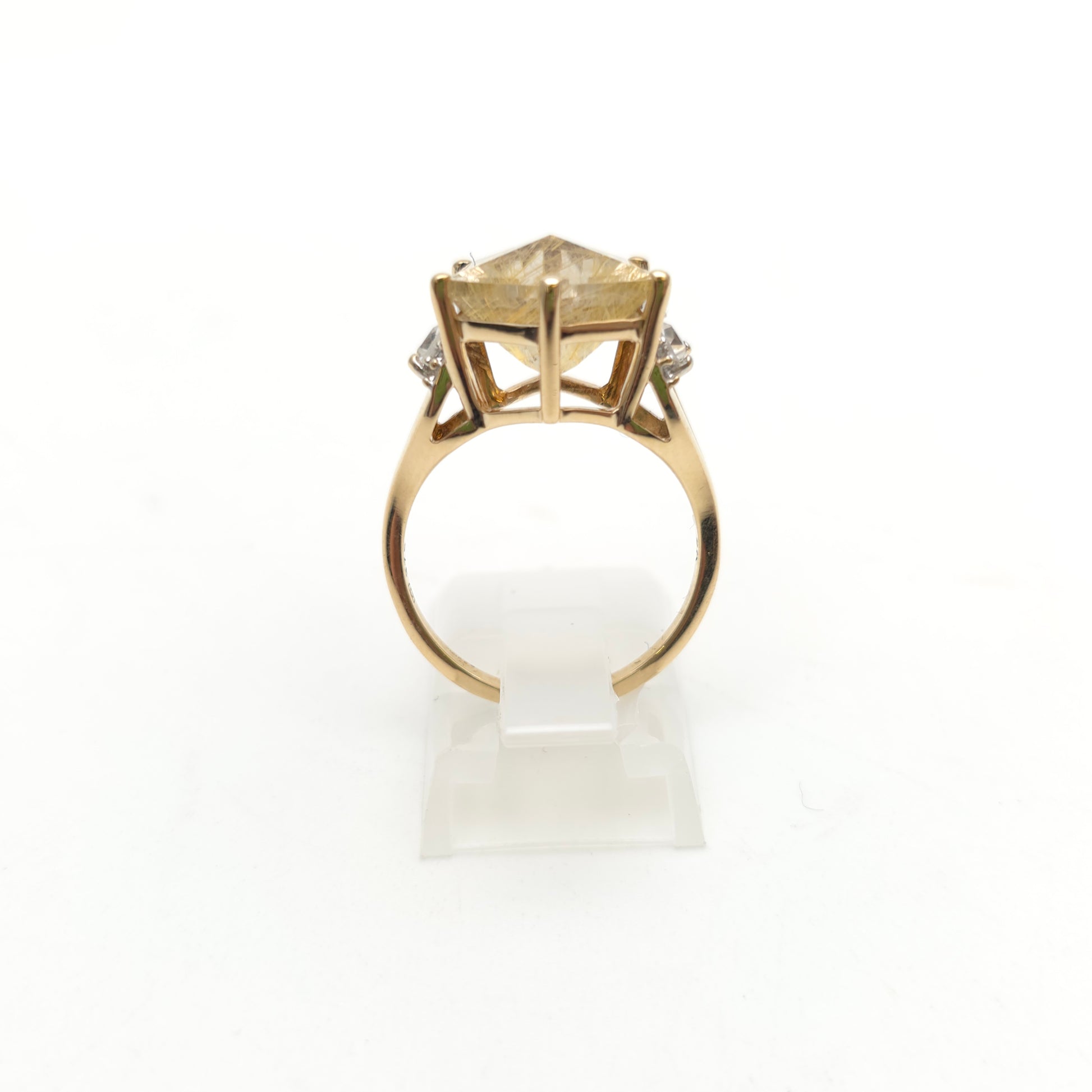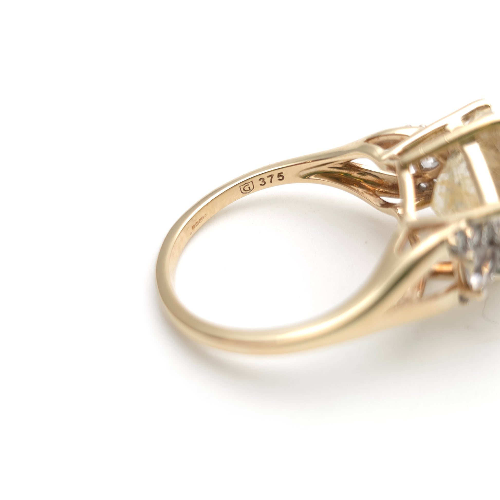 9ct Yellow Gold Chunky Rutilated Quartz And White Topaz Ring