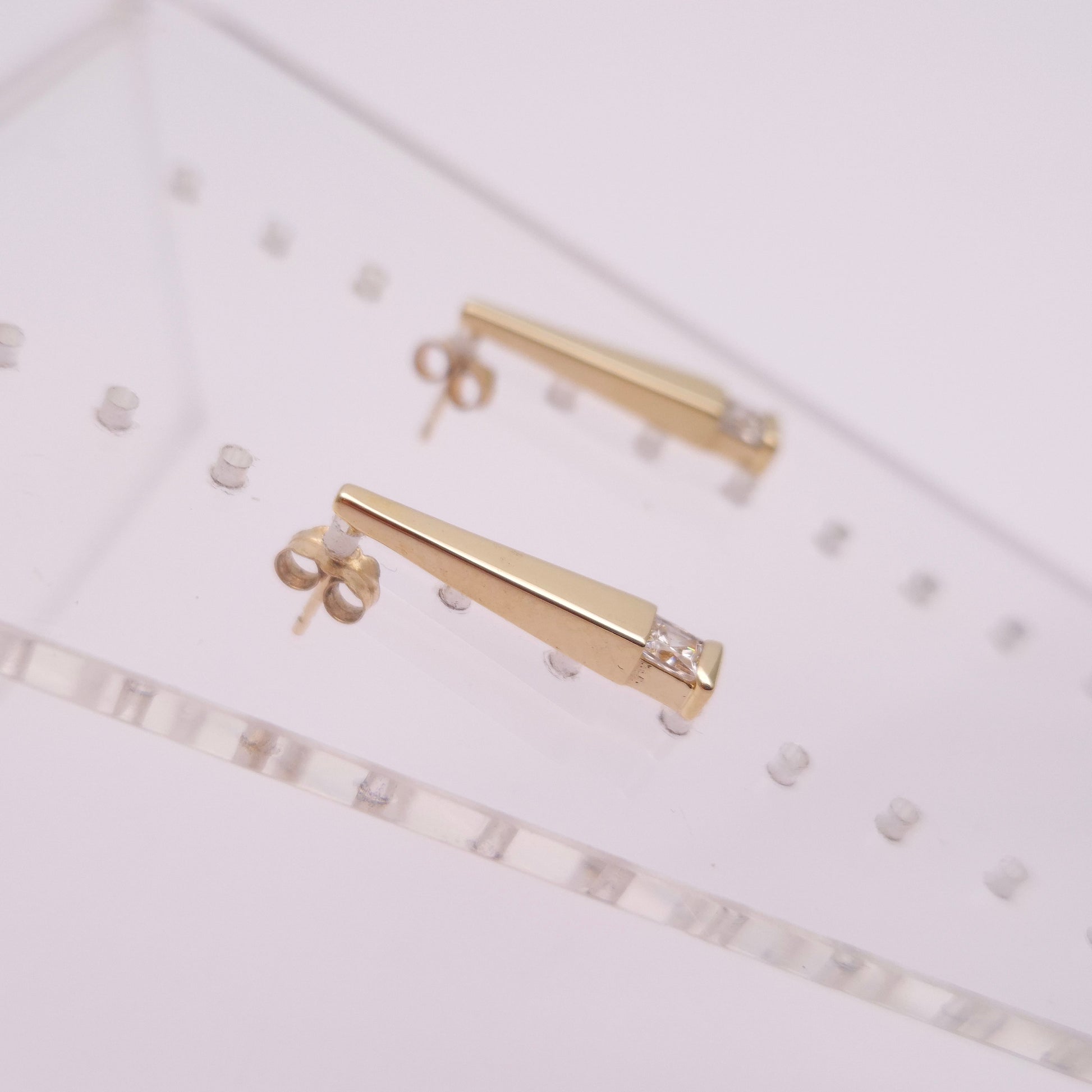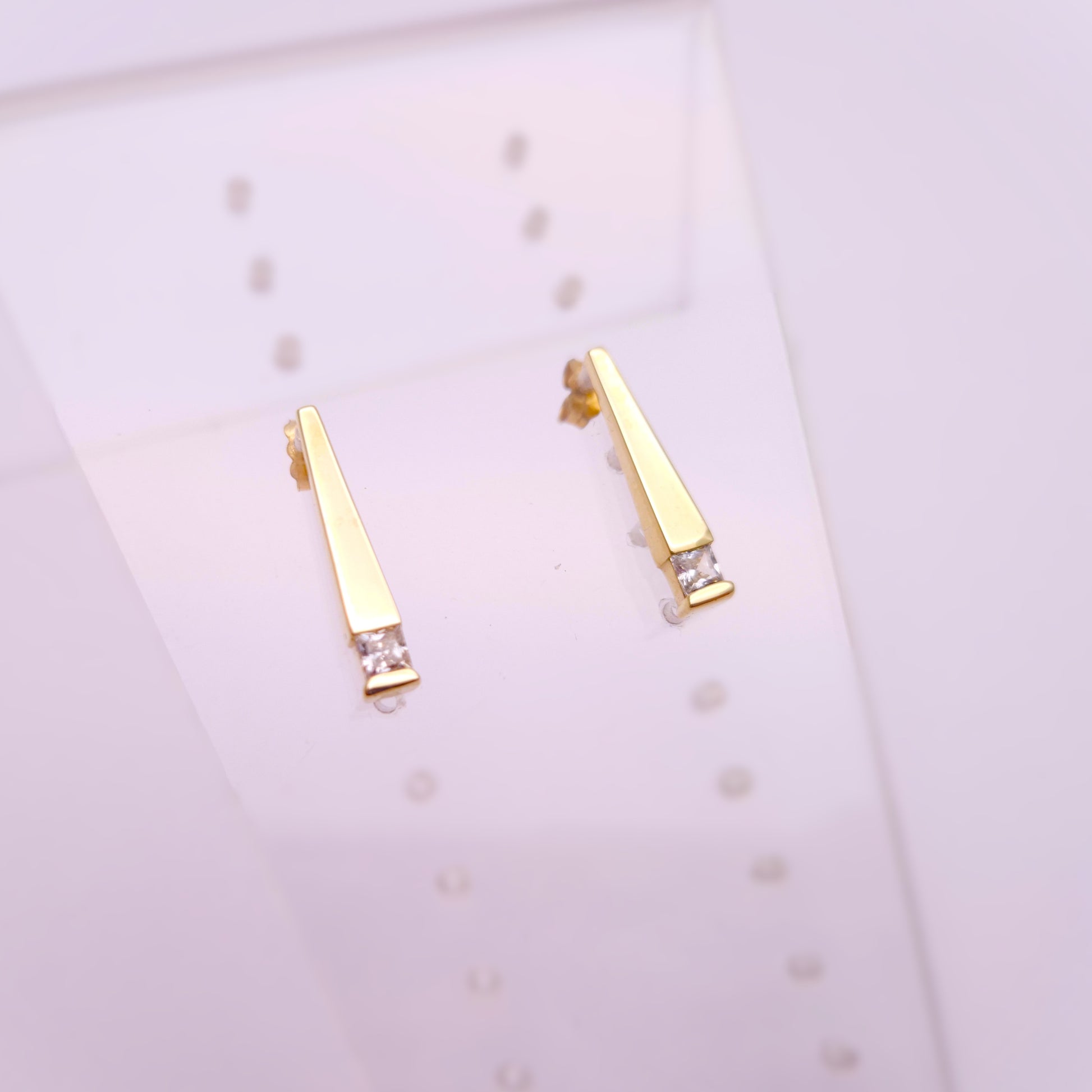 These sophisticated stud earrings feature a sleek, modern bar drop design, crafted from polished 9ct yellow gold. Each earring is accented with a sparkling cubic zirconia stone, set at the base of the bar, adding a touch of subtle glamour. The minimalist design makes these earrings perfect for everyday wear and a stylish addition to any jewellery collection