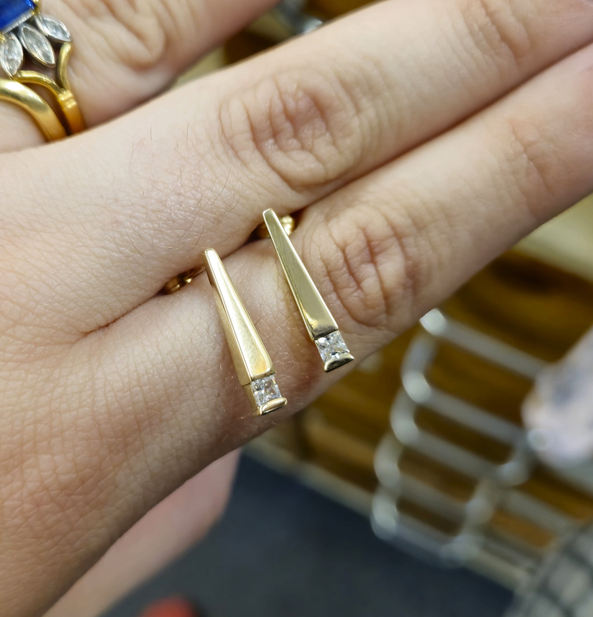 9ct Yellow Gold Cubic Zirconia Bar Drop Stud Earrings