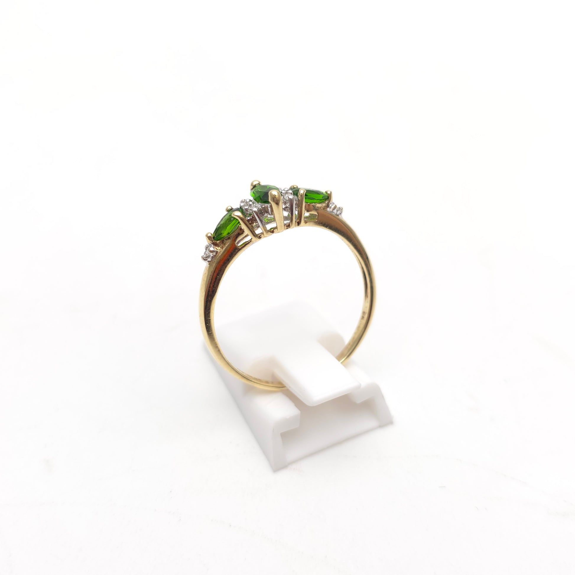 9ct Yellow Gold Deep Green Stone And Diamond Multi-Stone Ring
