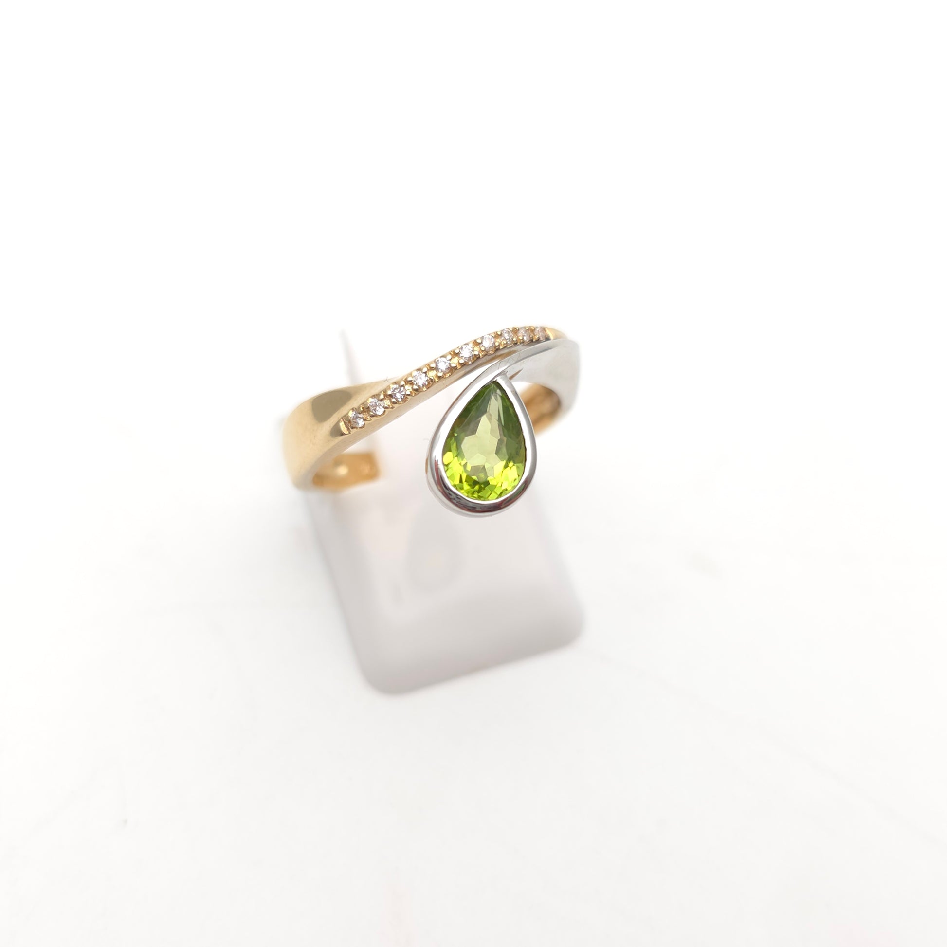 9ct Yellow Gold Diamond And White Gold Set Pear Cut Peridot Ring