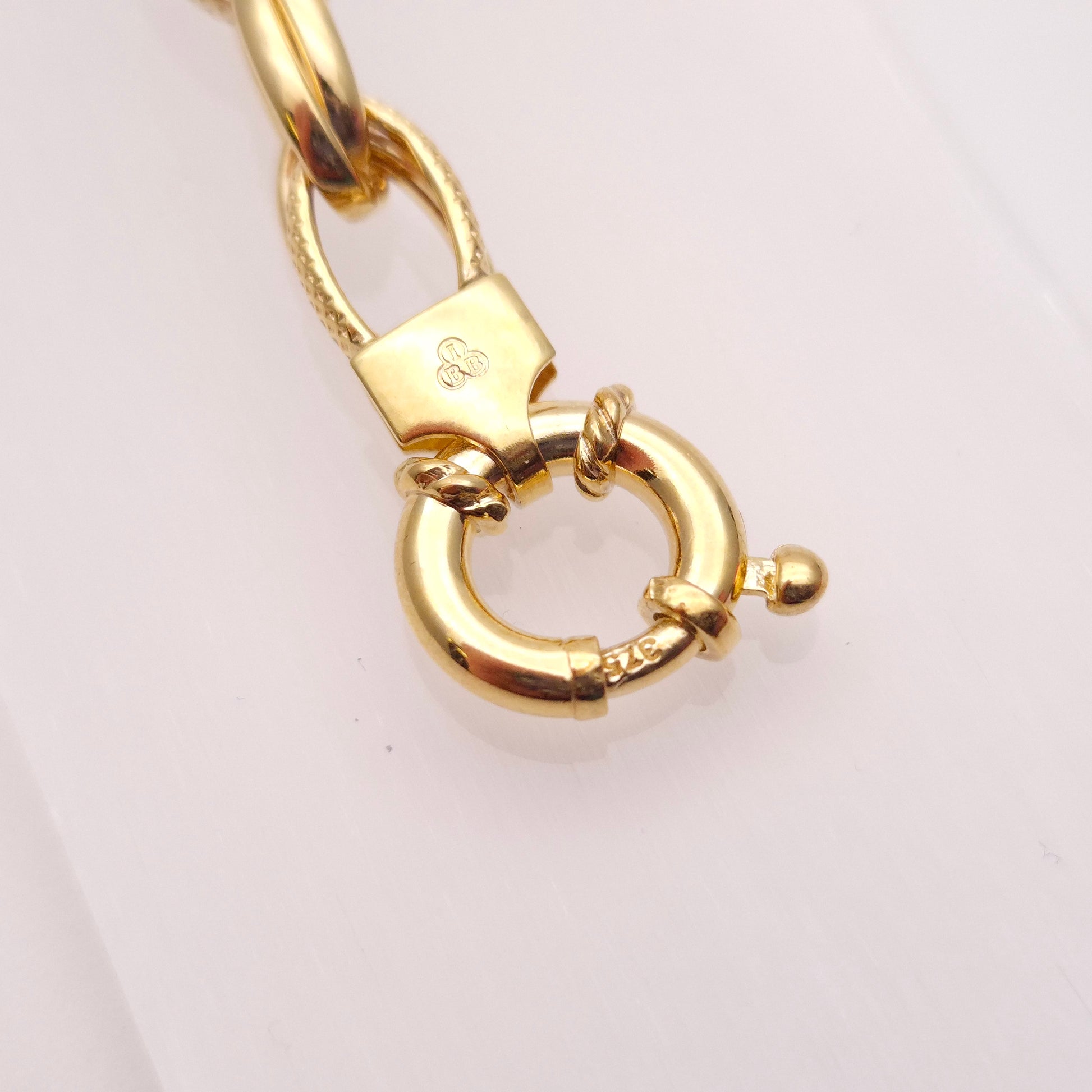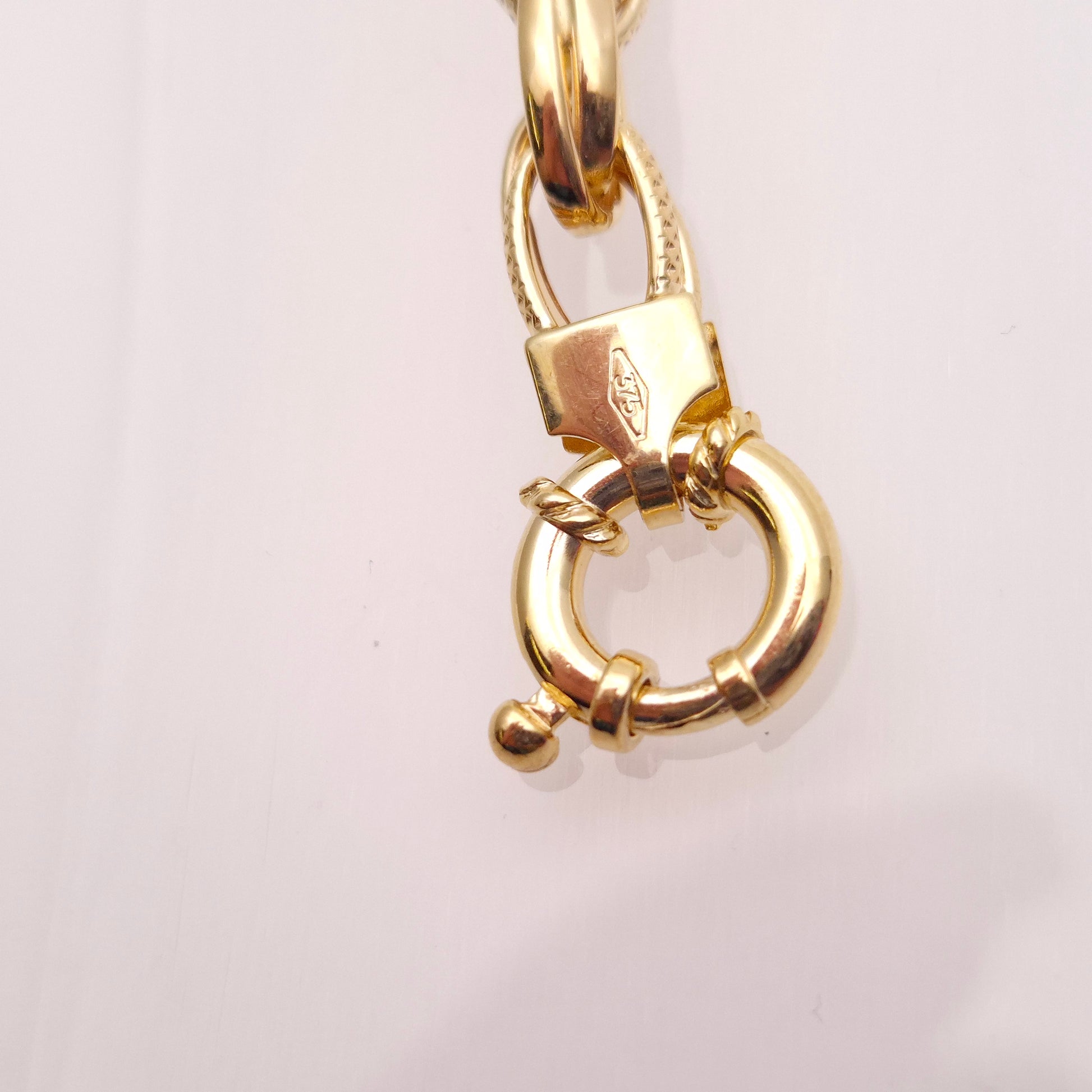 The bracelet is composed of polished, elegant hollow oval links in a double link formation. A sophisticated mixed texture is a key feature with the links alternating between smooth and polished, while others are intricately dimpled, creating a beautiful shimmering effect as the bracelet catches the light. Its classic design and warm 9ct yellow gold make it an incredibly versatile piece. It's a perfect everyday accessory and strong enough to be worn on its own as a statement piece, or to be layered with other bracelets for a bolder look. A secure spring-ring clasp ensures it stays safely on your wrist.