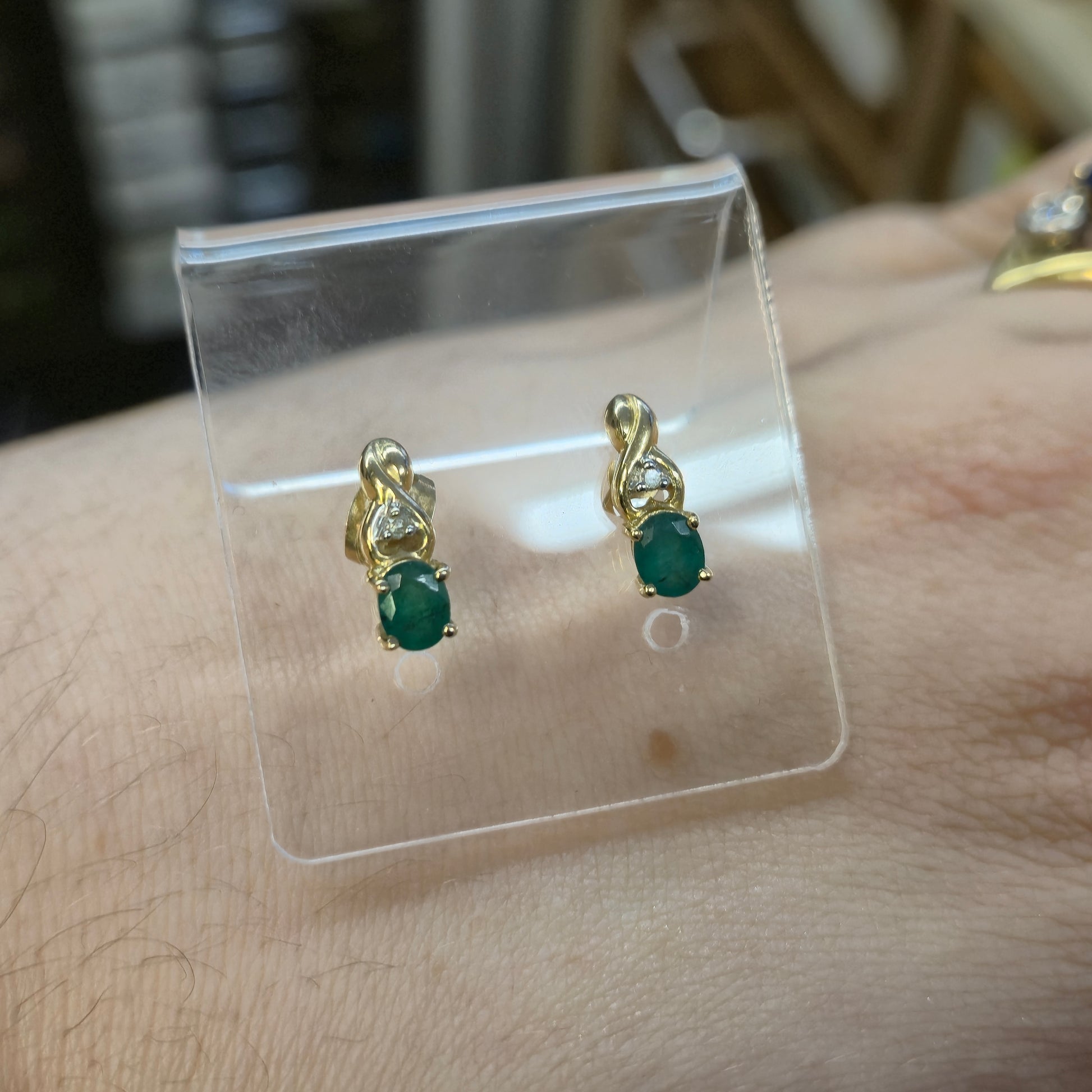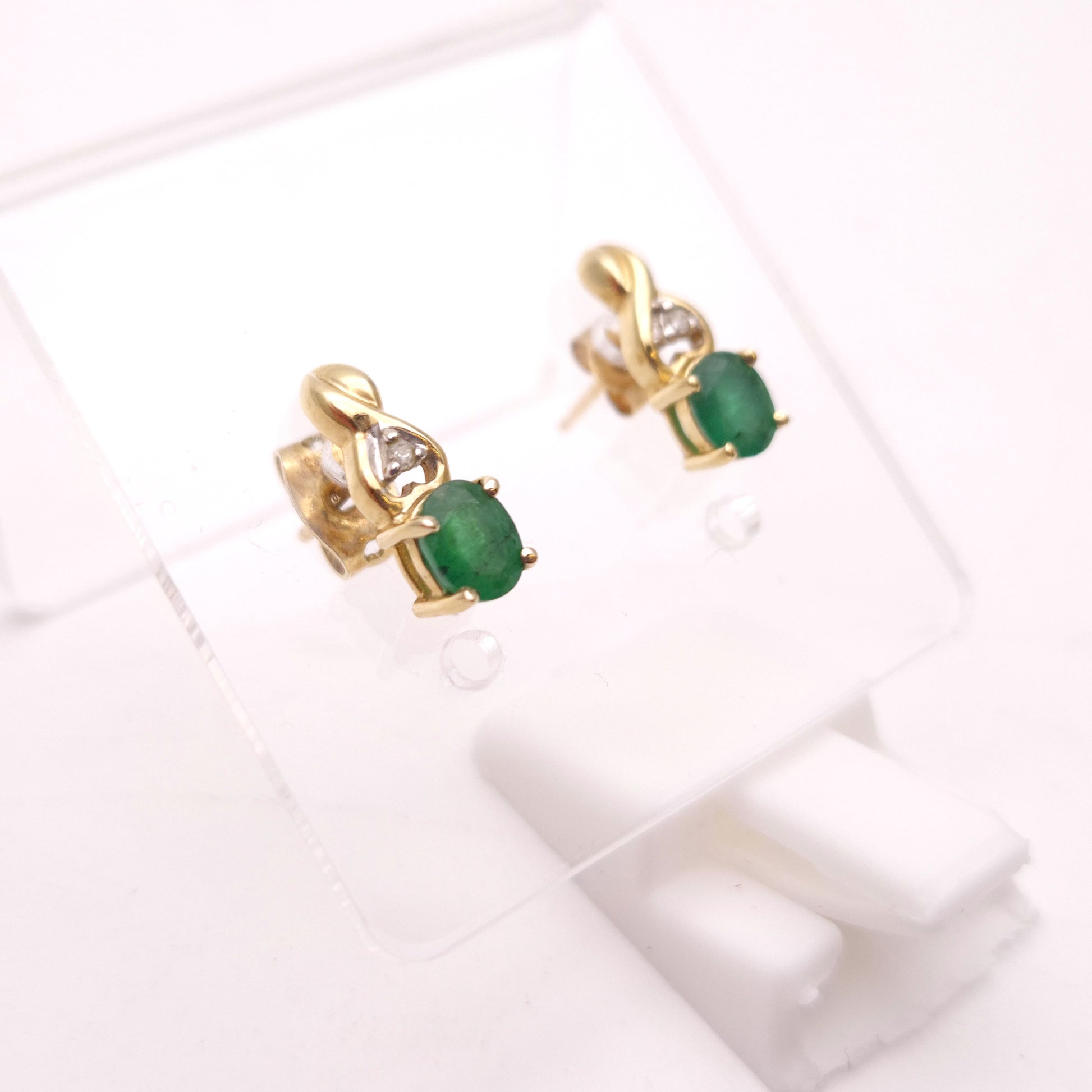 These 9ct yellow gold emerald and diamond stud earrings are a beautiful and sophisticated choice, perfect for a special occasion or as a cherished addition to any jewellery collection.