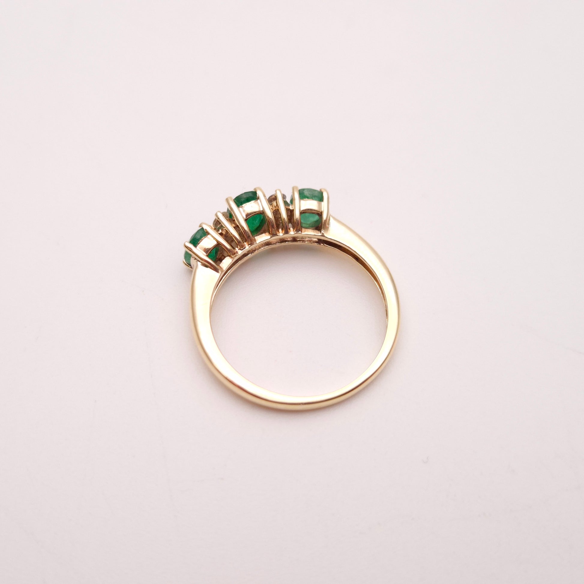 This beautiful ring is an elegant and colourful piece that perfectly balances the warmth of gold with the fresh colour of emeralds. It is crafted in rich, polished 9ct Yellow Gold, providing a classic and durable setting.