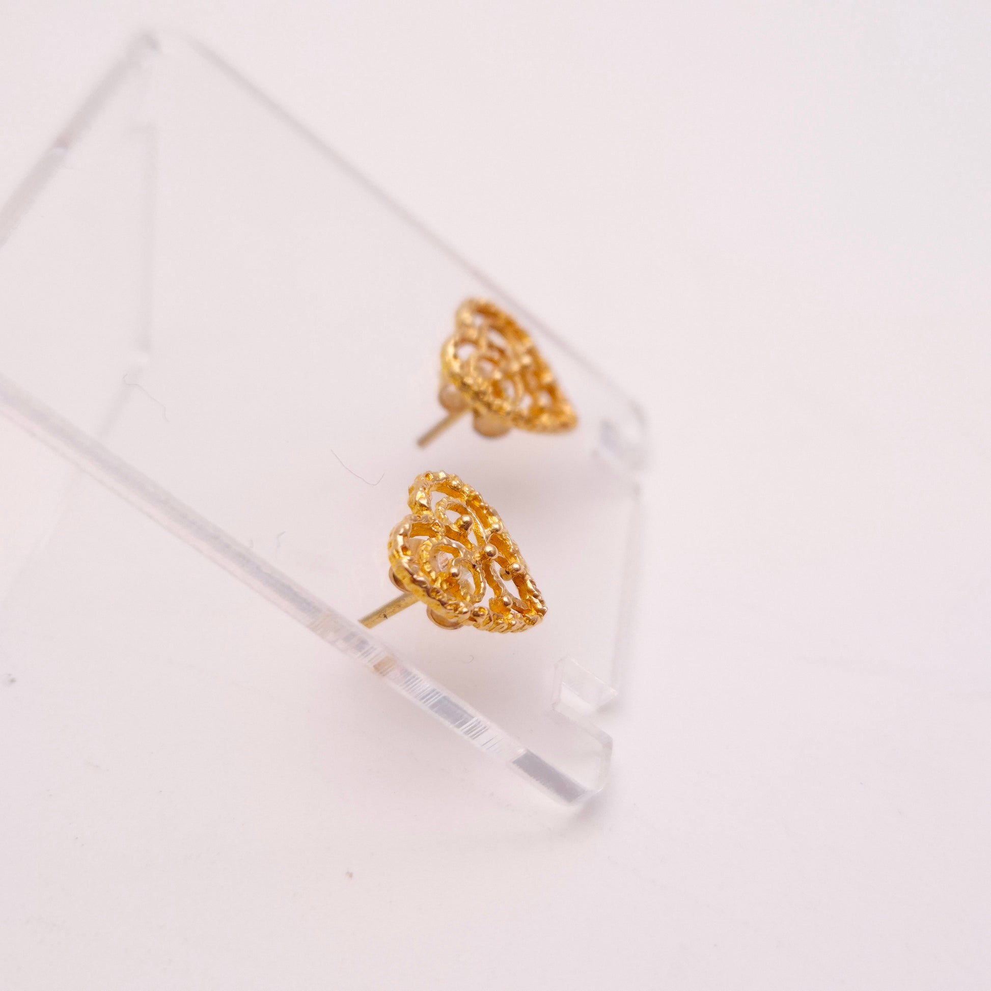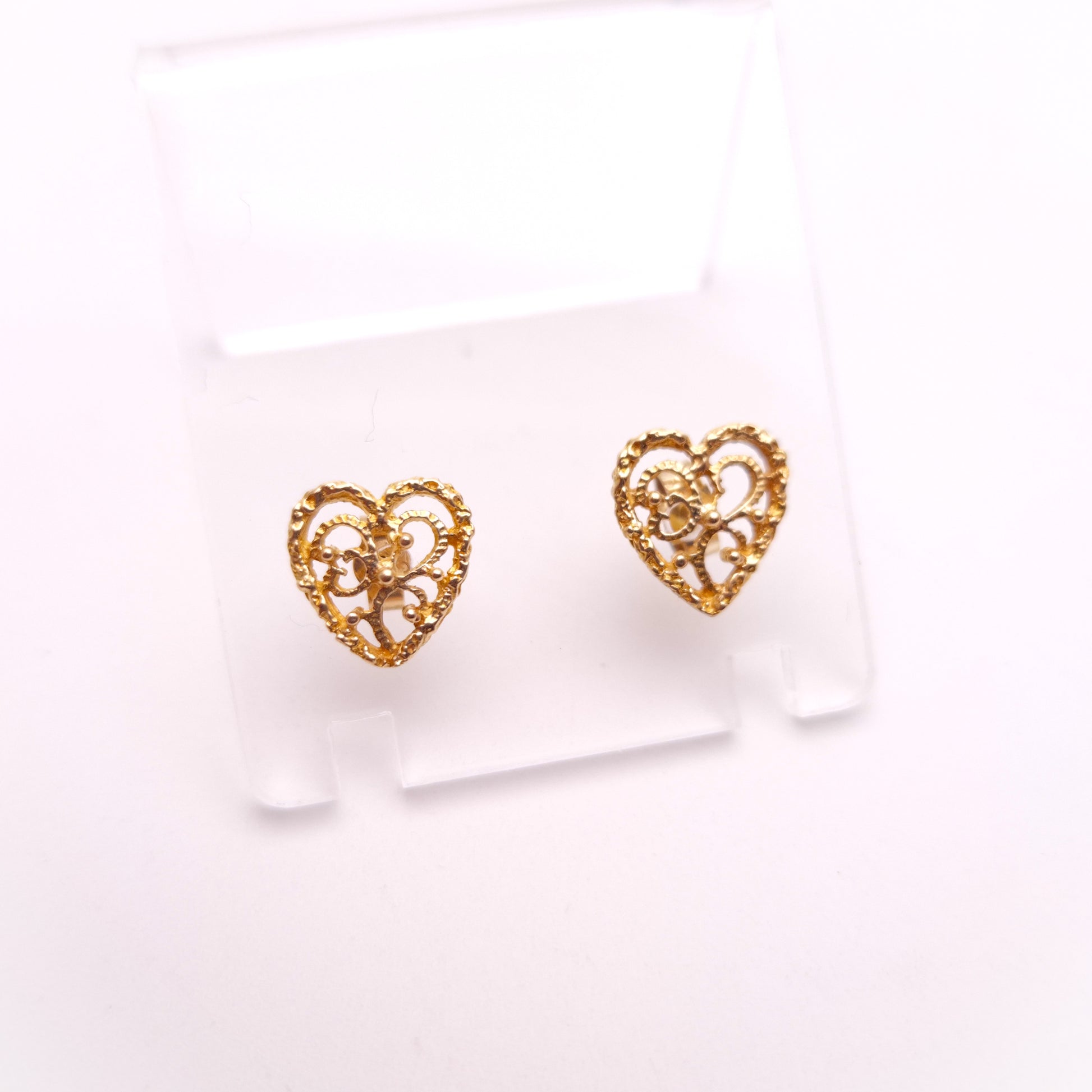 9ct Yellow Gold Filigree Heart Stud Earrings