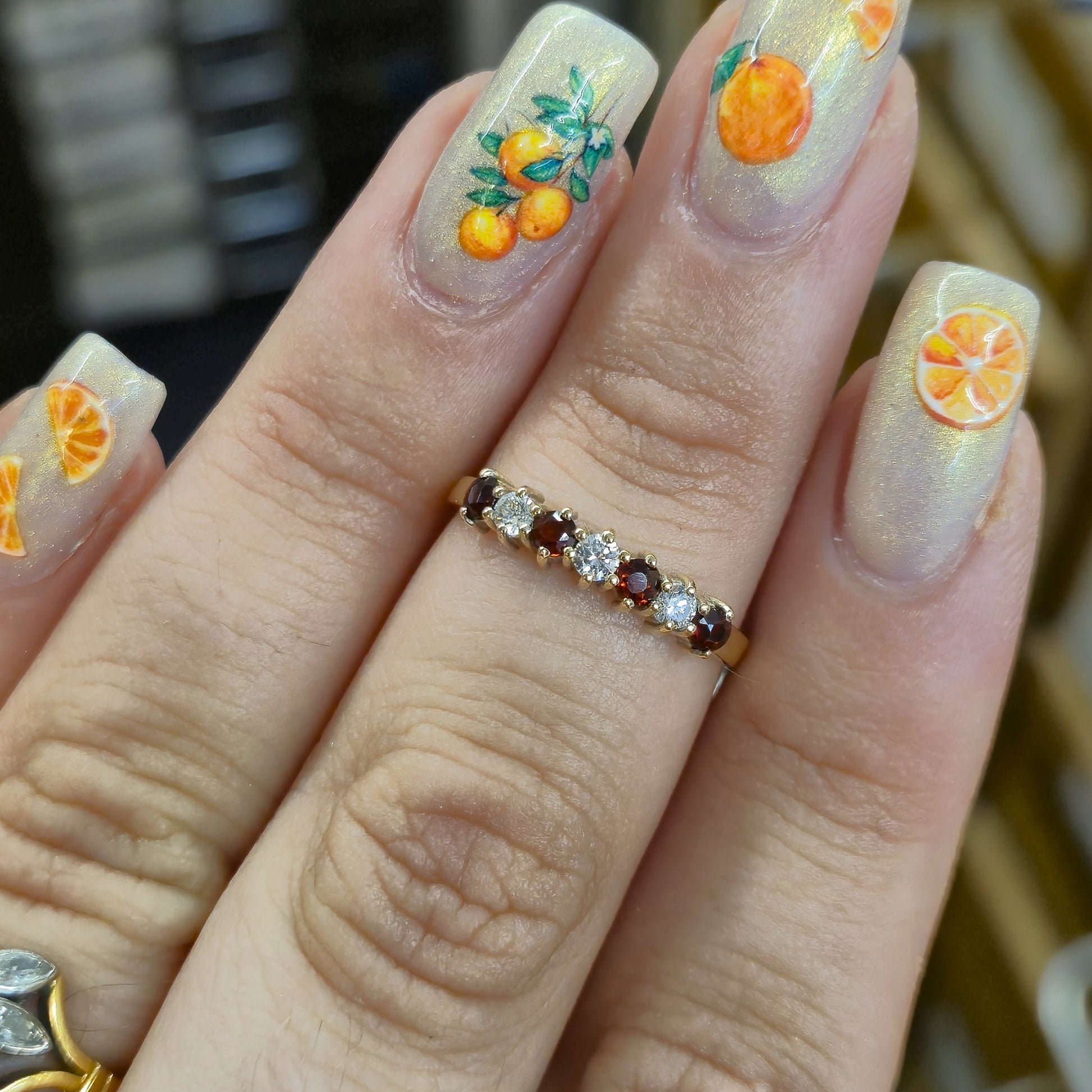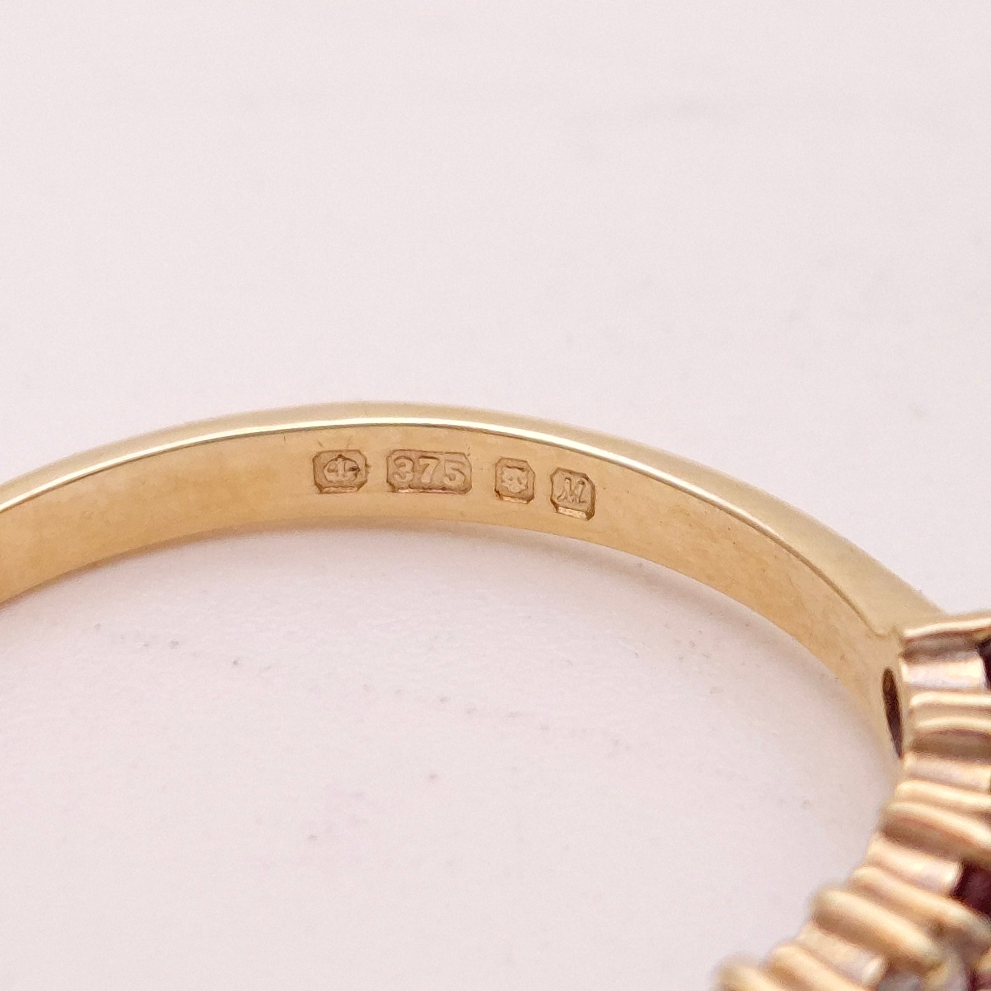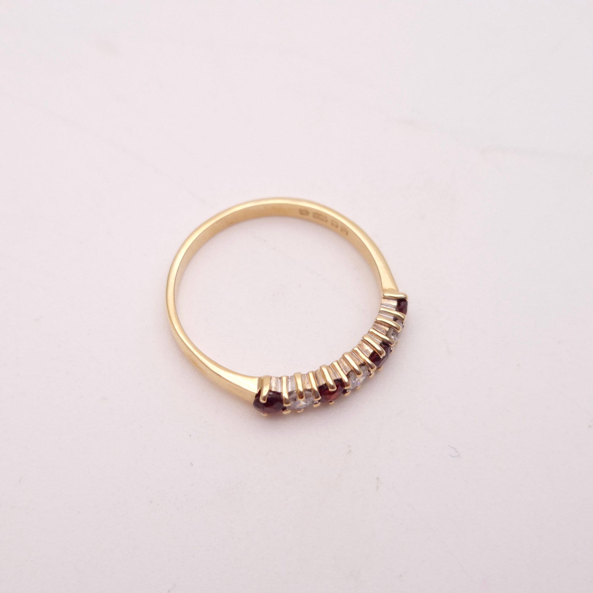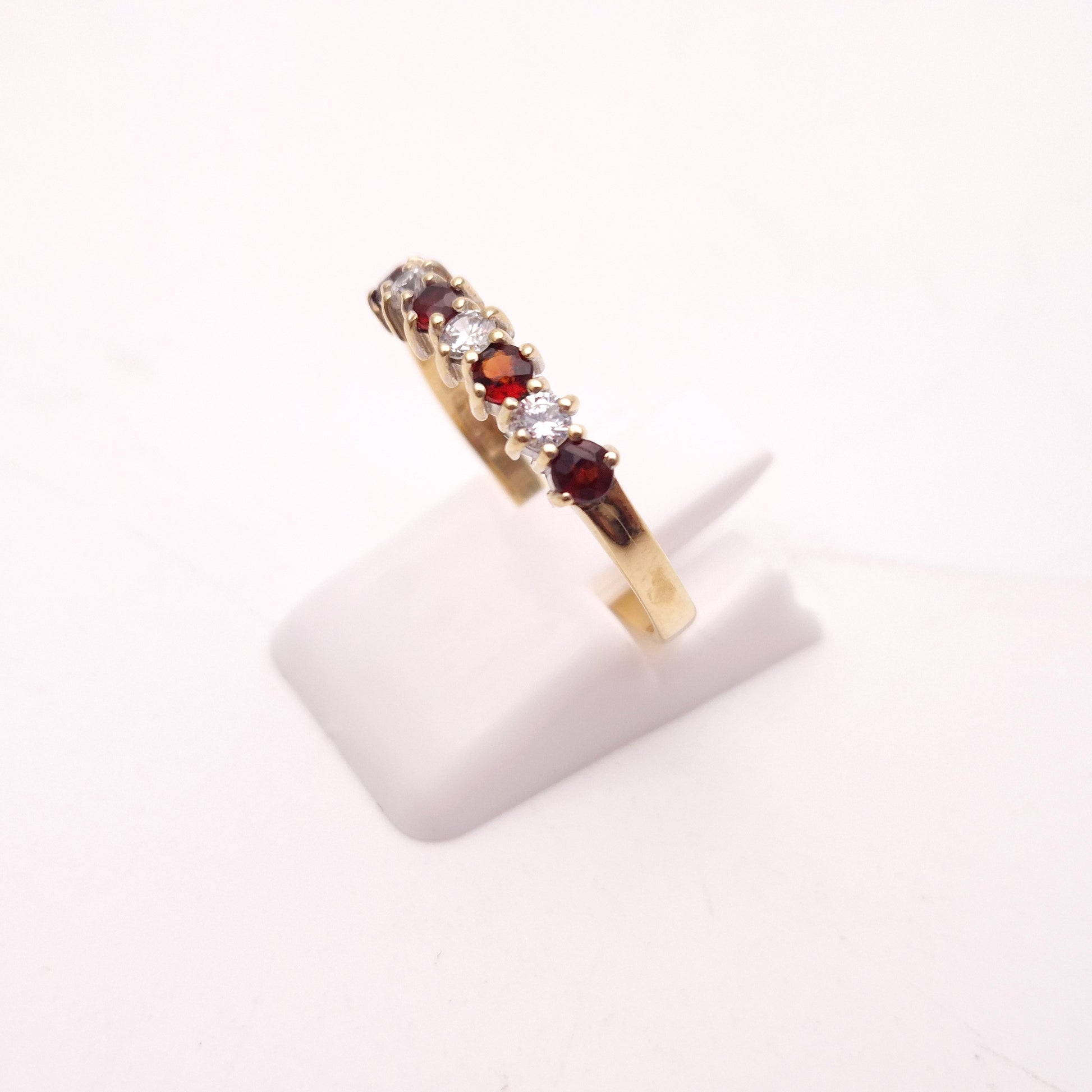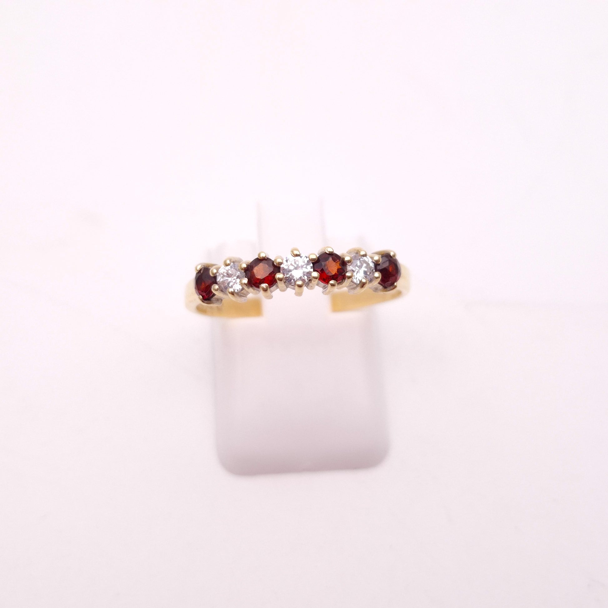 9ct Yellow Gold Garnet and Cubic Zirconia Half Eternity Style Row Ring