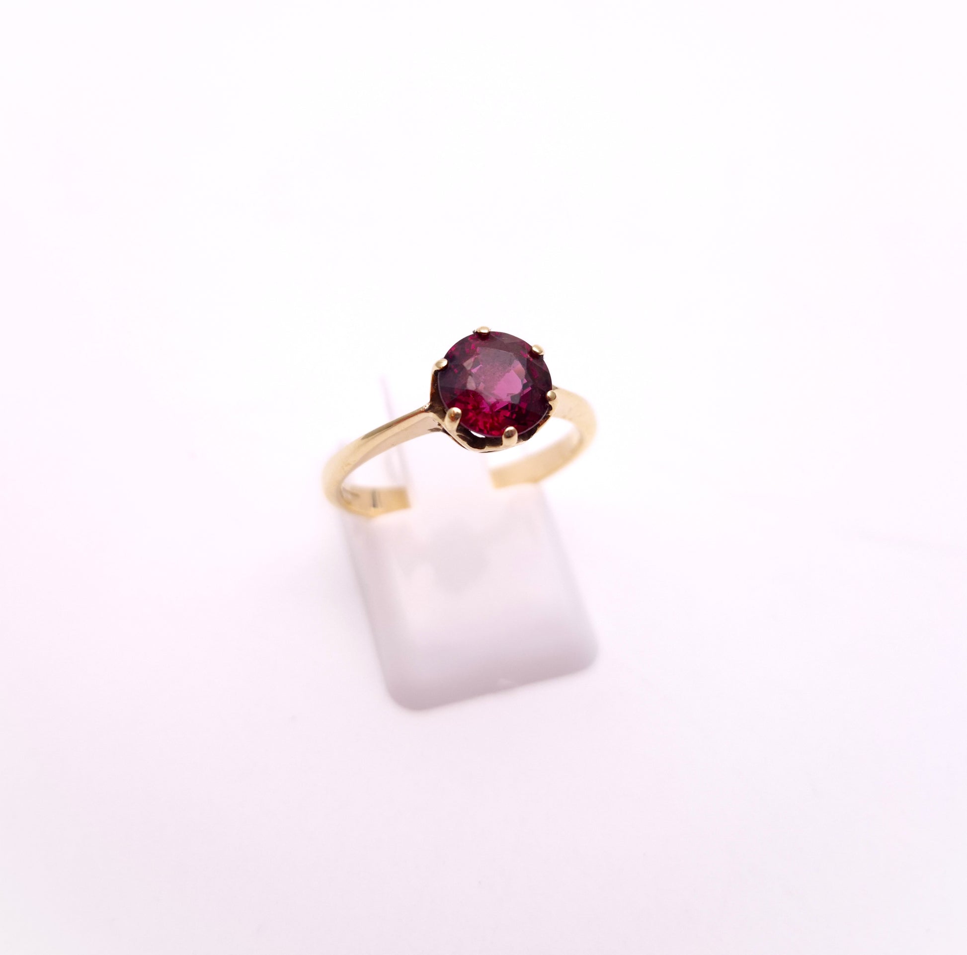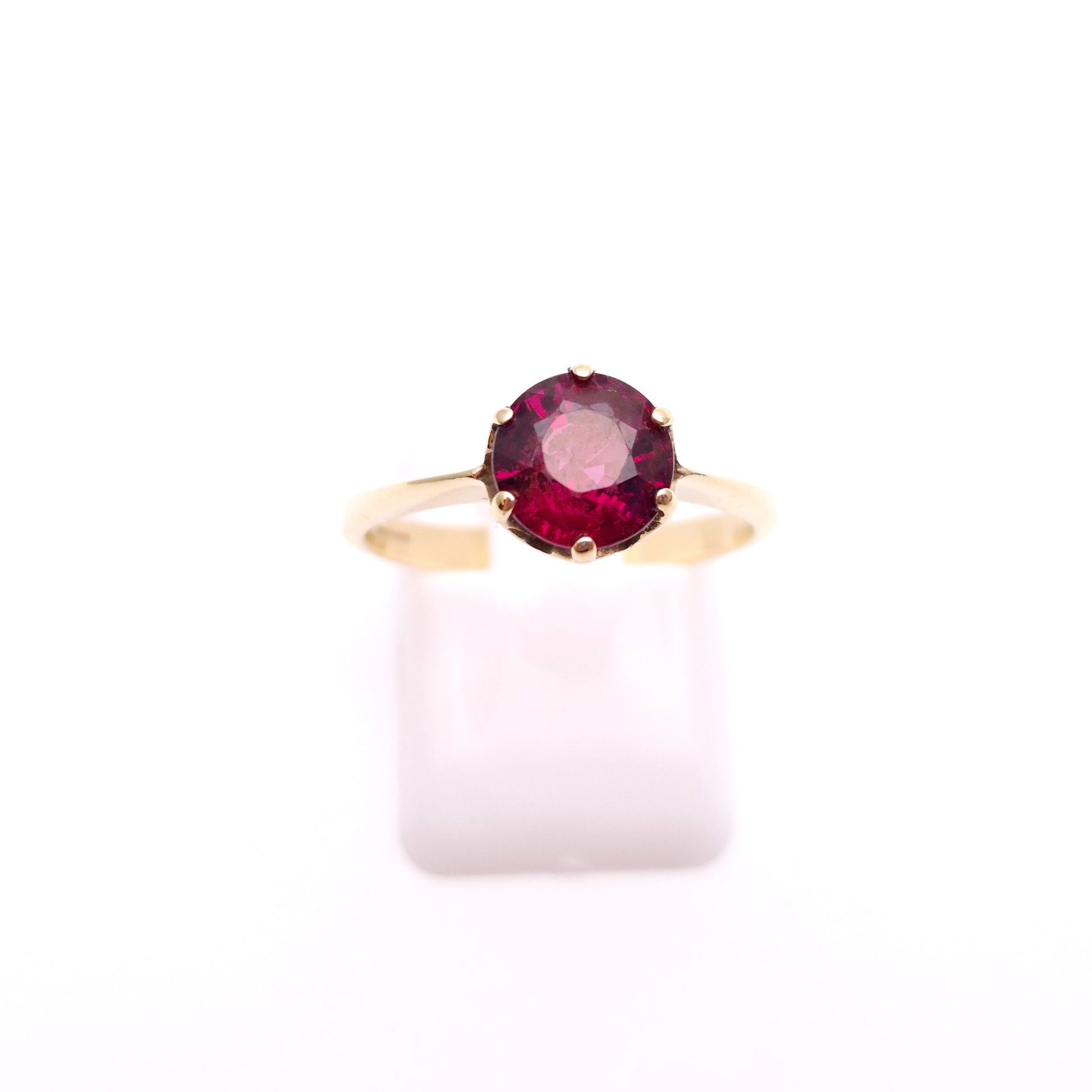 Indulge in the rich, deep red hues of this beautiful 9ct yellow gold garnet solitaire ring. Featuring a captivating round-cut garnet as its centrepiece, this ring exudes a timeless elegance and a touch of vibrant colour. The warm glow of the 9ct yellow gold band perfectly complements the deep, wine-red tones of the garnet, creating a sophisticated and eye-catching piece.