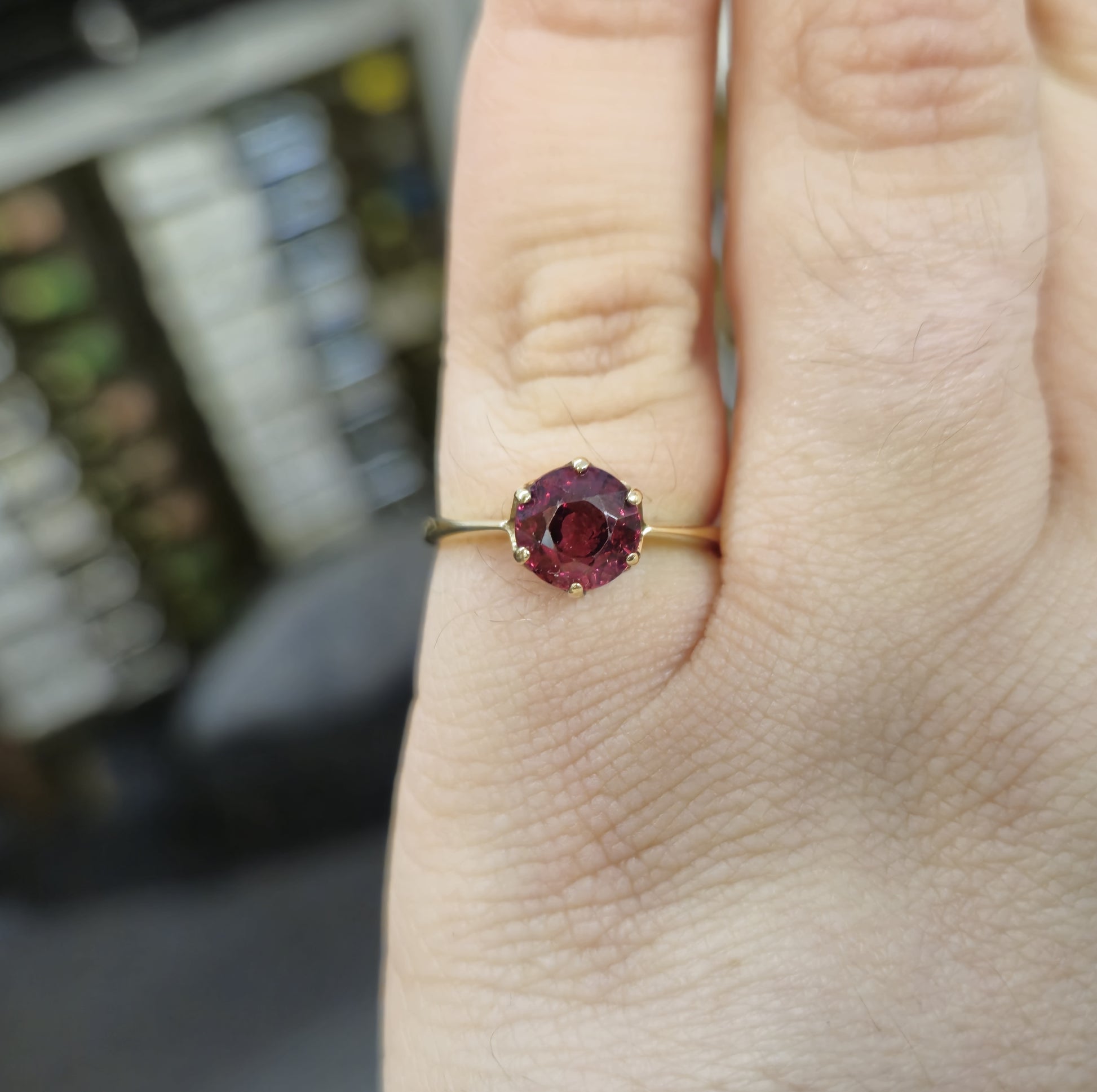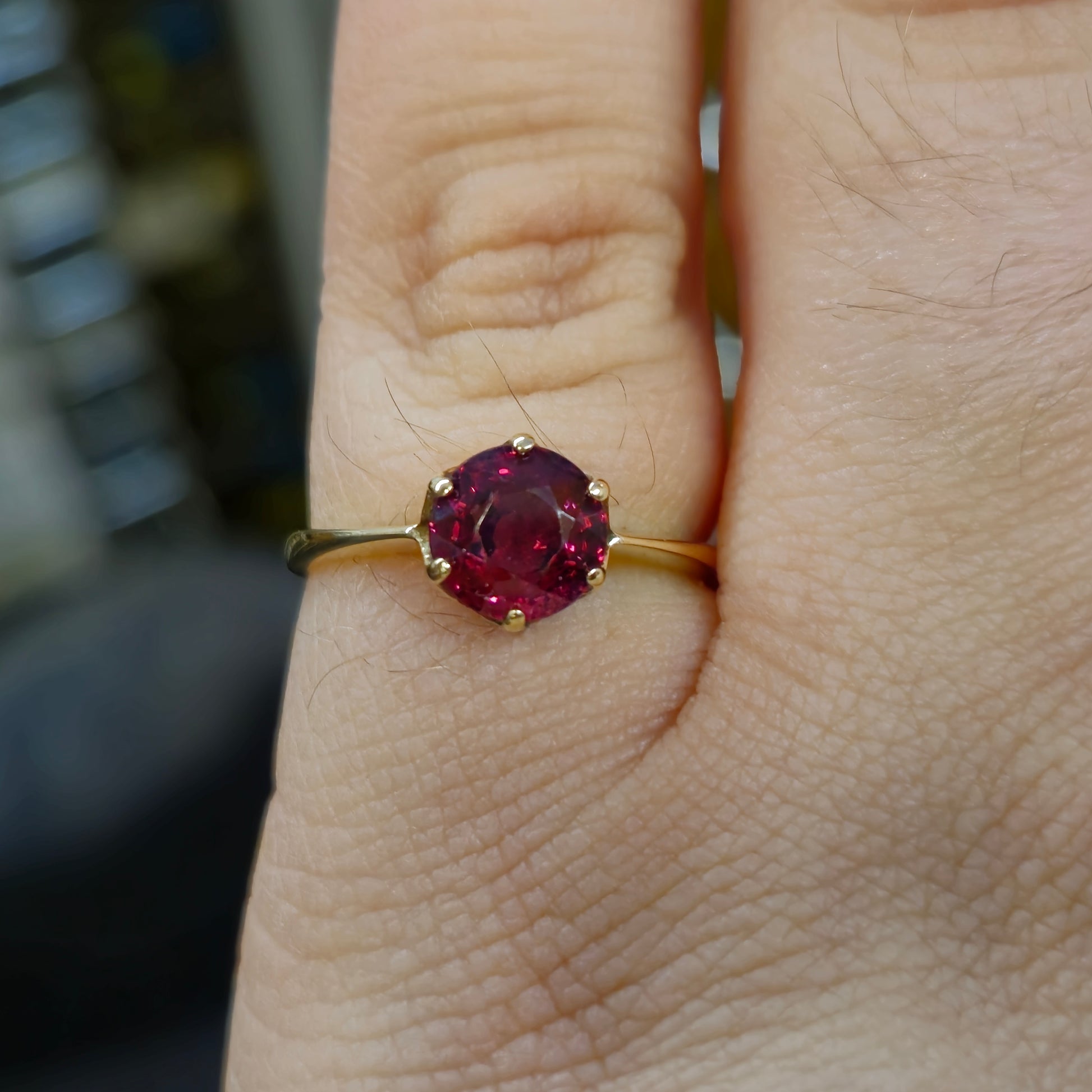The classic solitaire setting allows the natural beauty and brilliance of the garnet to truly shine. This ring is perfect for adding a touch of refined colour to any outfit, whether for everyday wear or a special occasion. Its simple yet elegant design ensures it will remain a cherished piece for years to come.