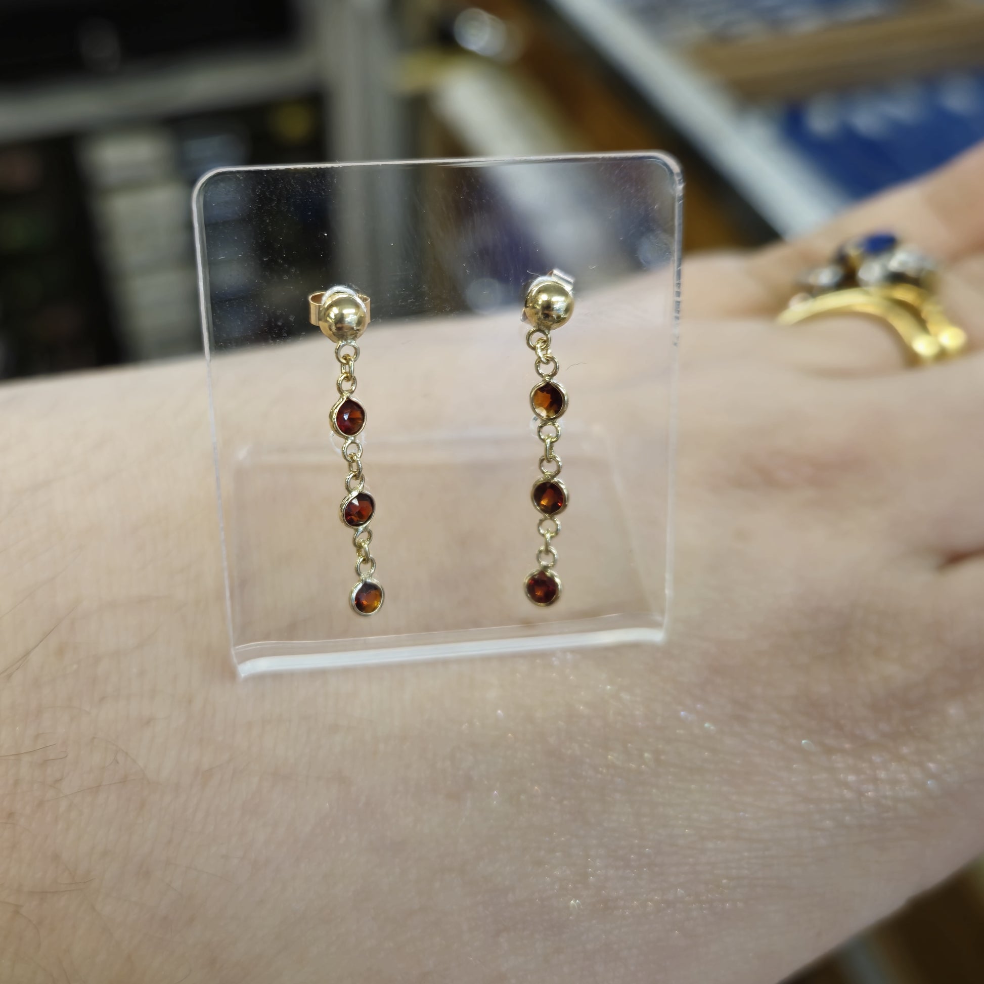9ct Yellow Gold Garnet Three-Stone Drop Earrings