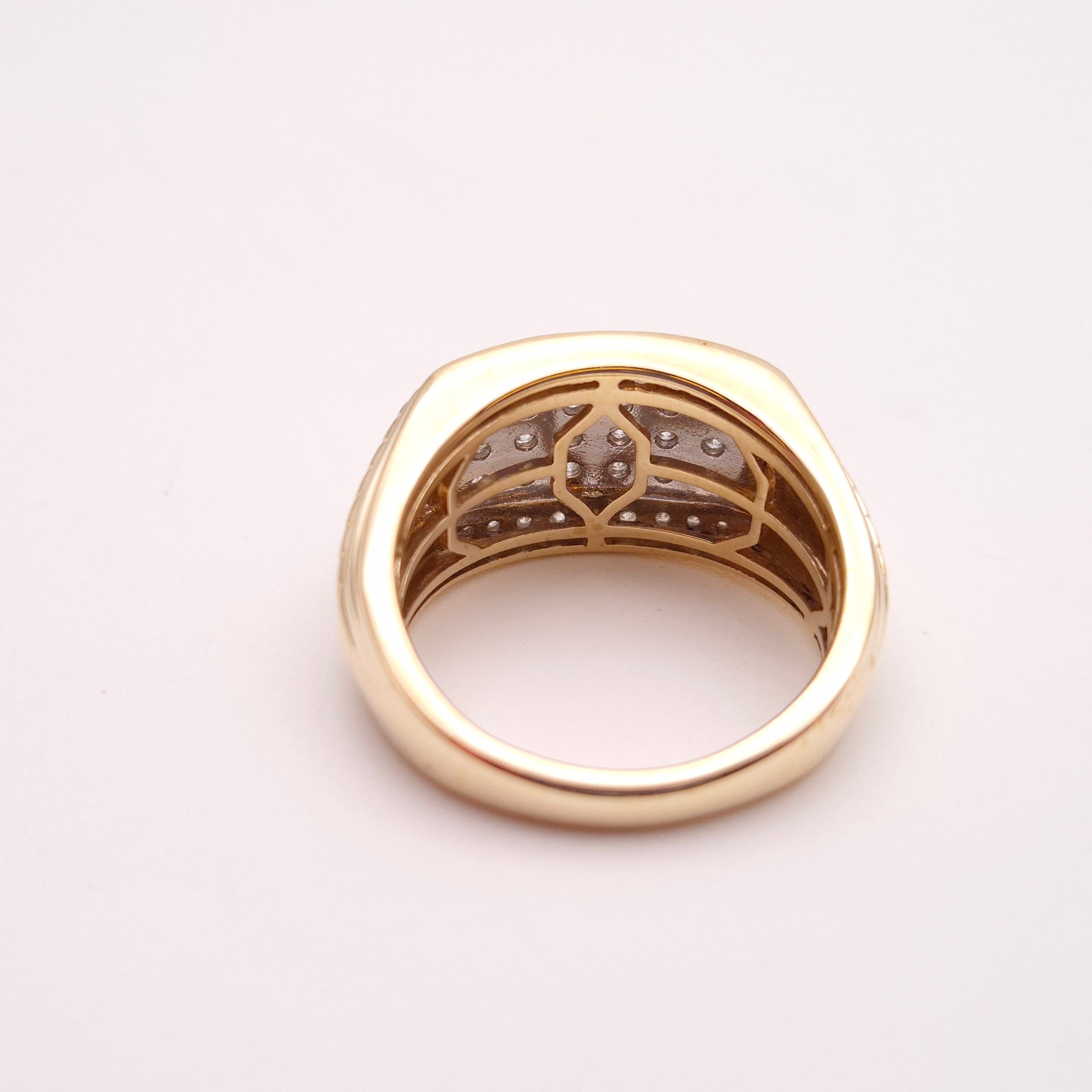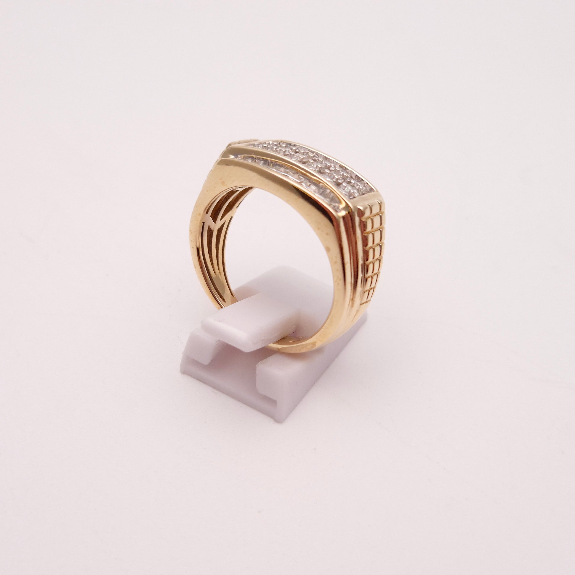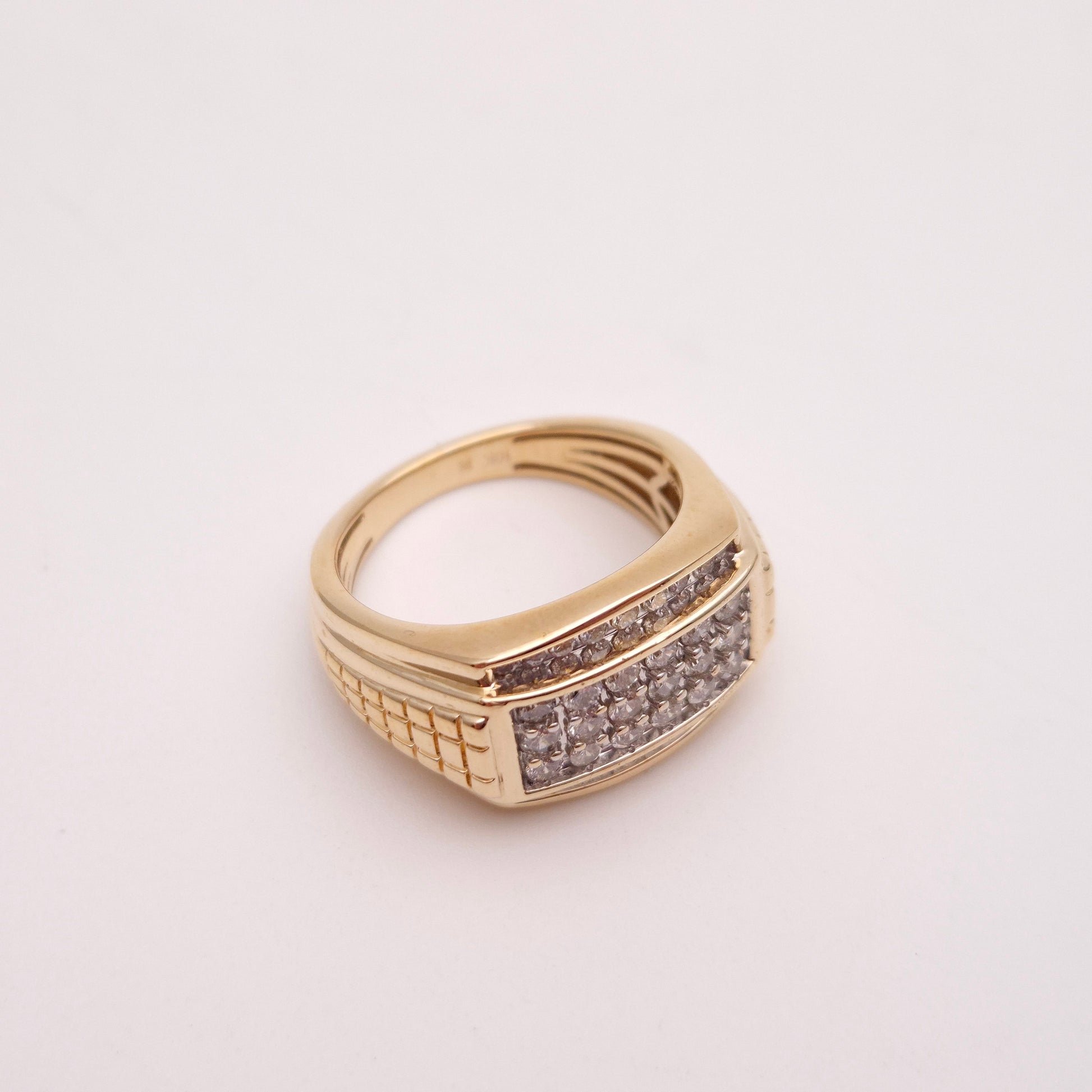9ct Yellow Gold Gents Diamond Set Block Signet Statement Ring