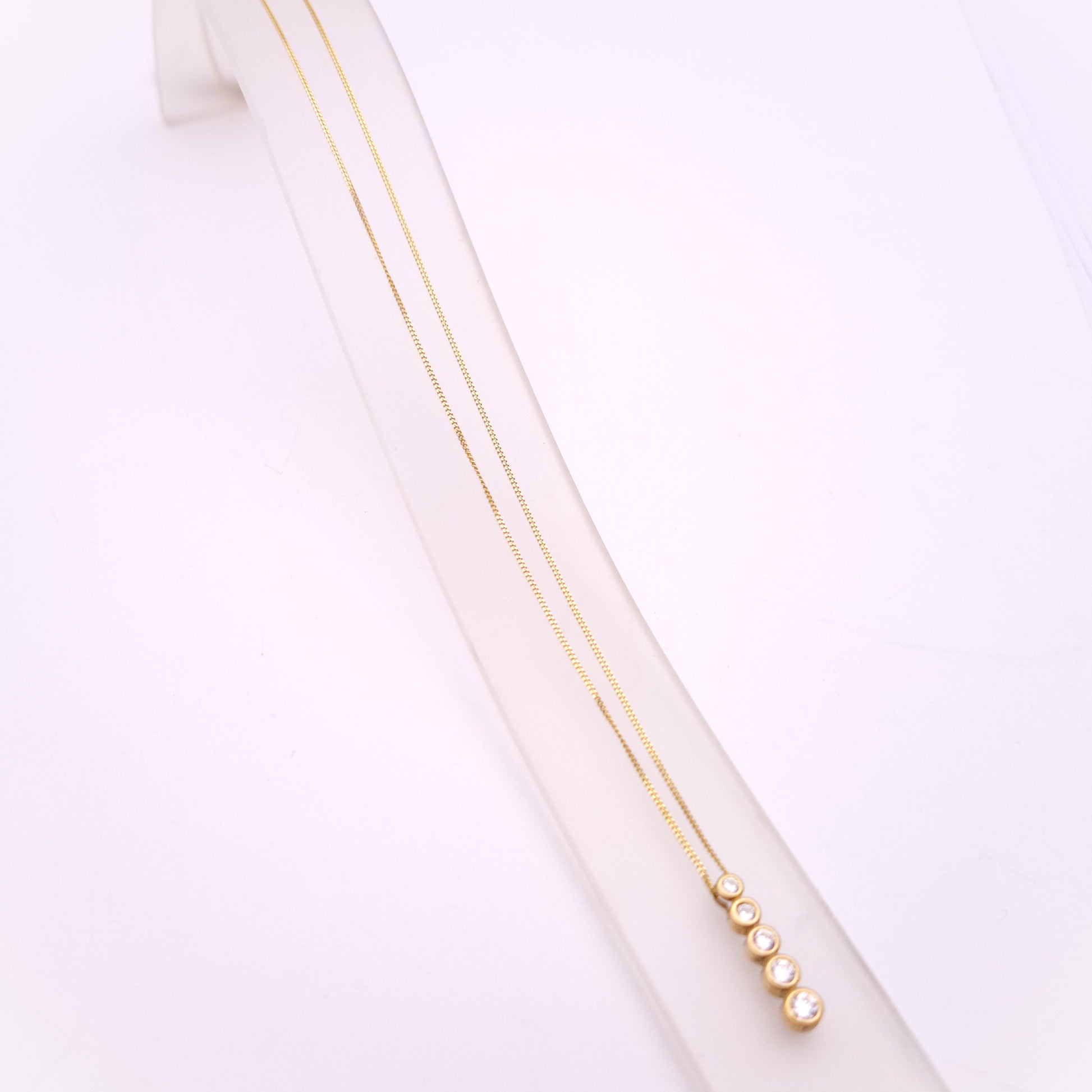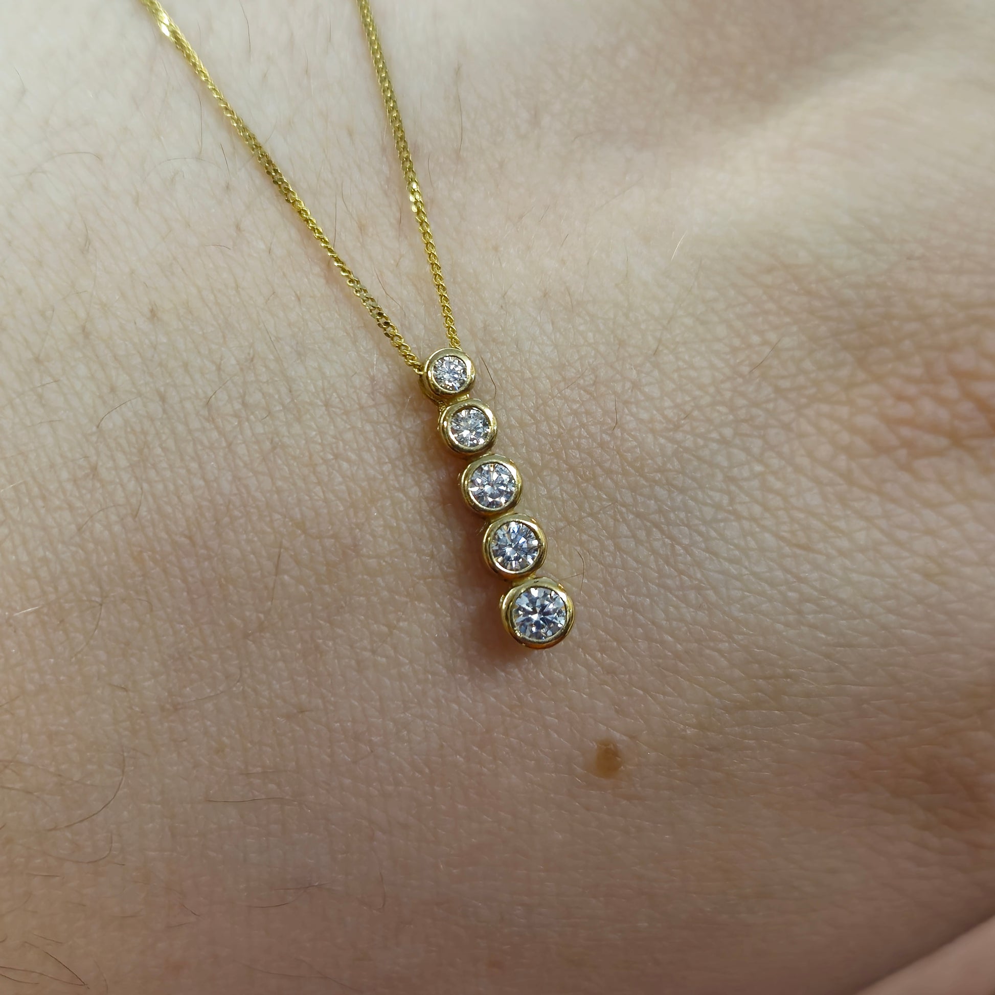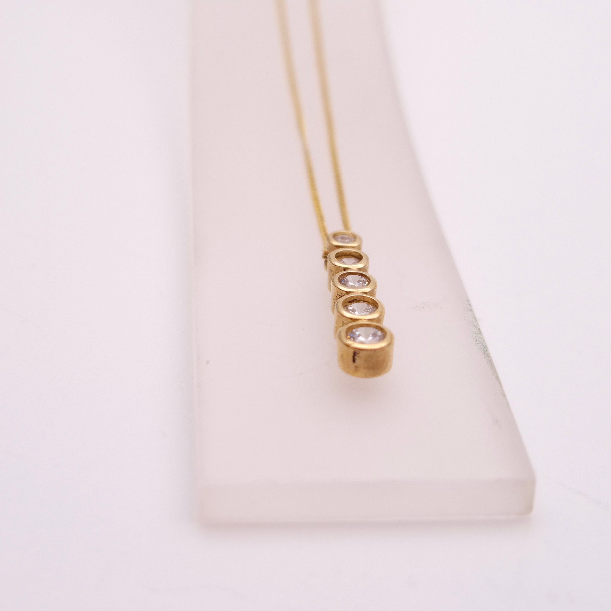This necklace is a celebration of brilliance and simplicity. The graduated CZ stones, carefully selected for their size and clarity, create a captivating visual effect, drawing the eye to the delicate sparkle that cascades down the pendant. The warm glow of the 9ct yellow gold setting complements the brilliance of the CZs, adding a touch of luxury and sophistication.