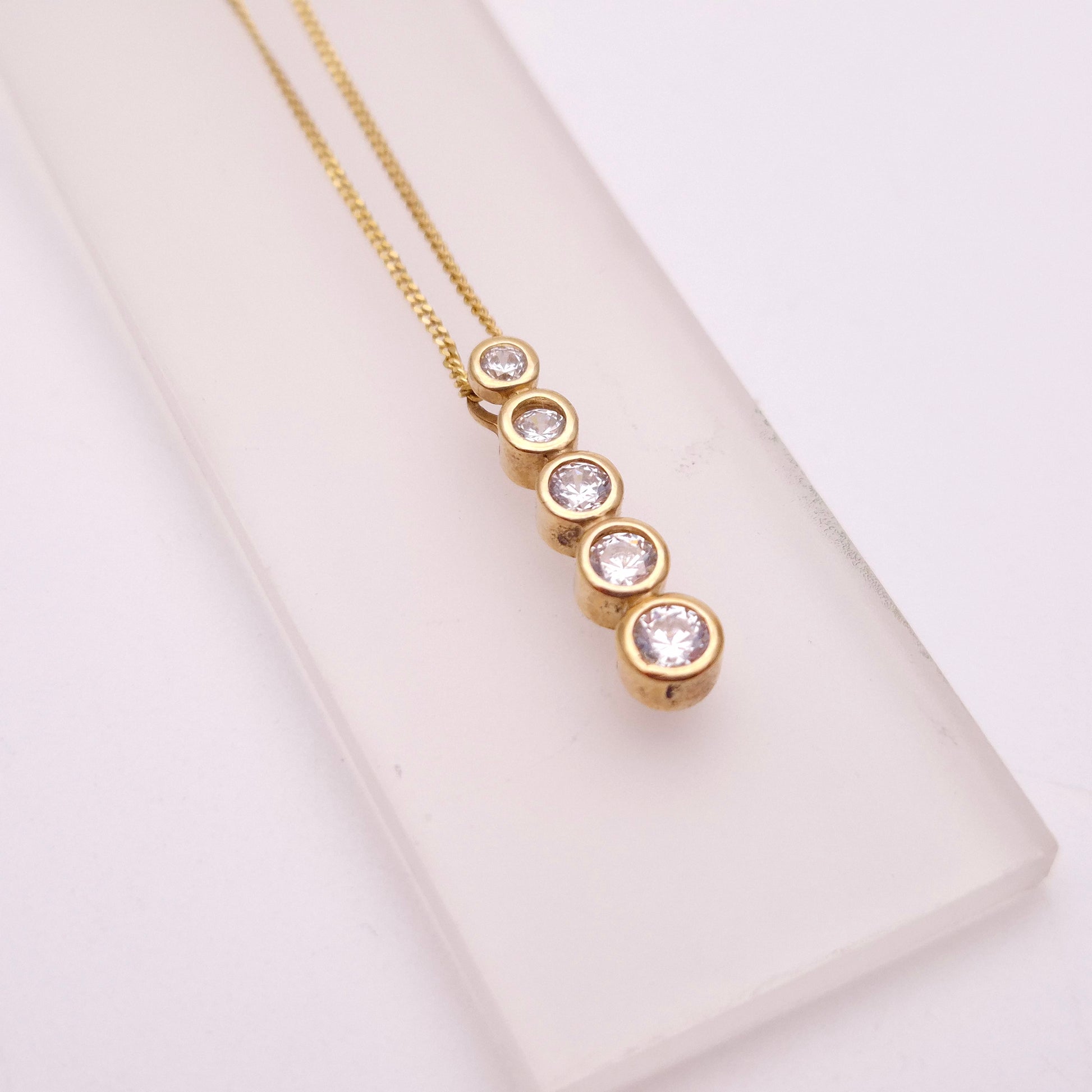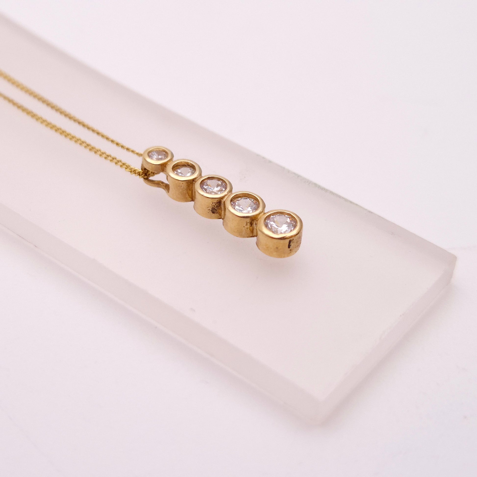 9ct Yellow Gold Graduated Cubic Zirconia CZ pendant Necklace