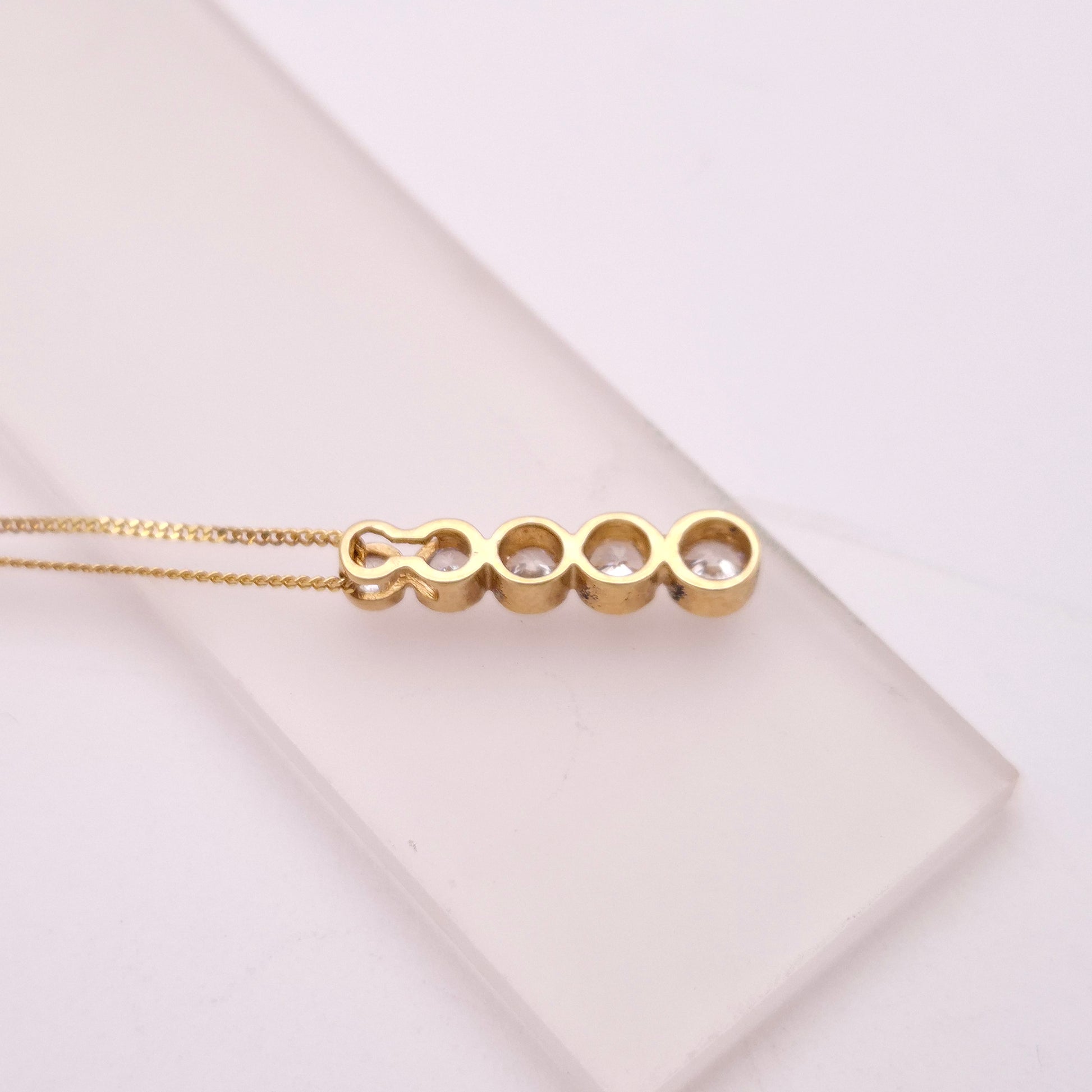 Add a touch of effortless elegance to your look with this stunning 9ct yellow gold pendant necklace. Featuring a cascade of graduated cubic zirconia (CZ) stones, this piece offers a dazzling display of sparkle and a modern, sophisticated design.