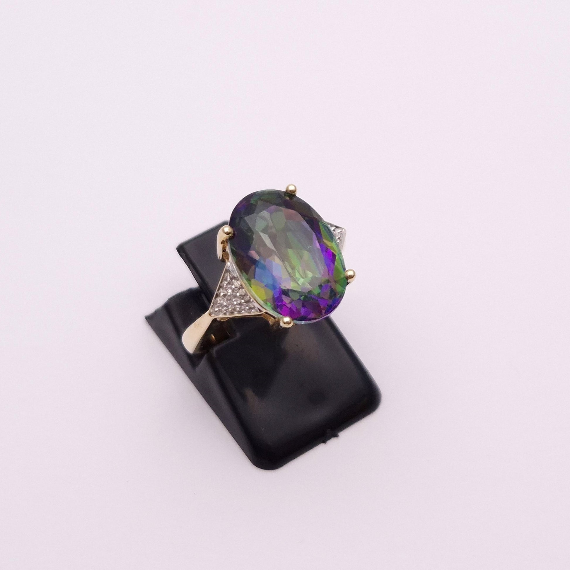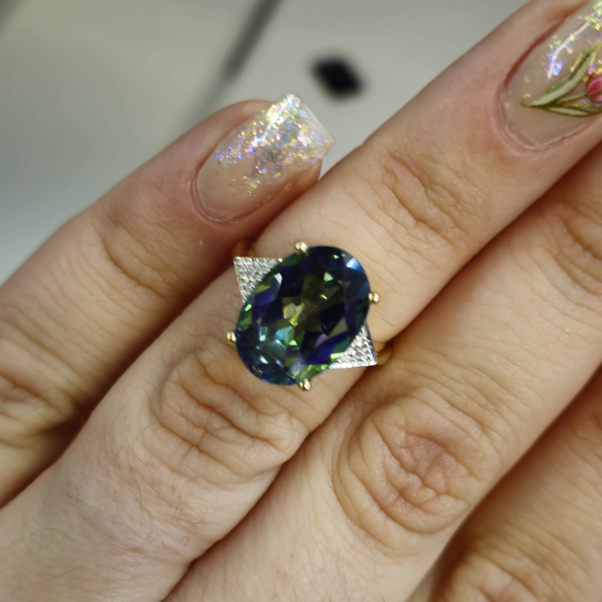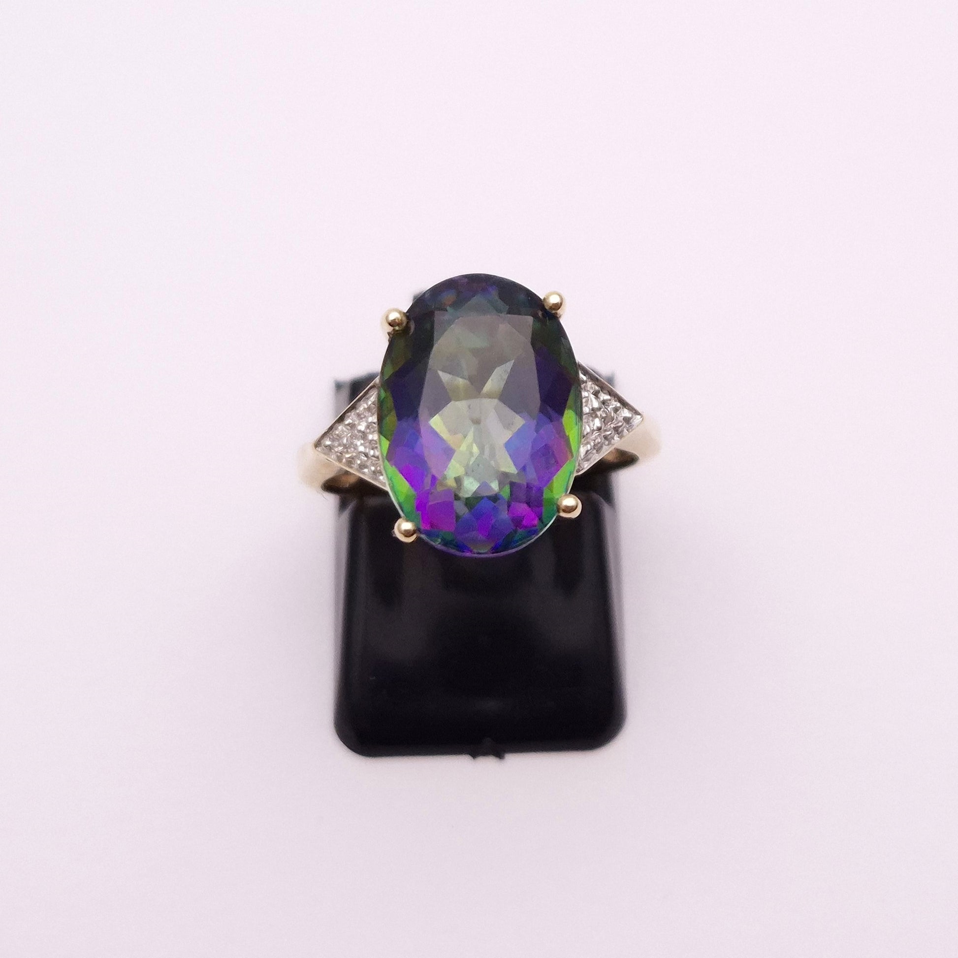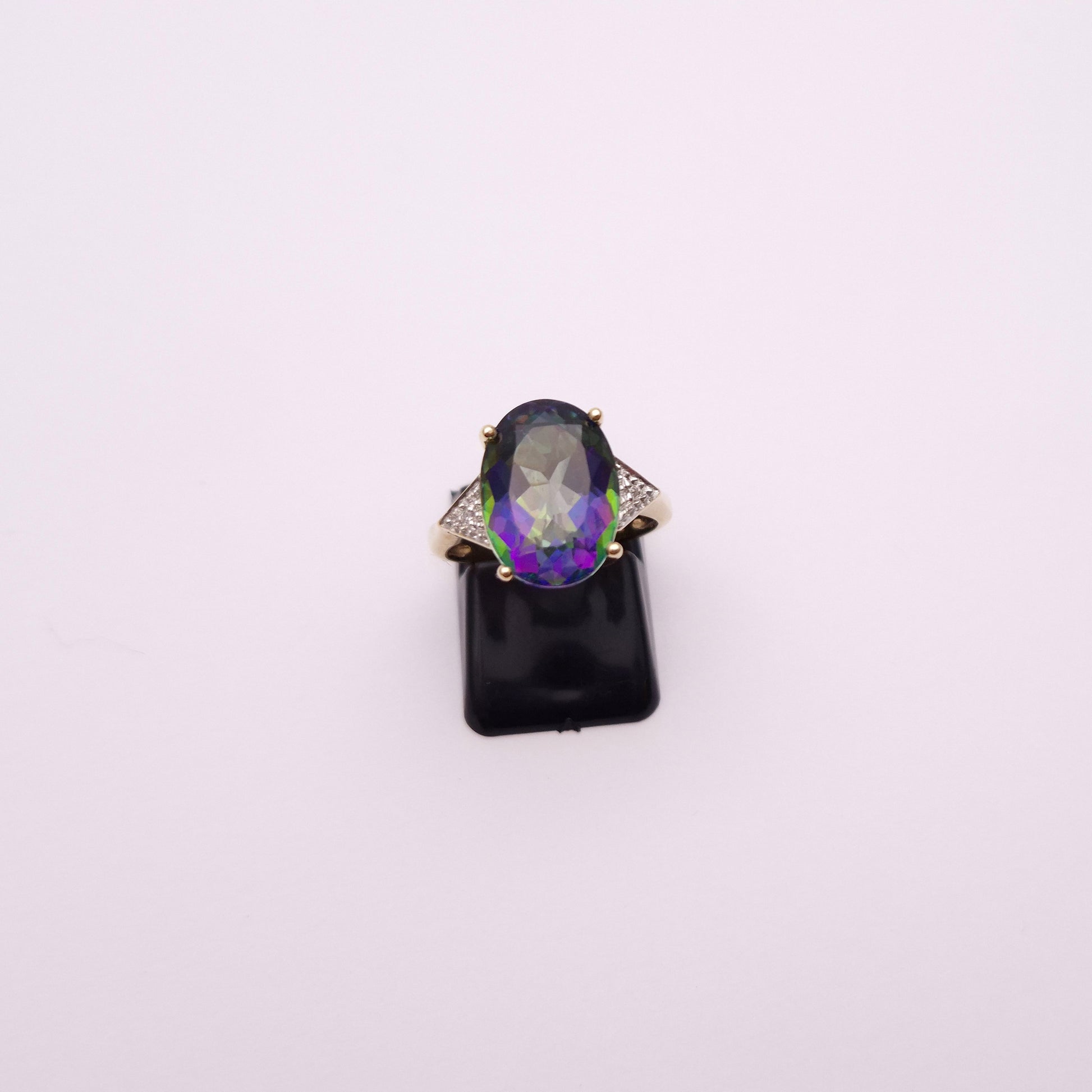 9ct Yellow Gold Mystic Topaz and Diamond Ring