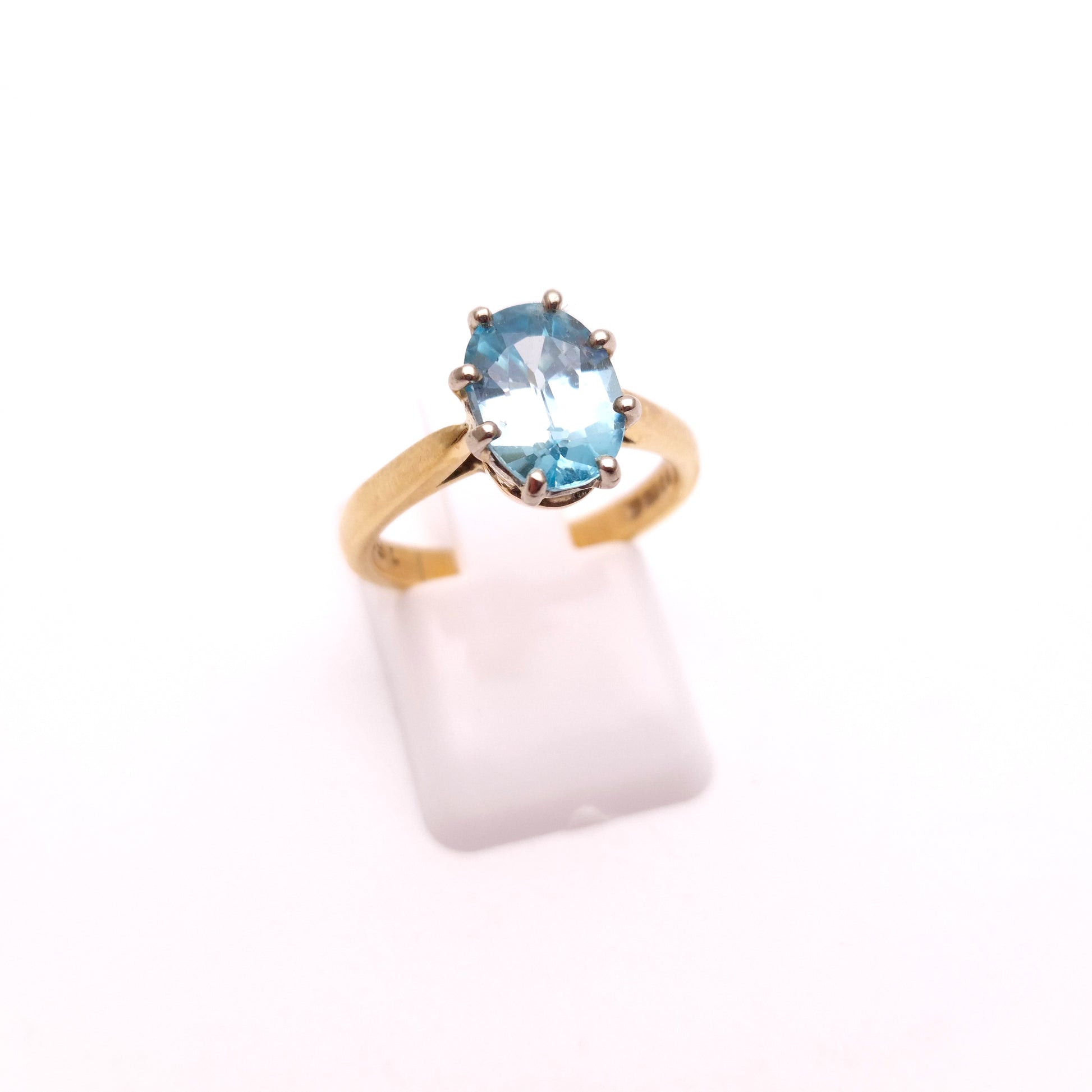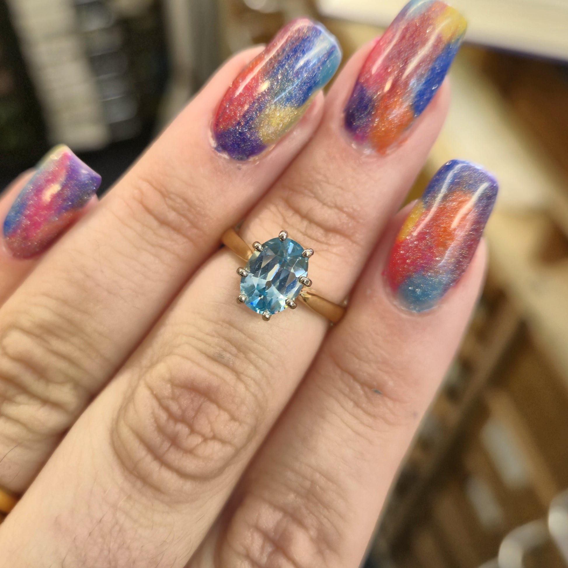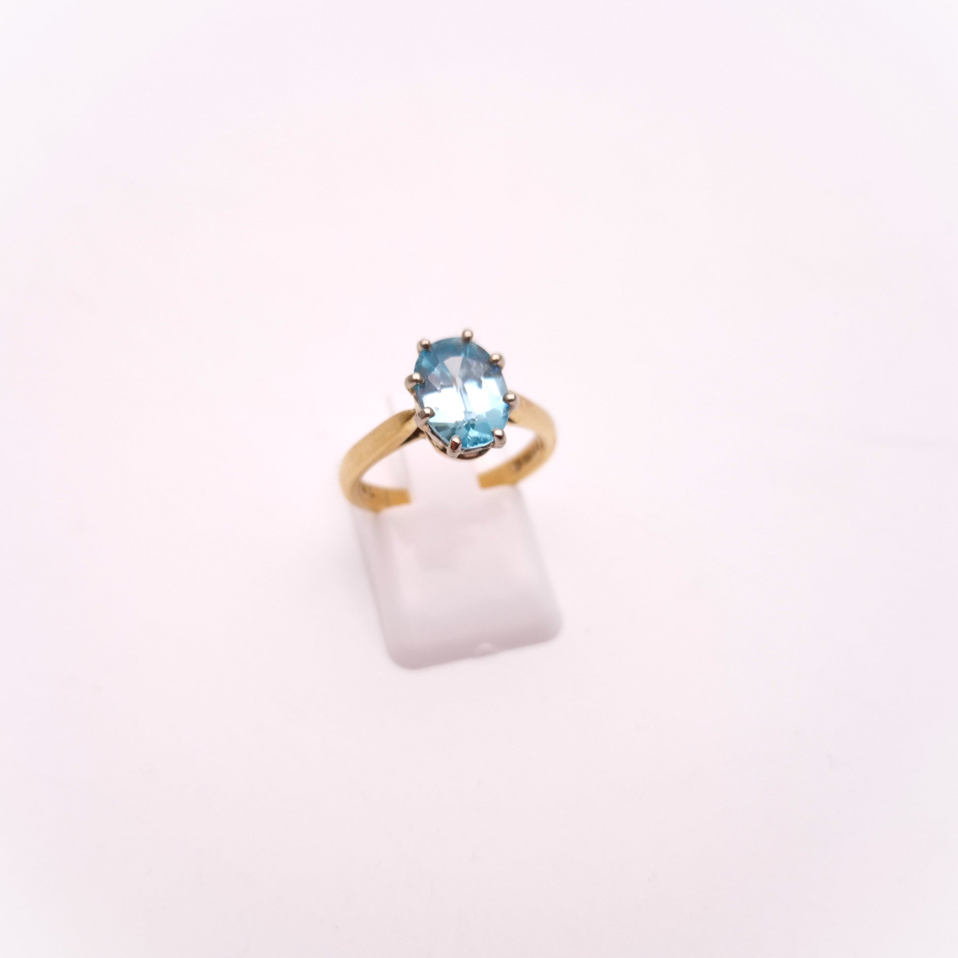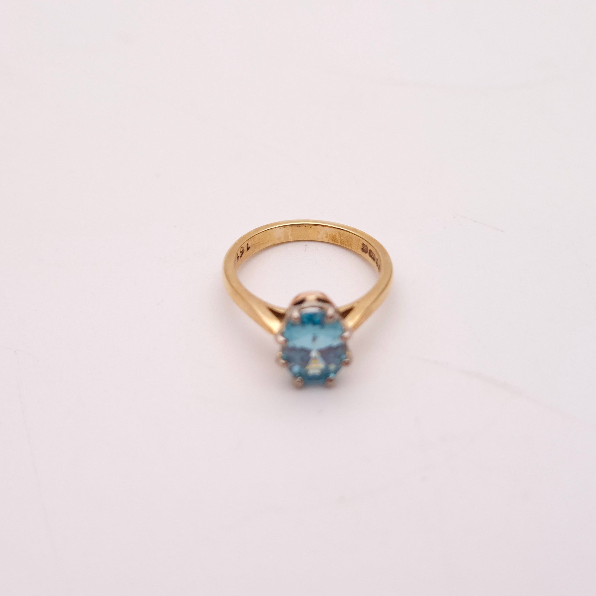 9ct Yellow Gold Oval Blue Zircon Solitaire Ring