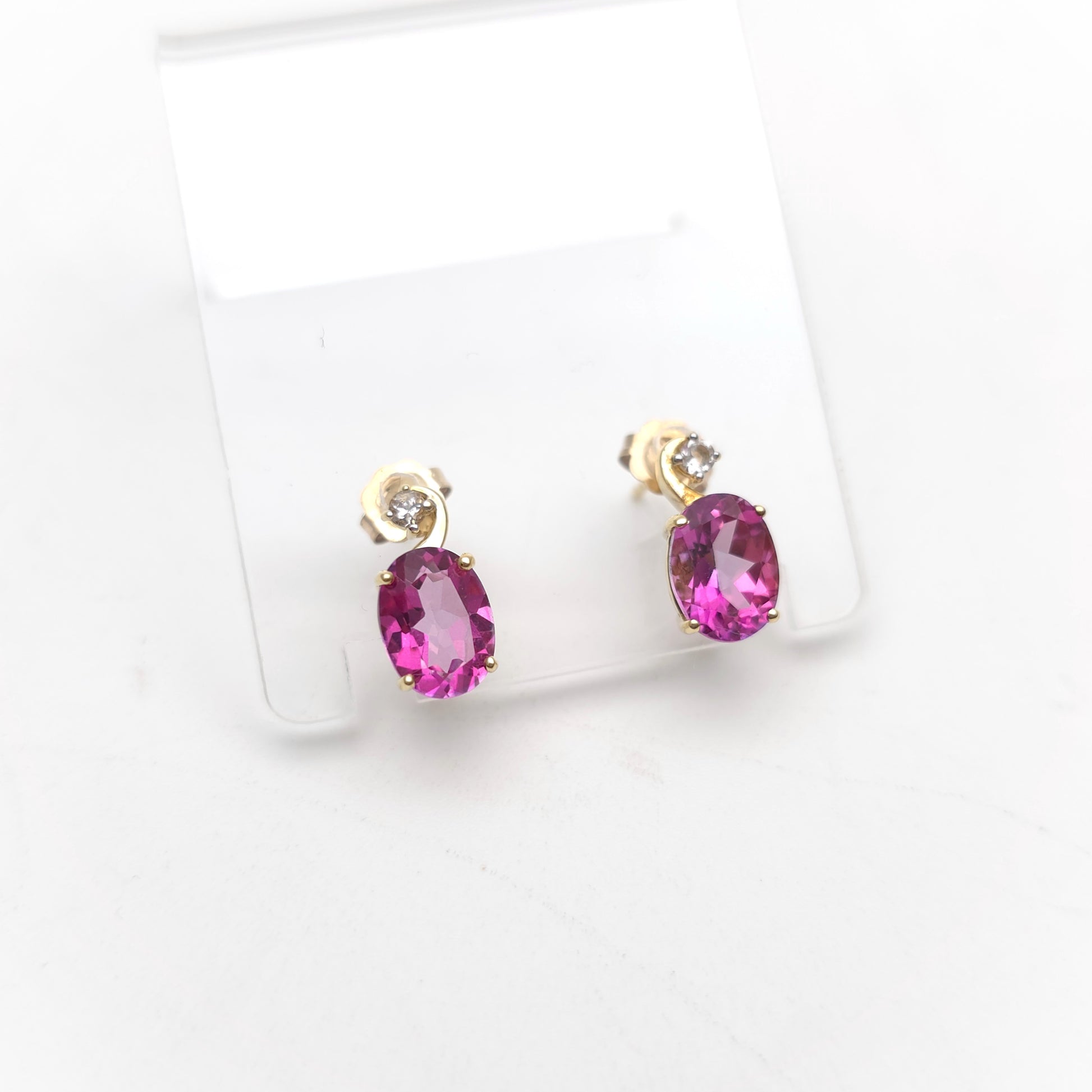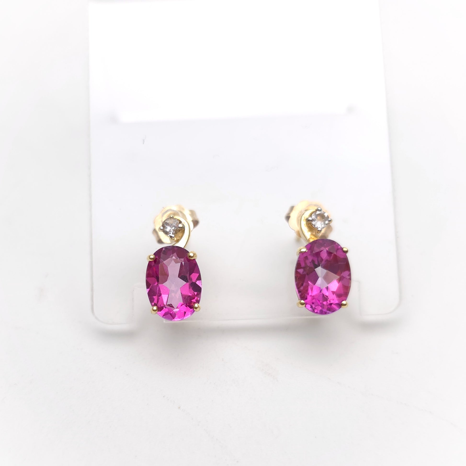 9ct Yellow Gold Oval Cut Pink Topaz And Round White Topaz Stud Earrings