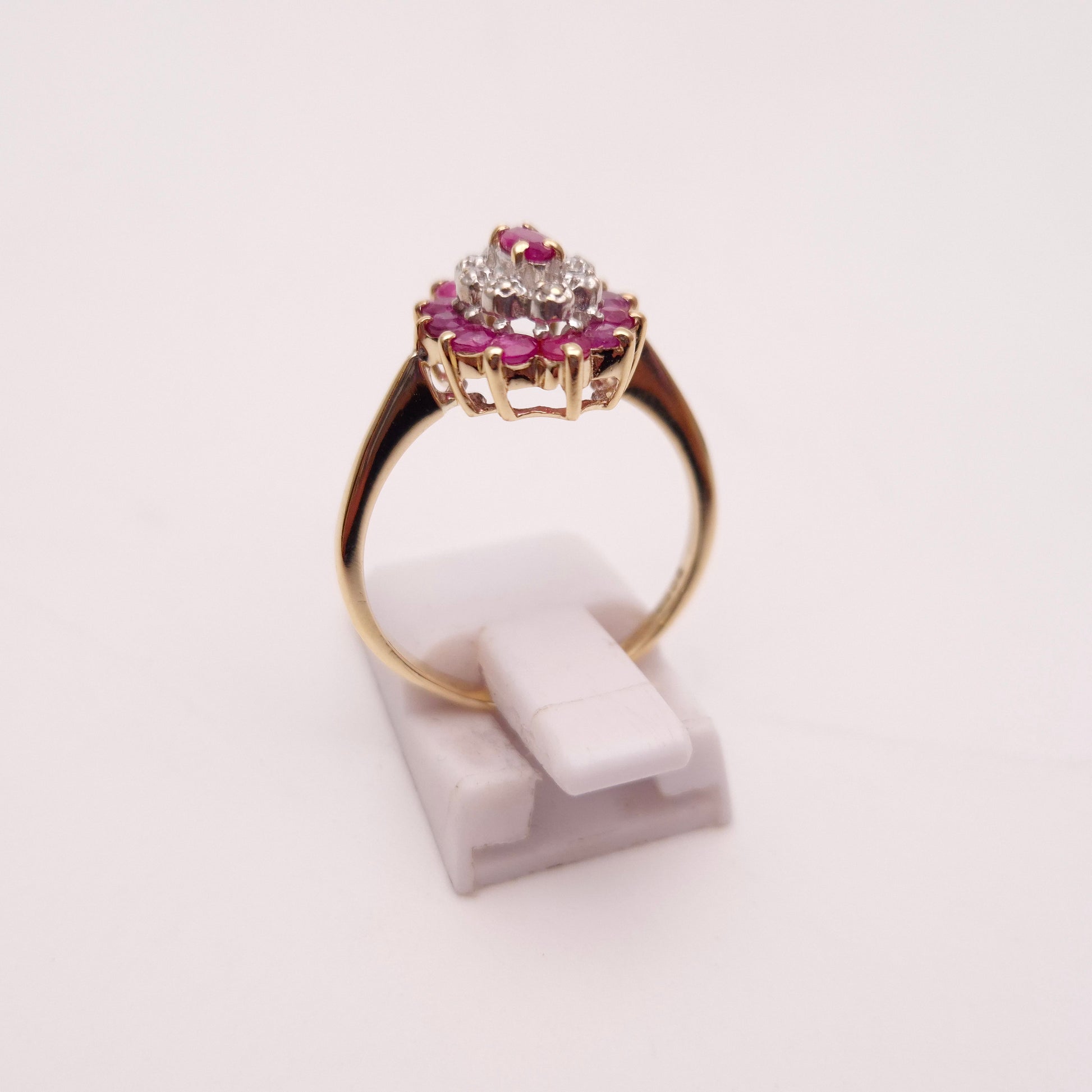 9ct Yellow Gold Ruby and Diamond Marquise Cluster Ring