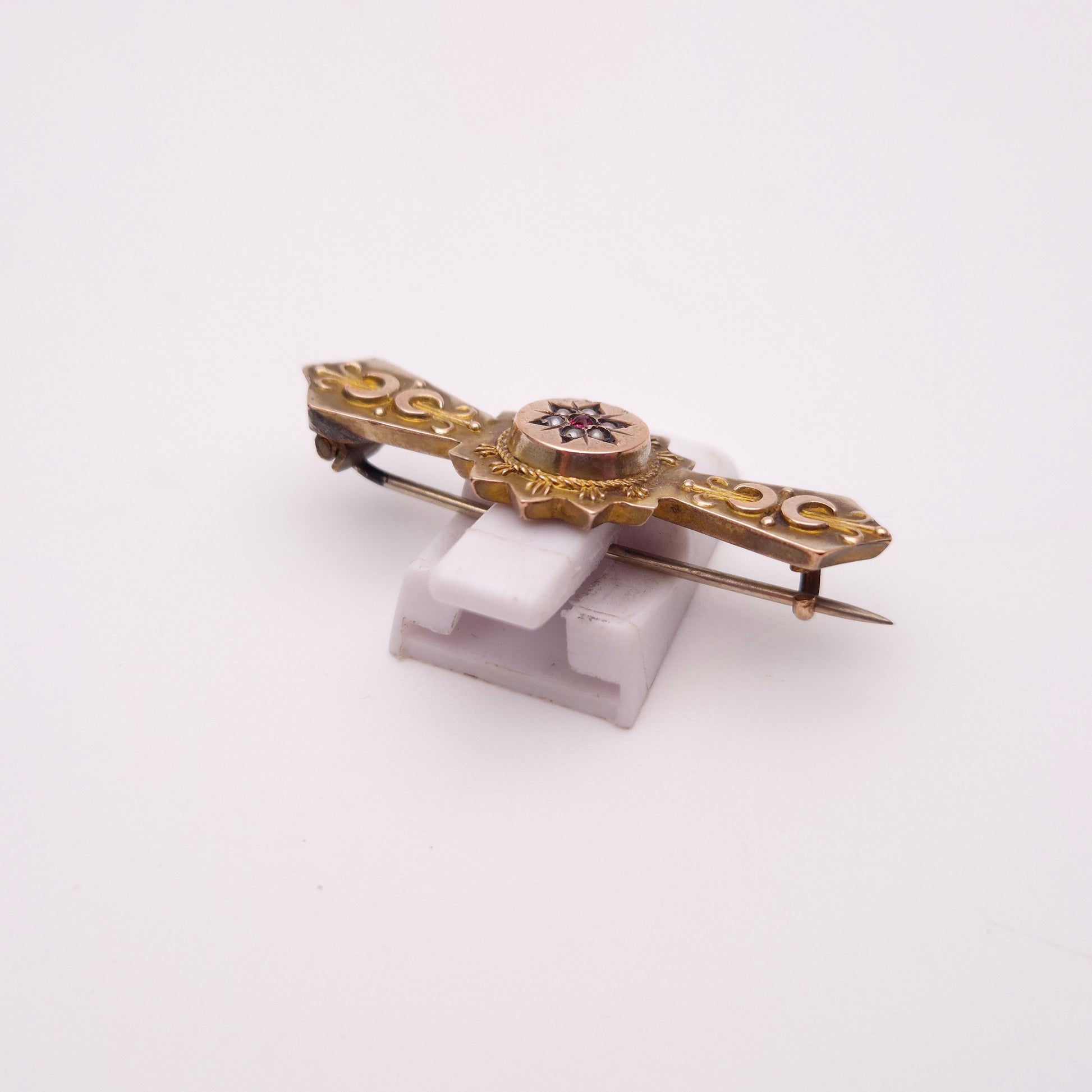 9ct Yellow Gold Ruby and Pearl Antique Mourning Style Brooch