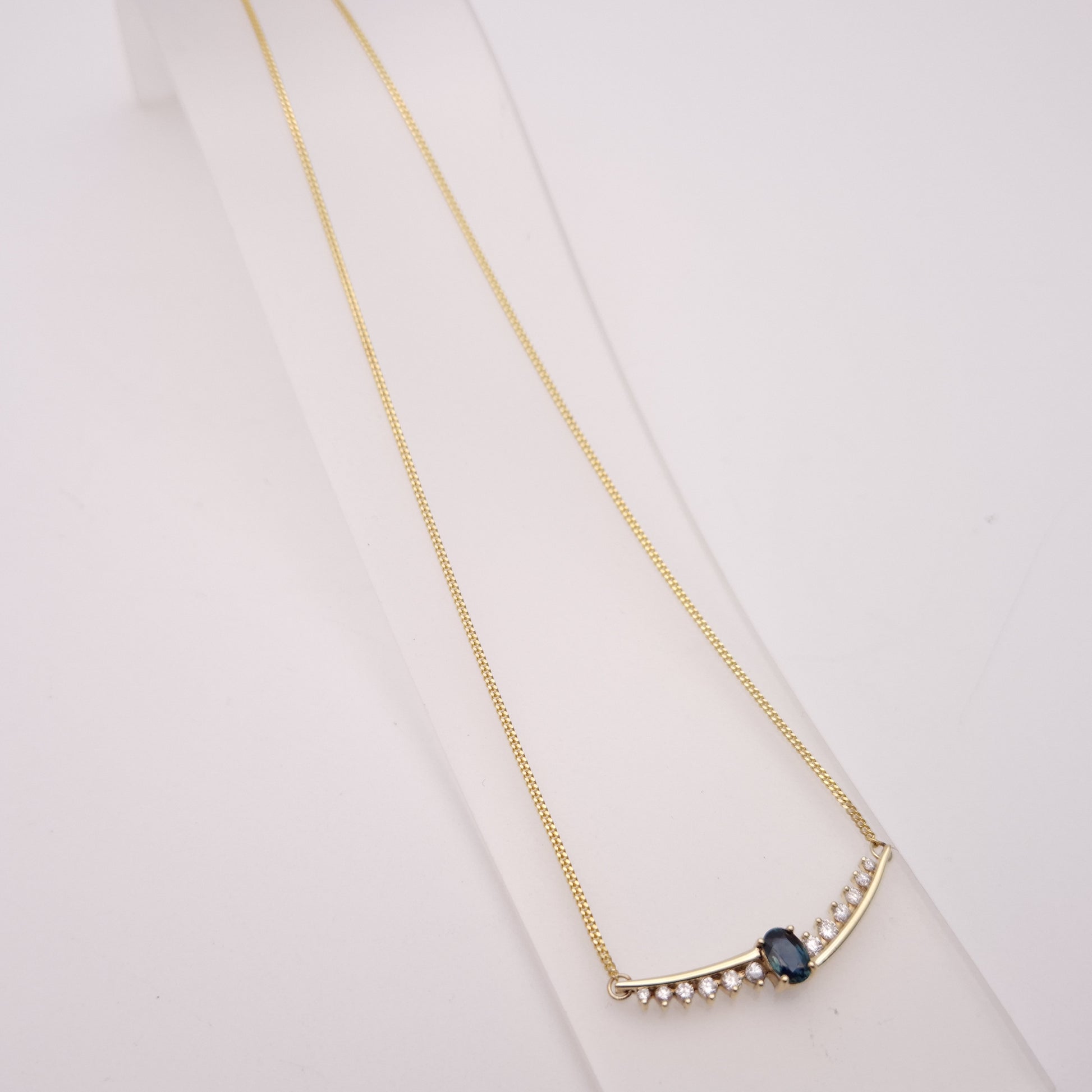 9ct Yellow Gold Sapphire and Diamond Necklet / Necklace