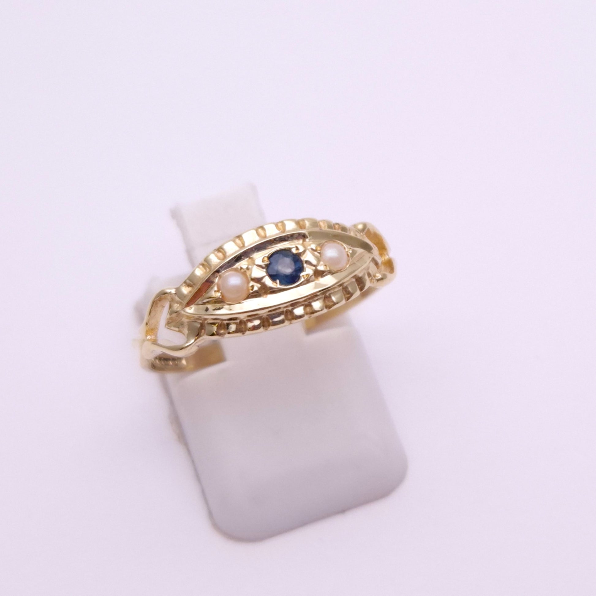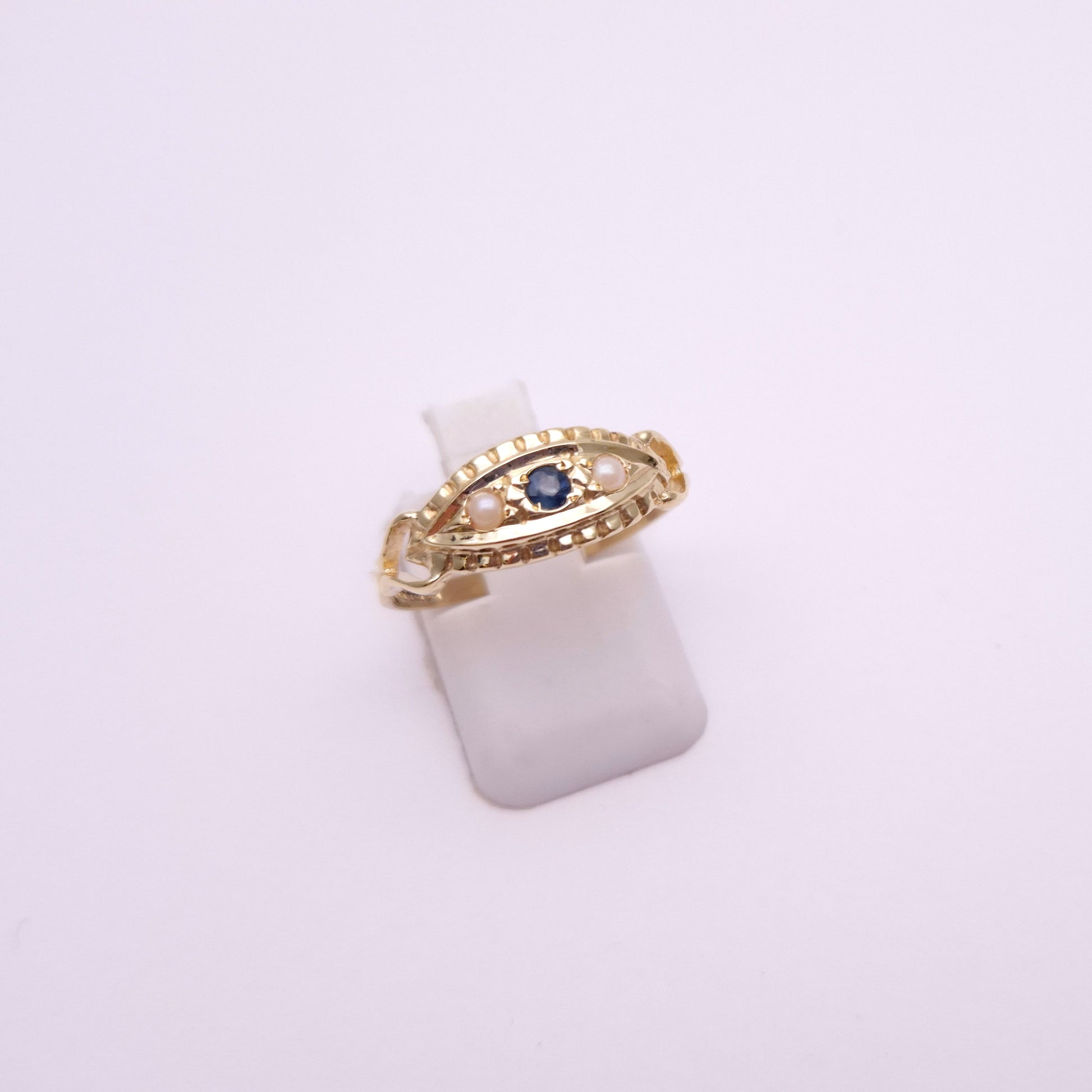 9ct Yellow Gold Sapphire and Pearl Repro Boat Ring
