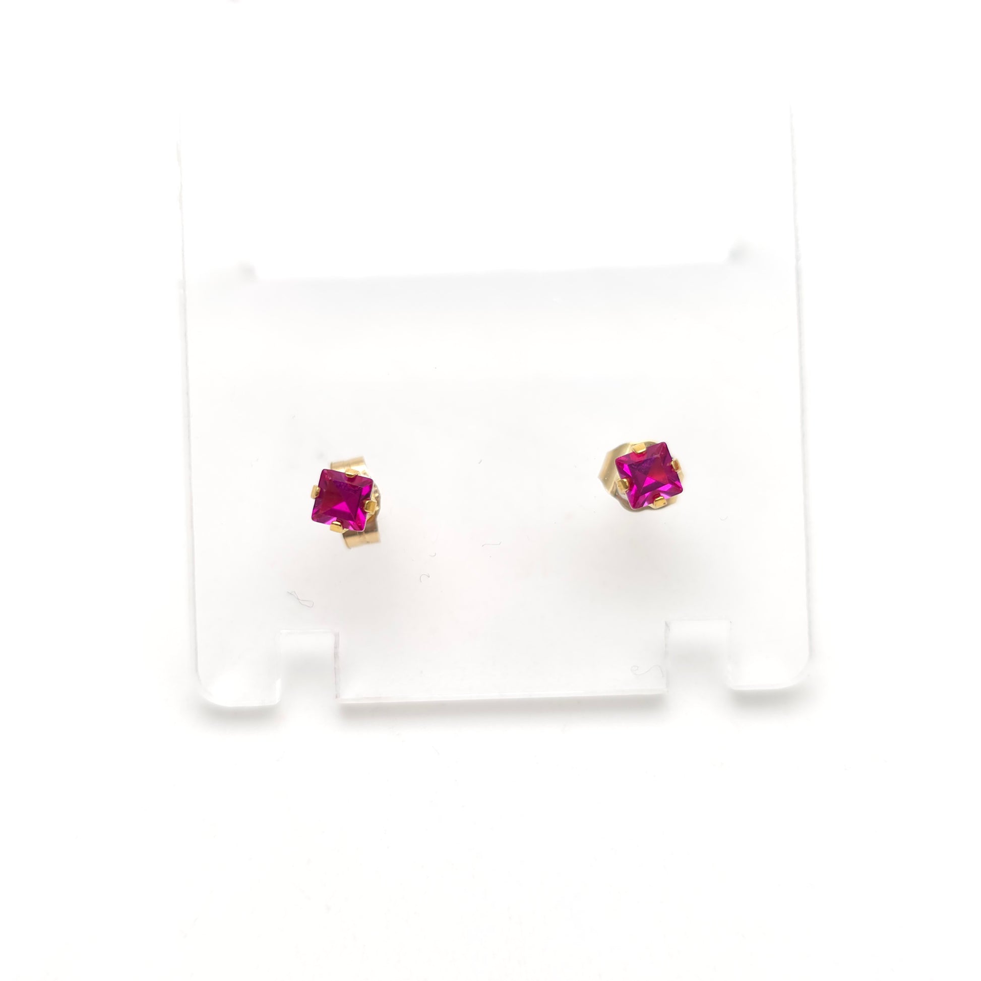 9ct Yellow Gold Small Princess Square Cut Synthetic Ruby Stud Earrings