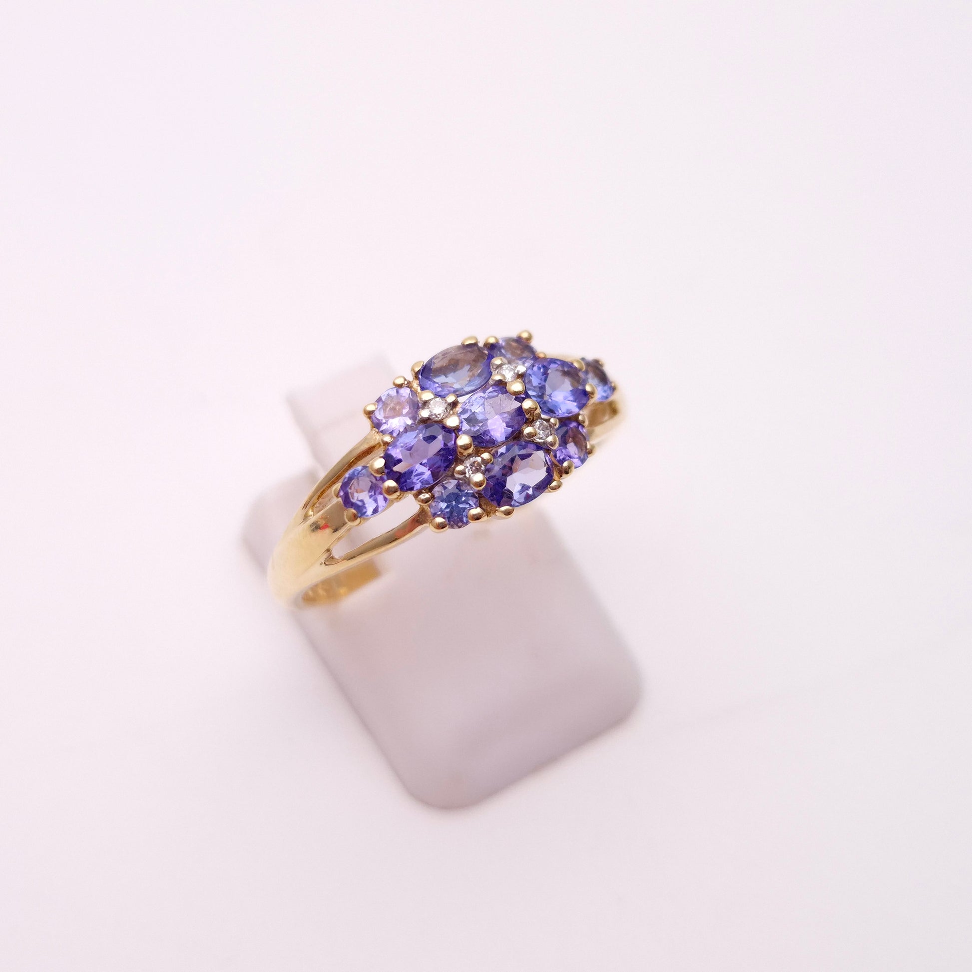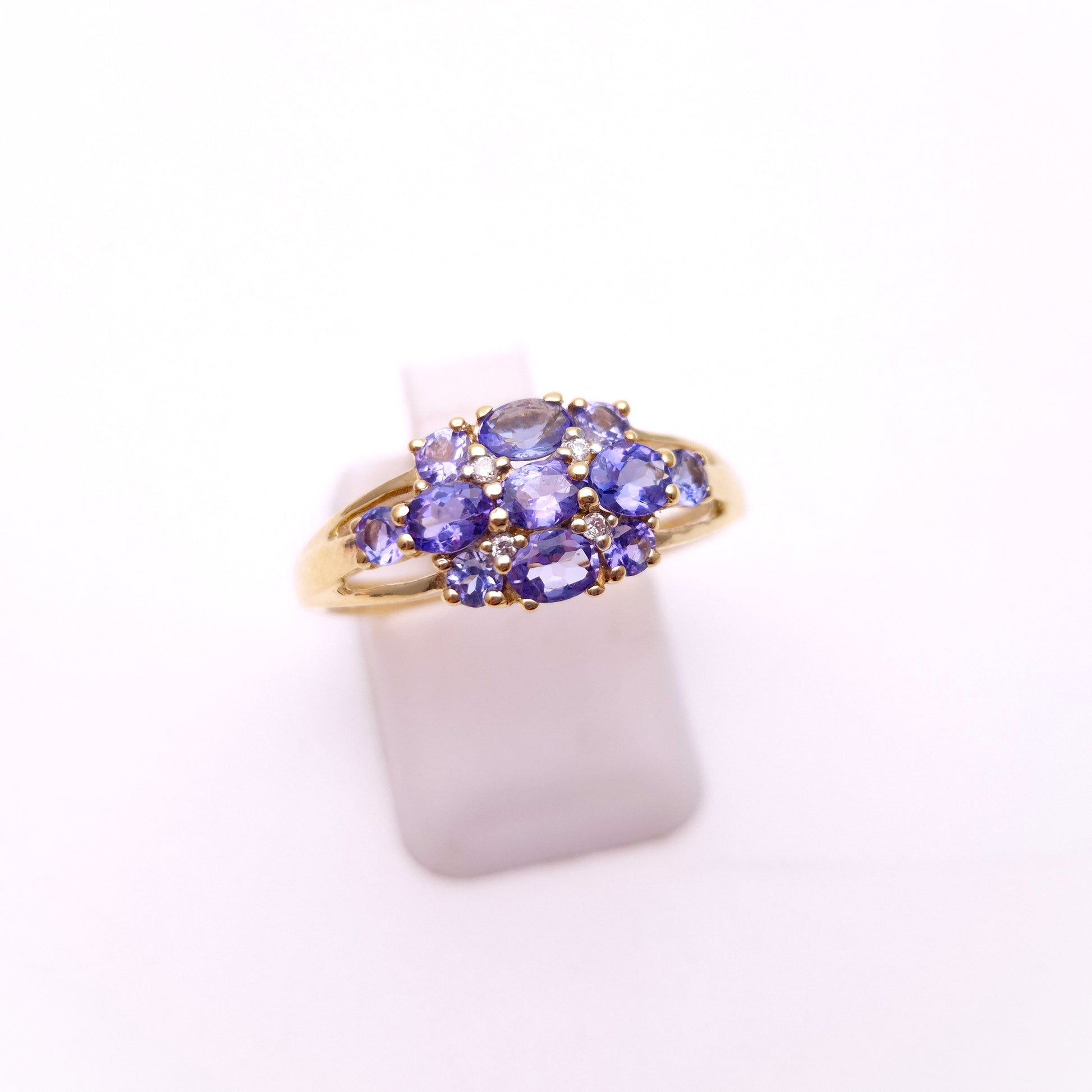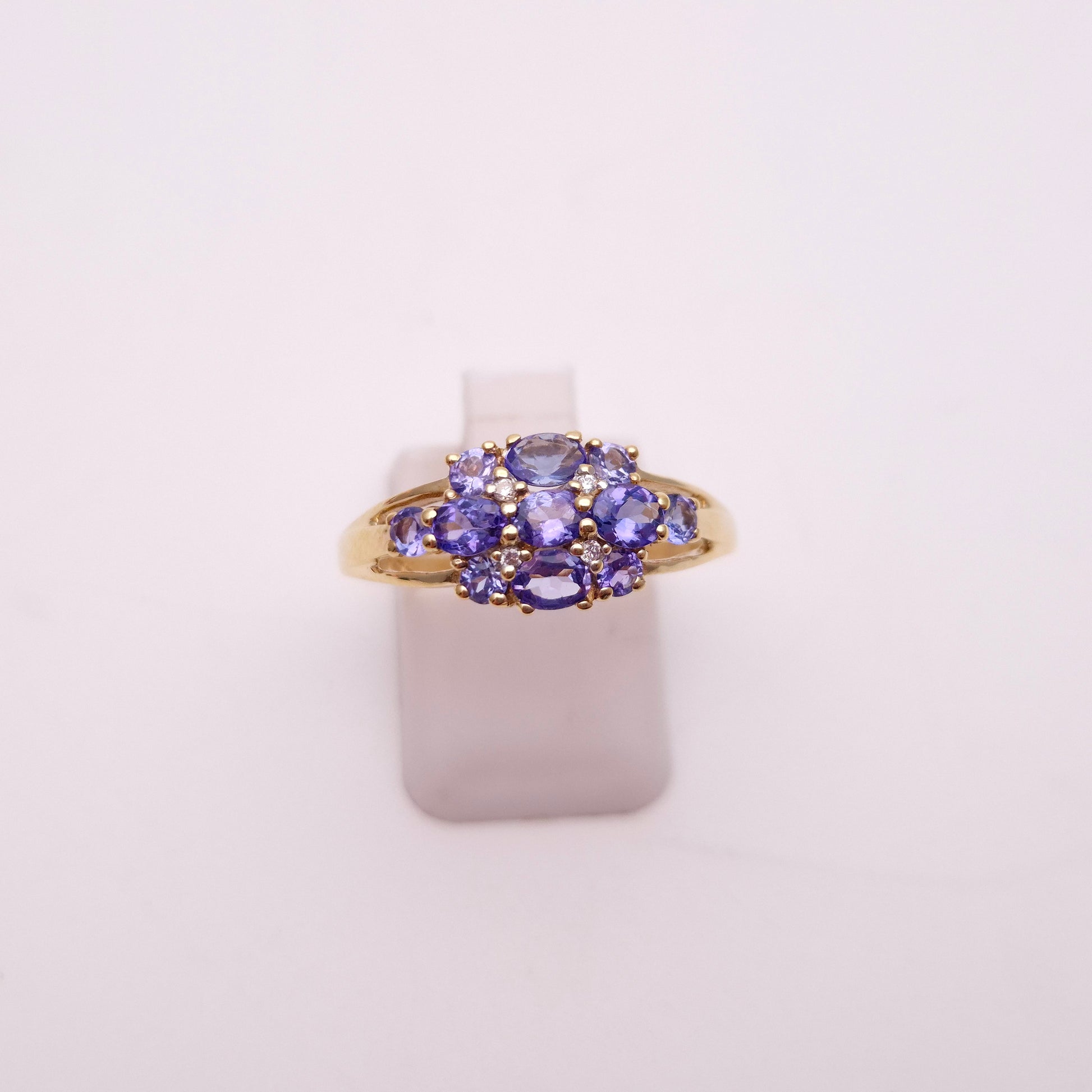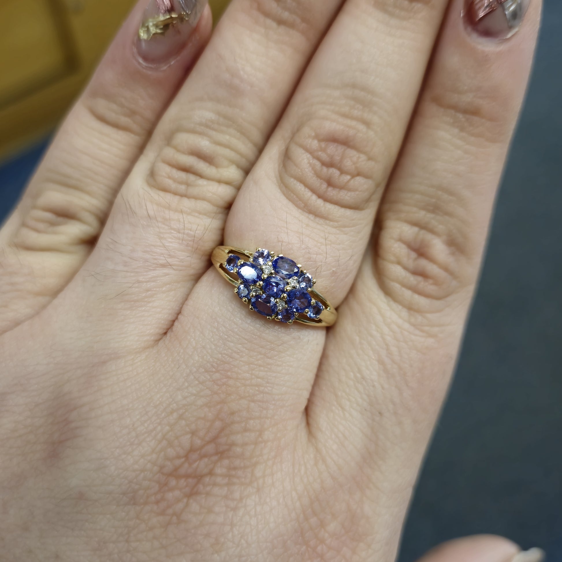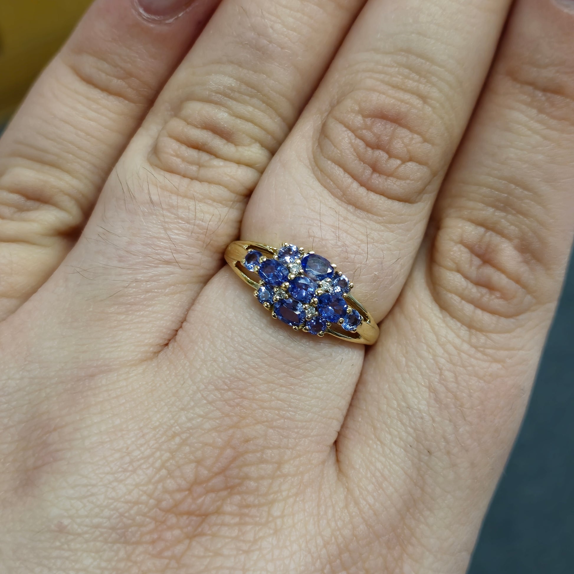 9ct Yellow Gold Tanzanite and Diamond Multistone Cluster Ring