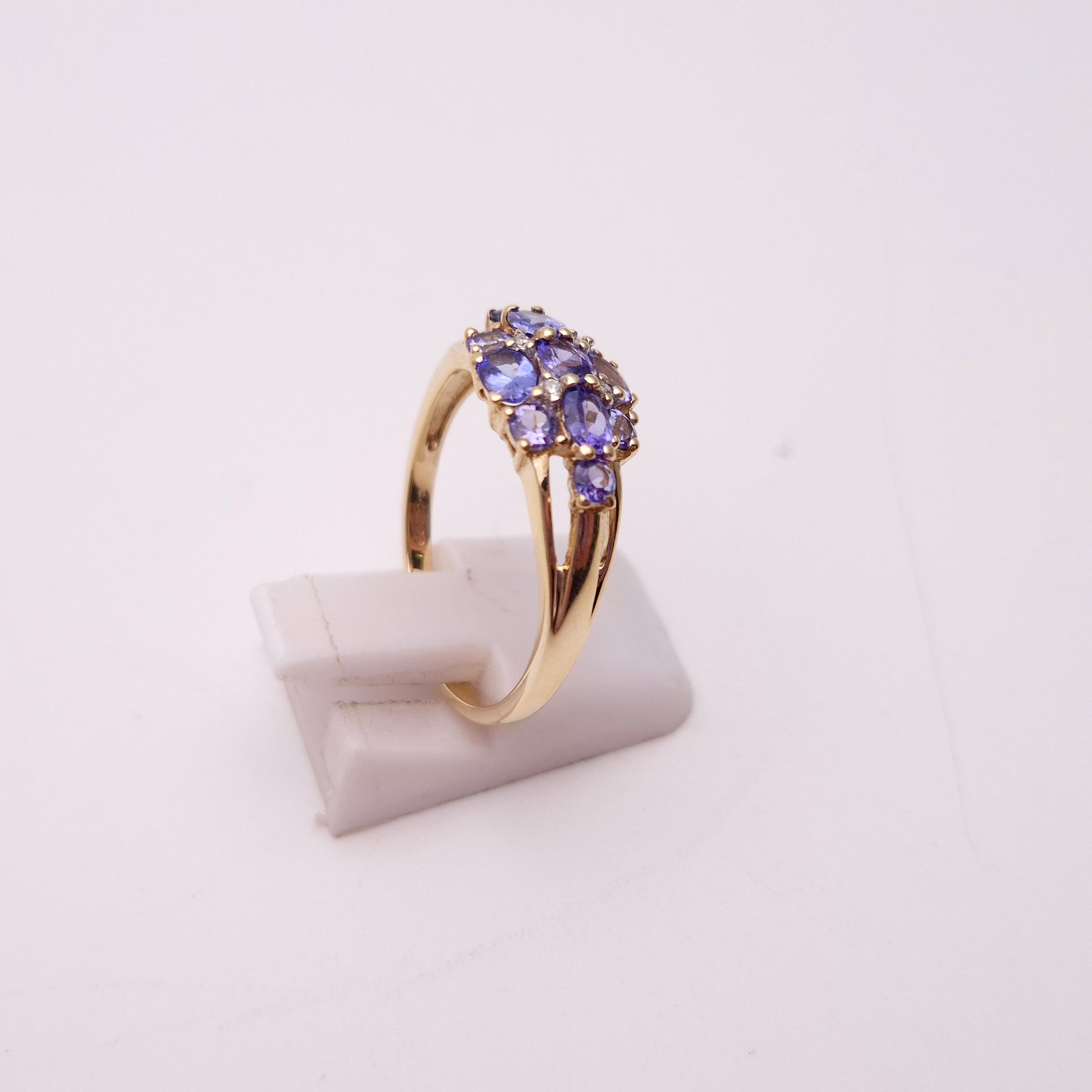 Capture the captivating beauty of tanzanite with this exquisite 9ct Yellow Gold Tanzanite and Diamond Multistone Cluster Ring. This ring showcases a cluster of vibrant tanzanite gemstones, accented with sparkling diamonds, creating a truly mesmerizing piece.