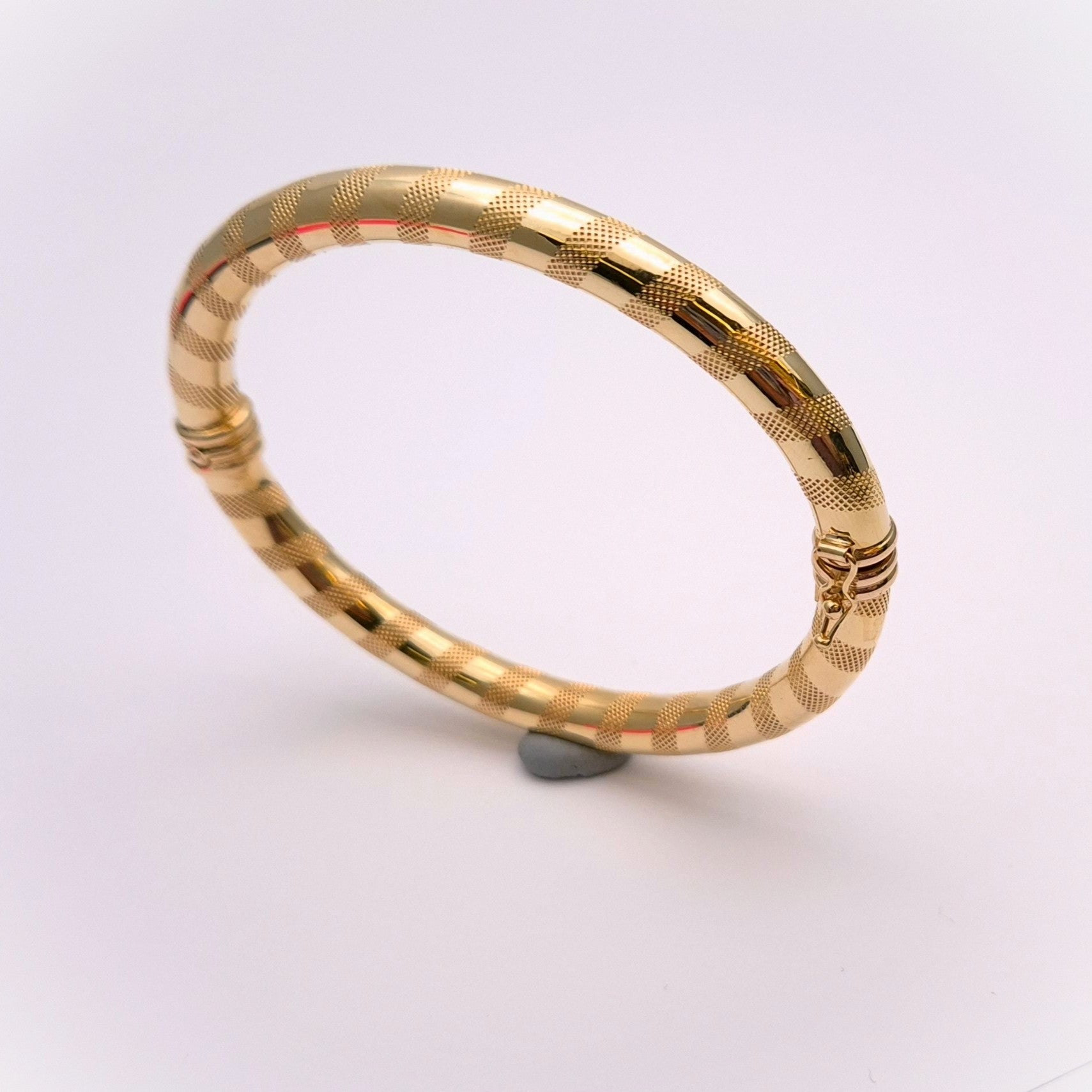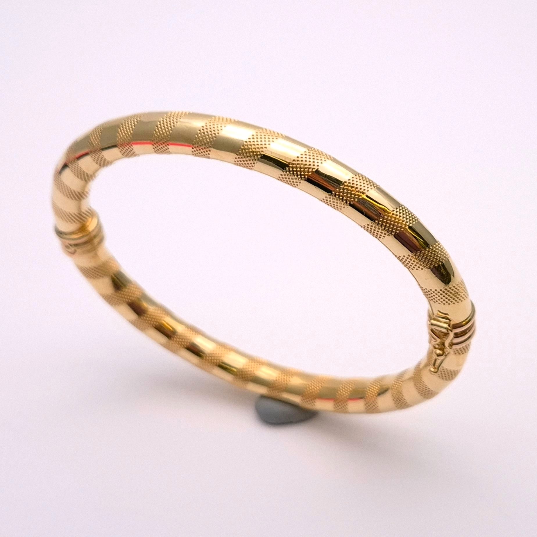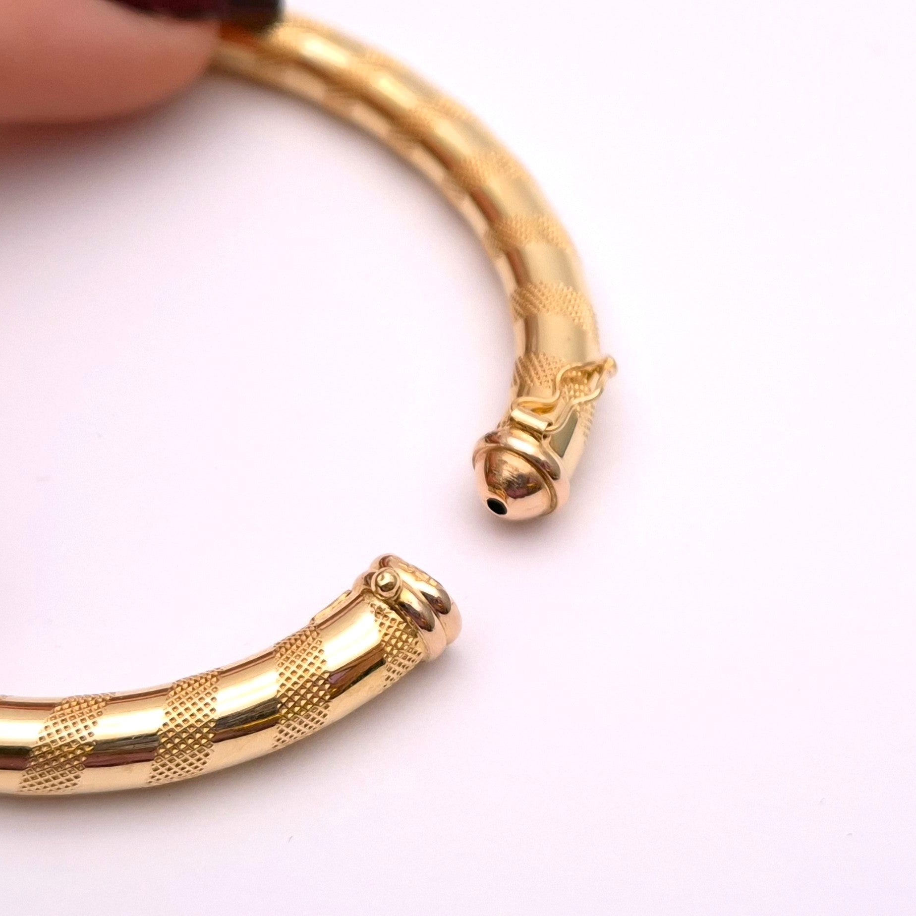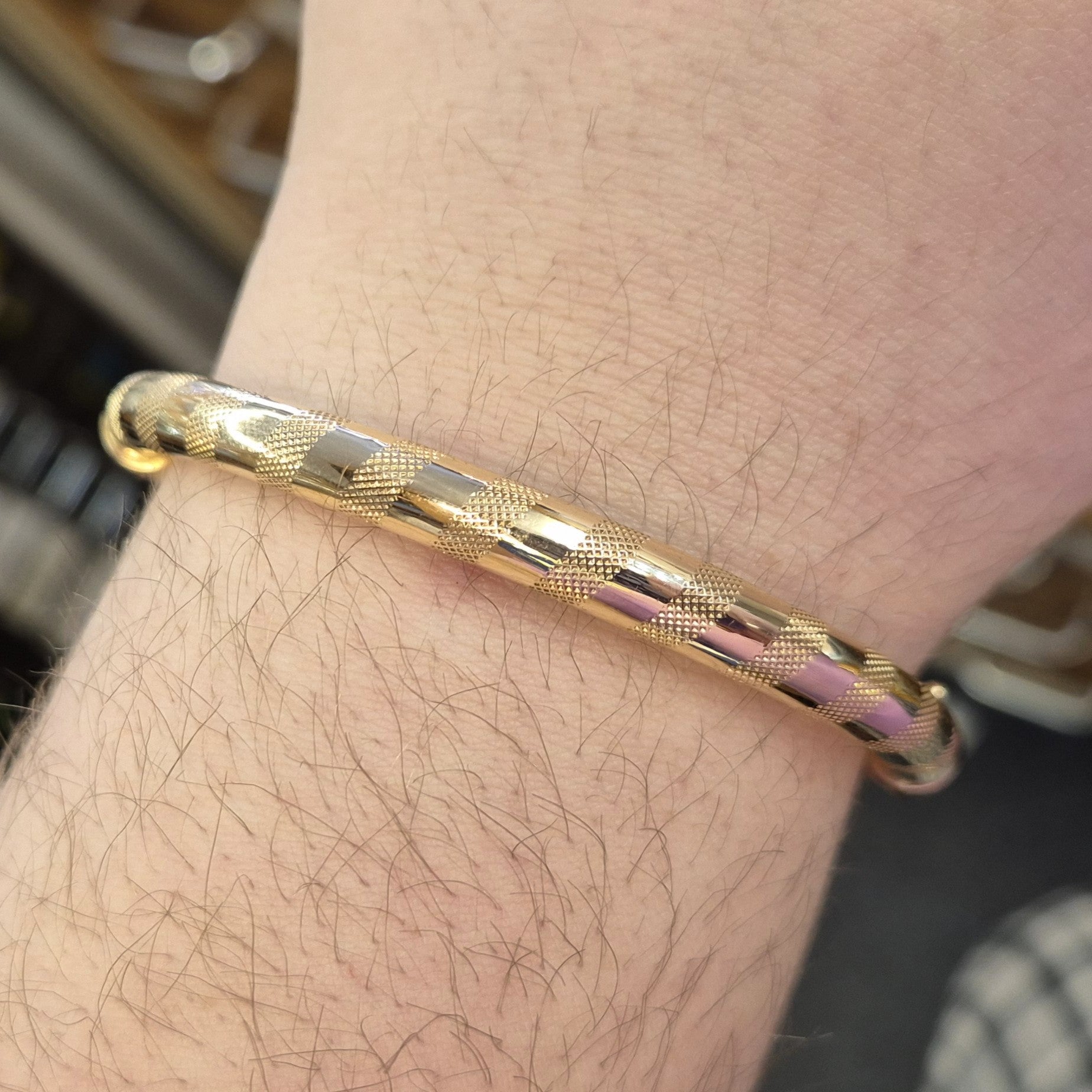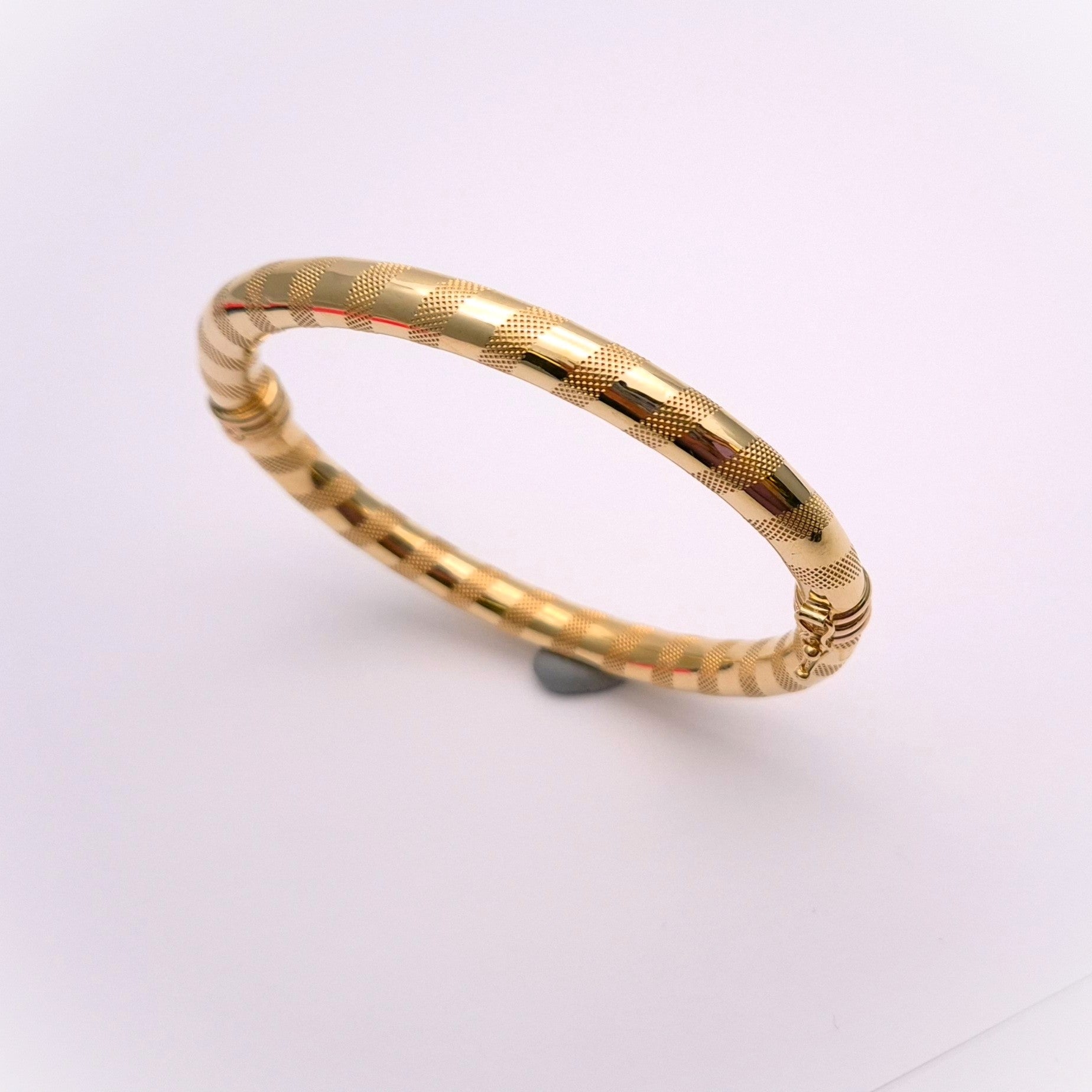 9ct Yellow Gold Textured Stripe Spring Hinged bangle