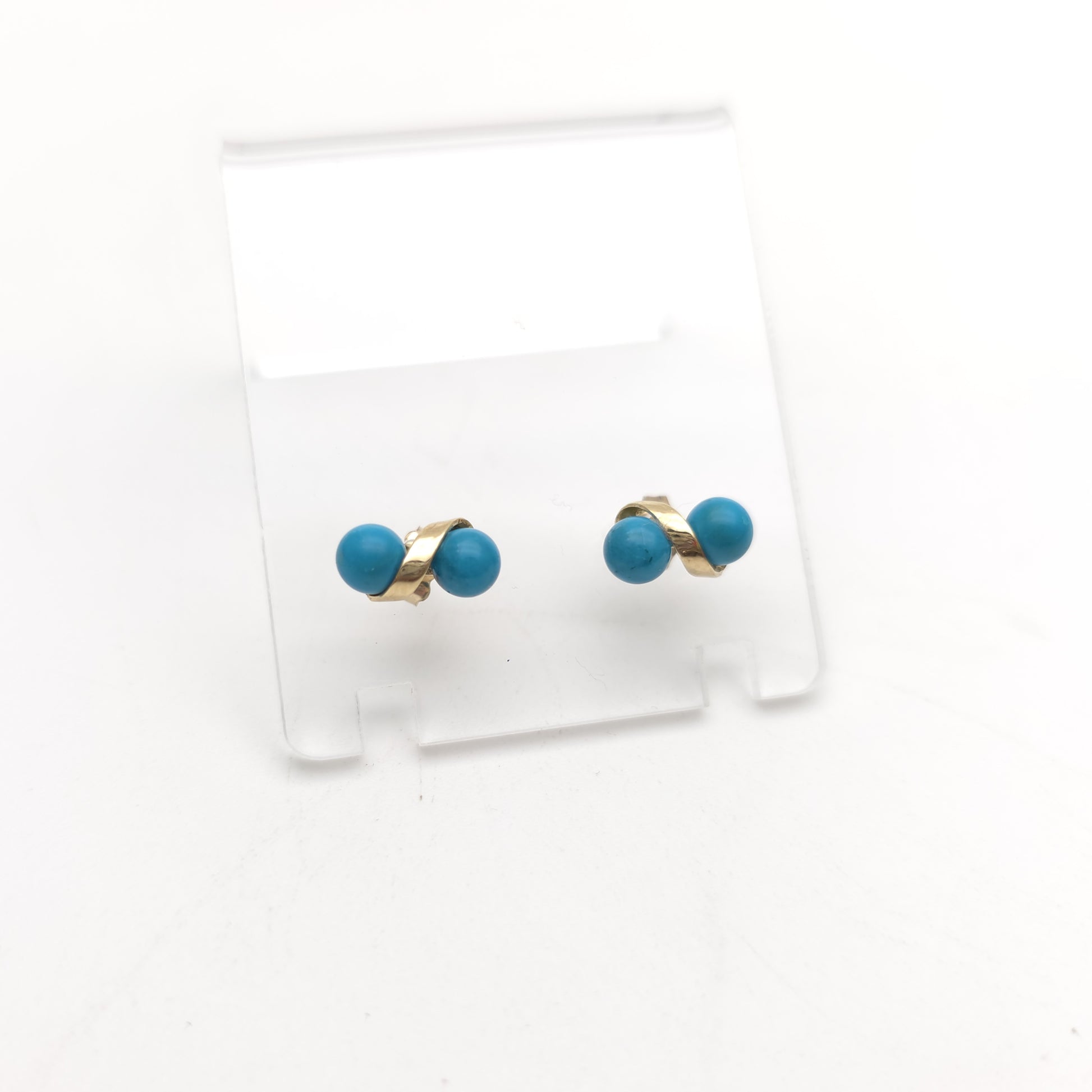 9ct Yellow Gold Turquoise Double Bead Spiral Stud Earrings