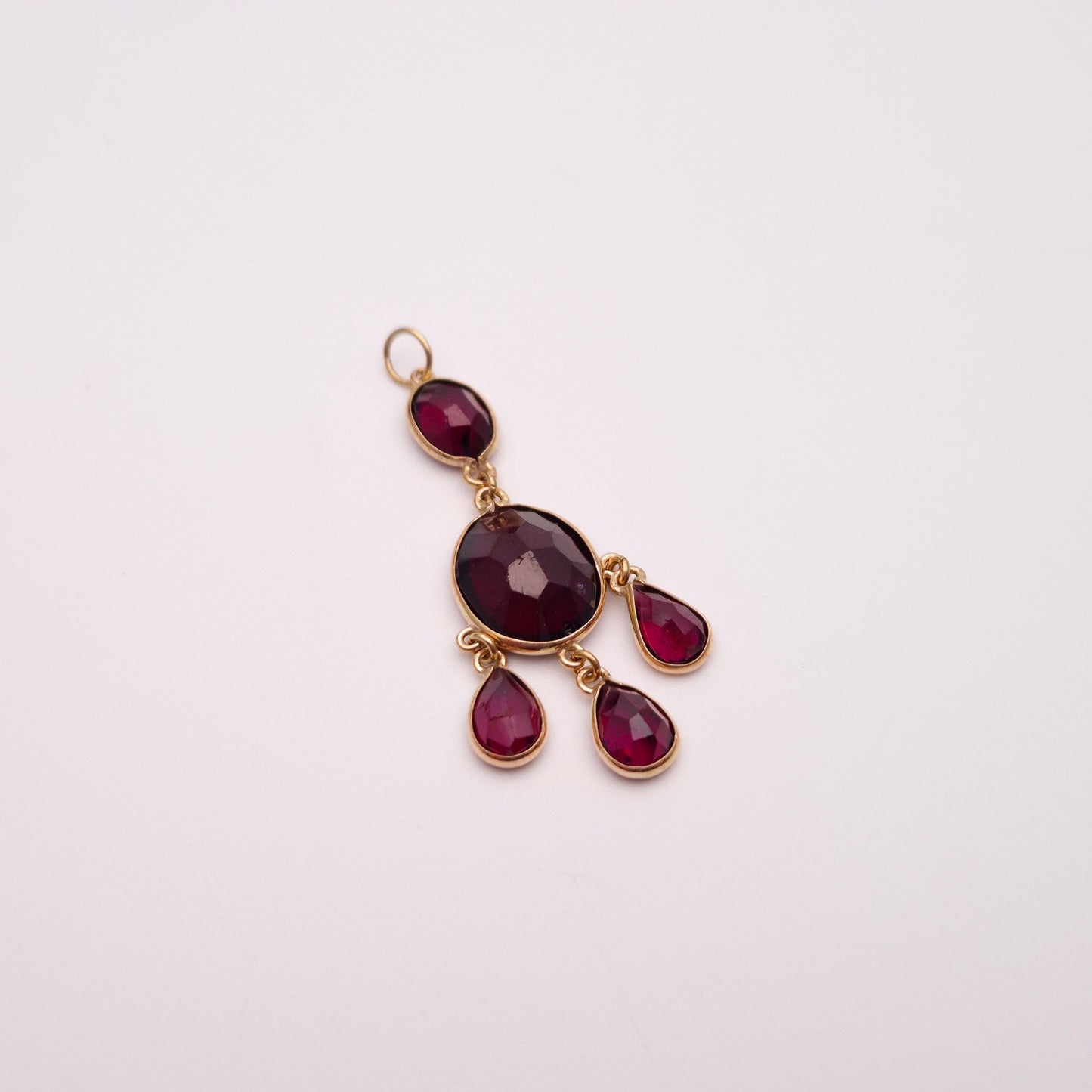 9ct Yellow Gold Vintage Five Stone Garnet Chandelier Pendant only