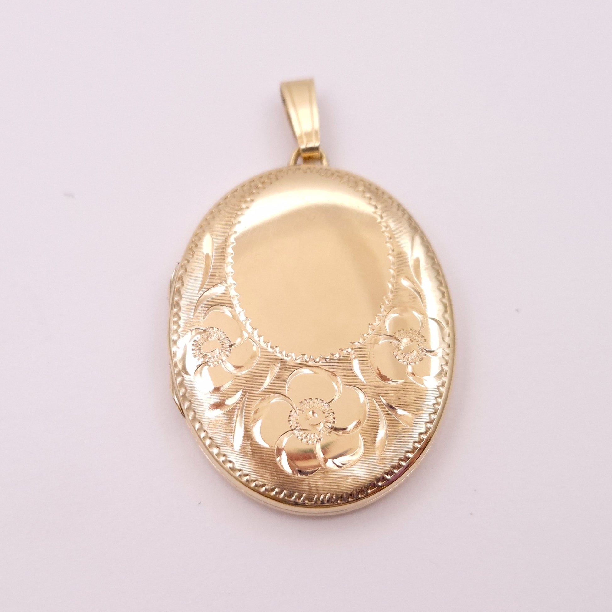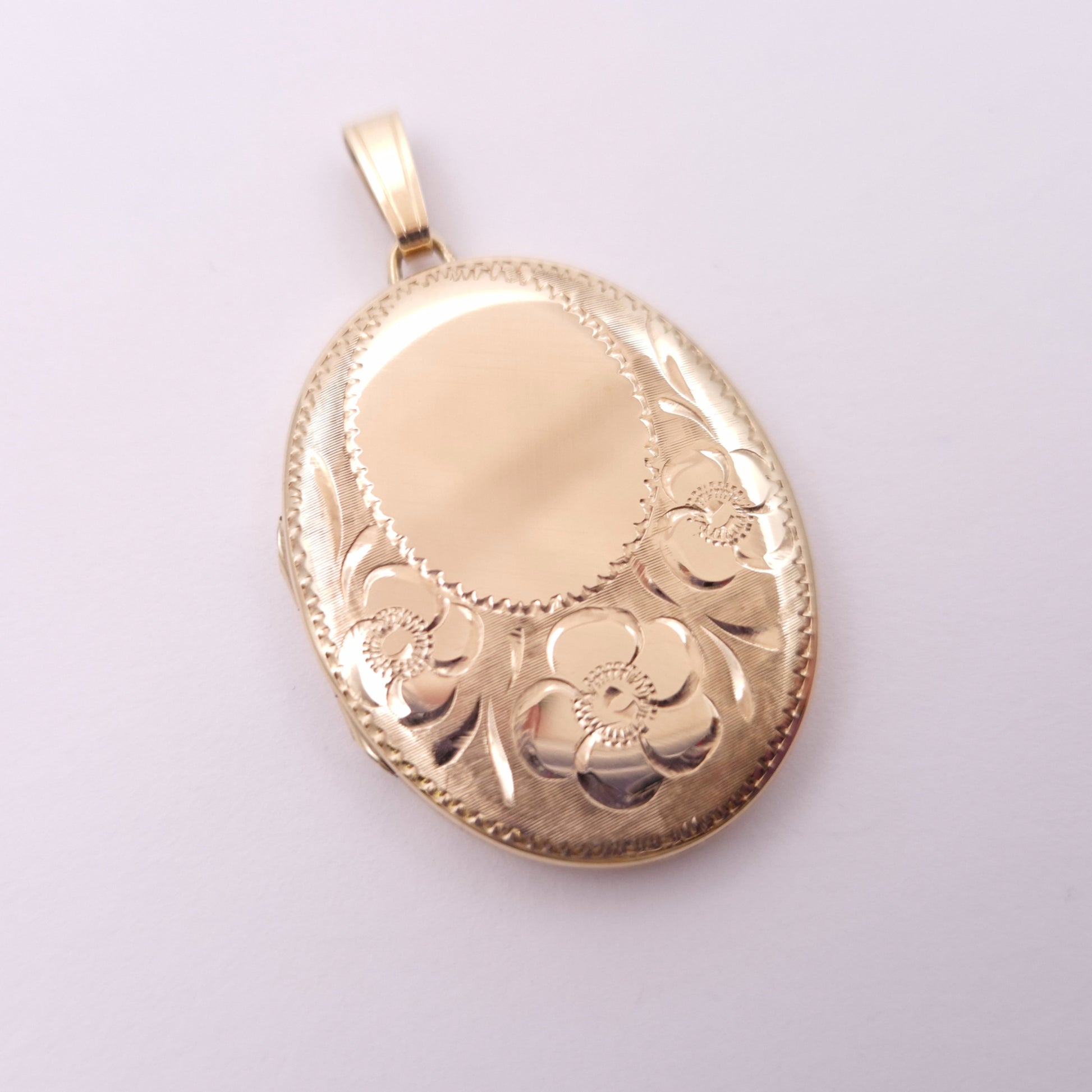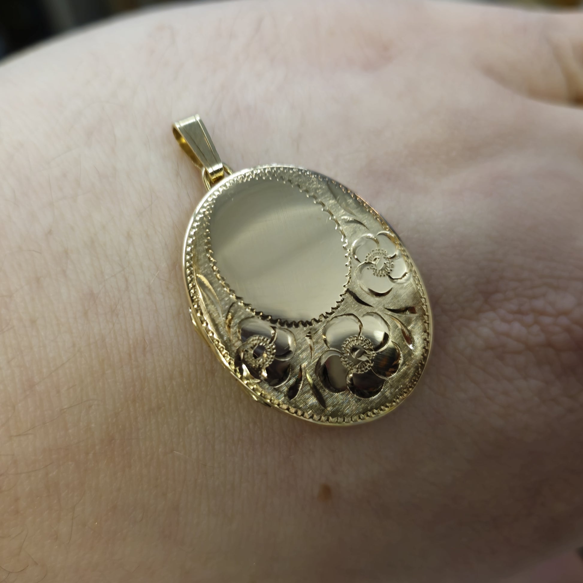 9ct Yellow Gold Vintage Floral Patterned oval locket