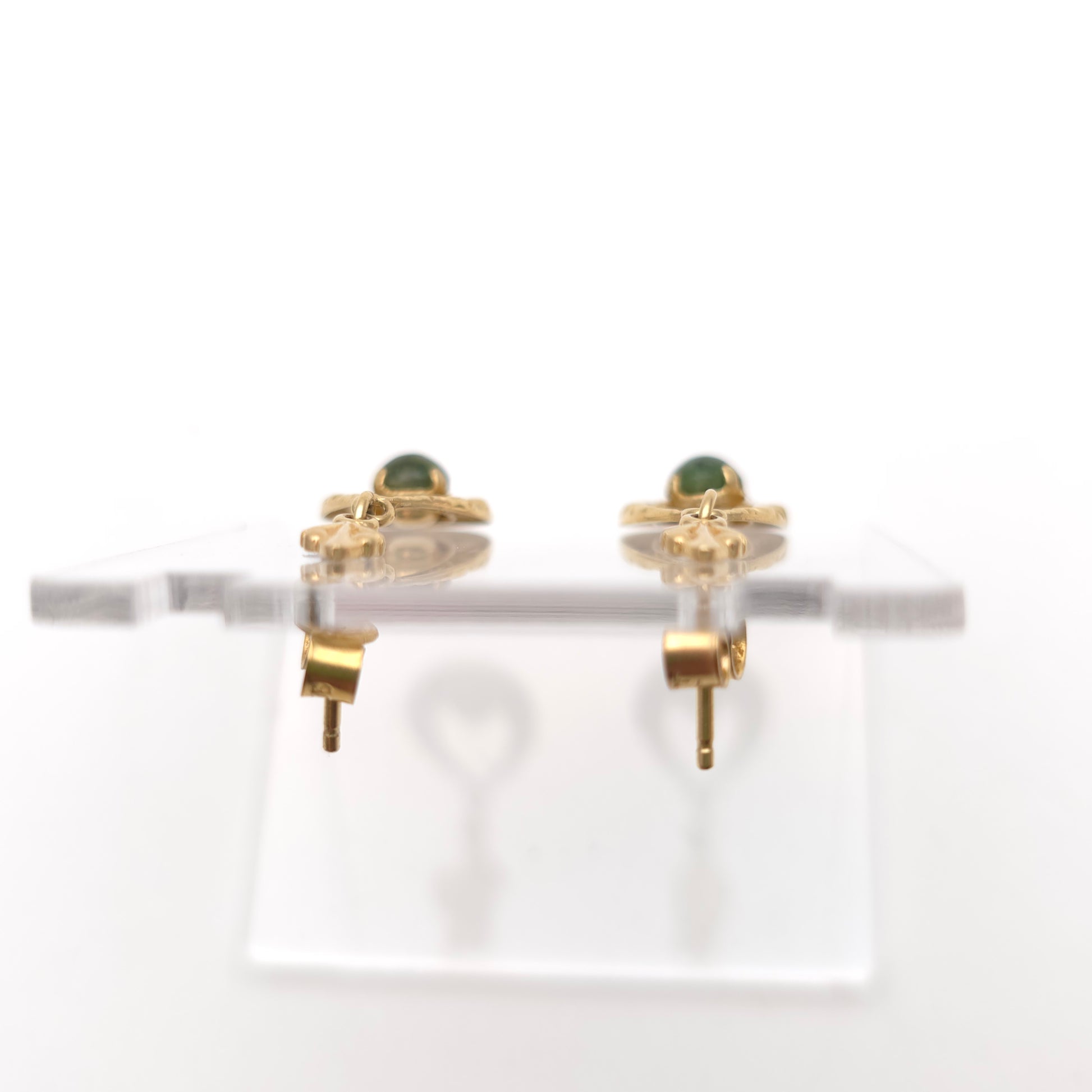 9ct Yellow Gold Vintage Green Stone Celtic Style Openwork Drop Earrings