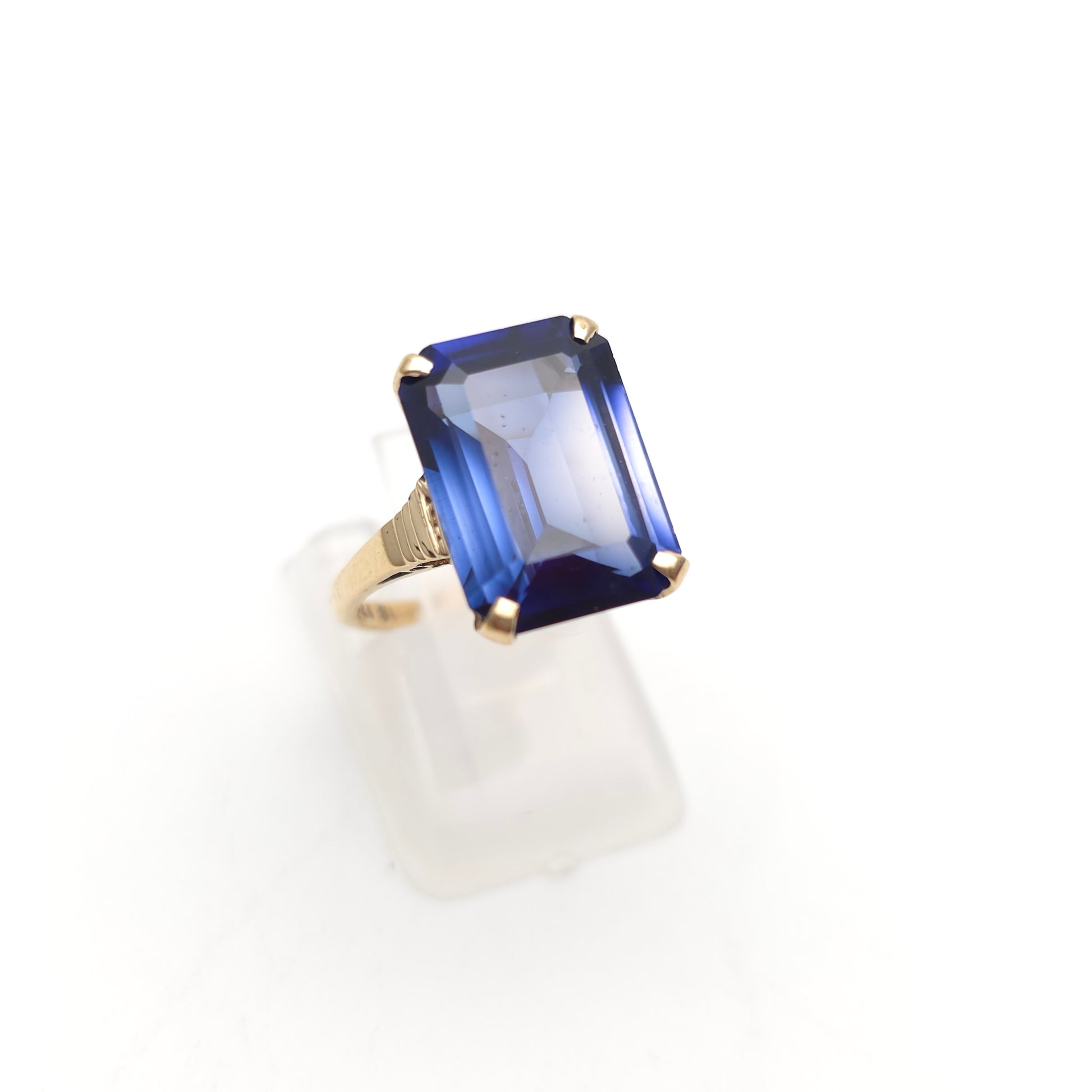 9ct Yellow Gold Vintage Large Blue Paste Stone Statement Cocktail Ring