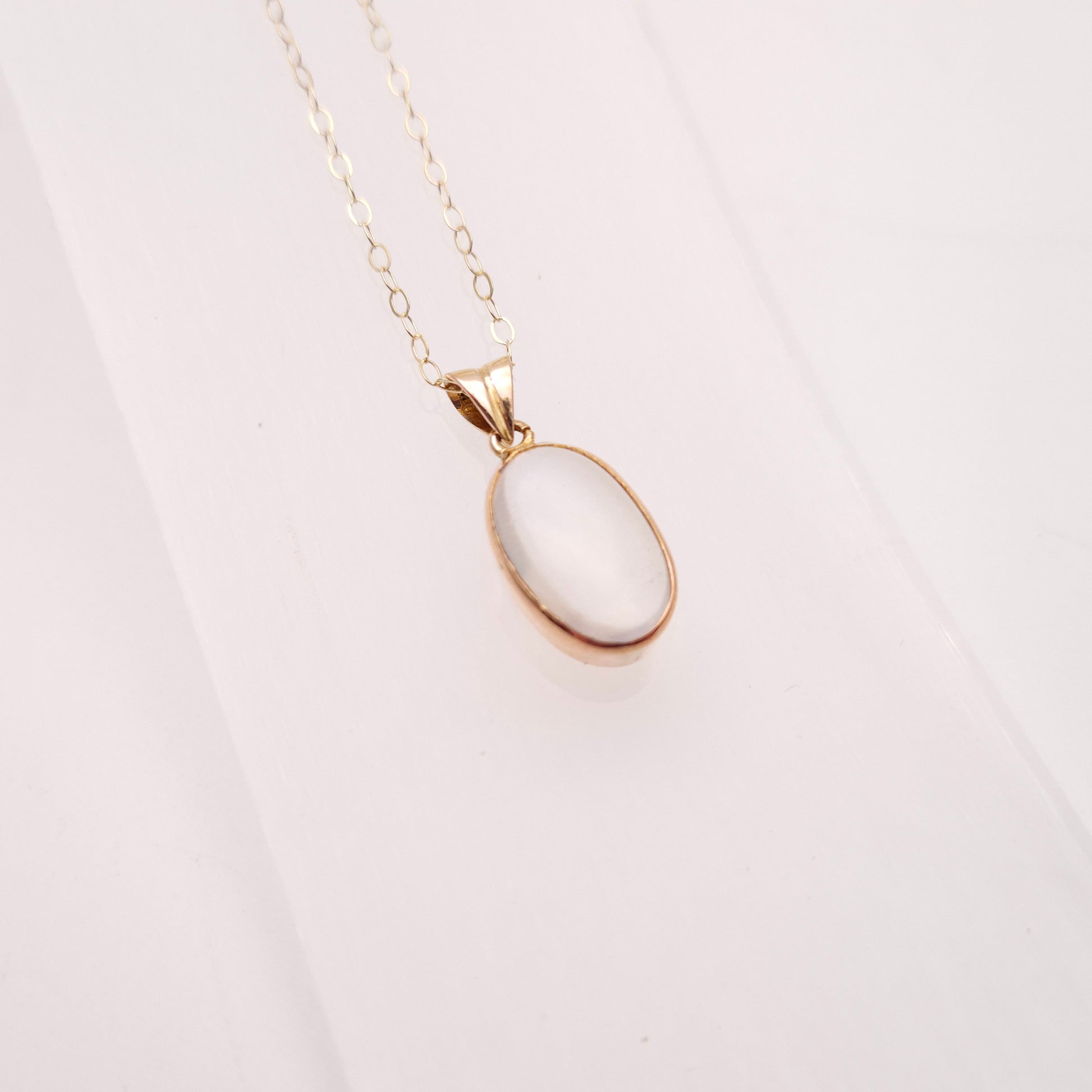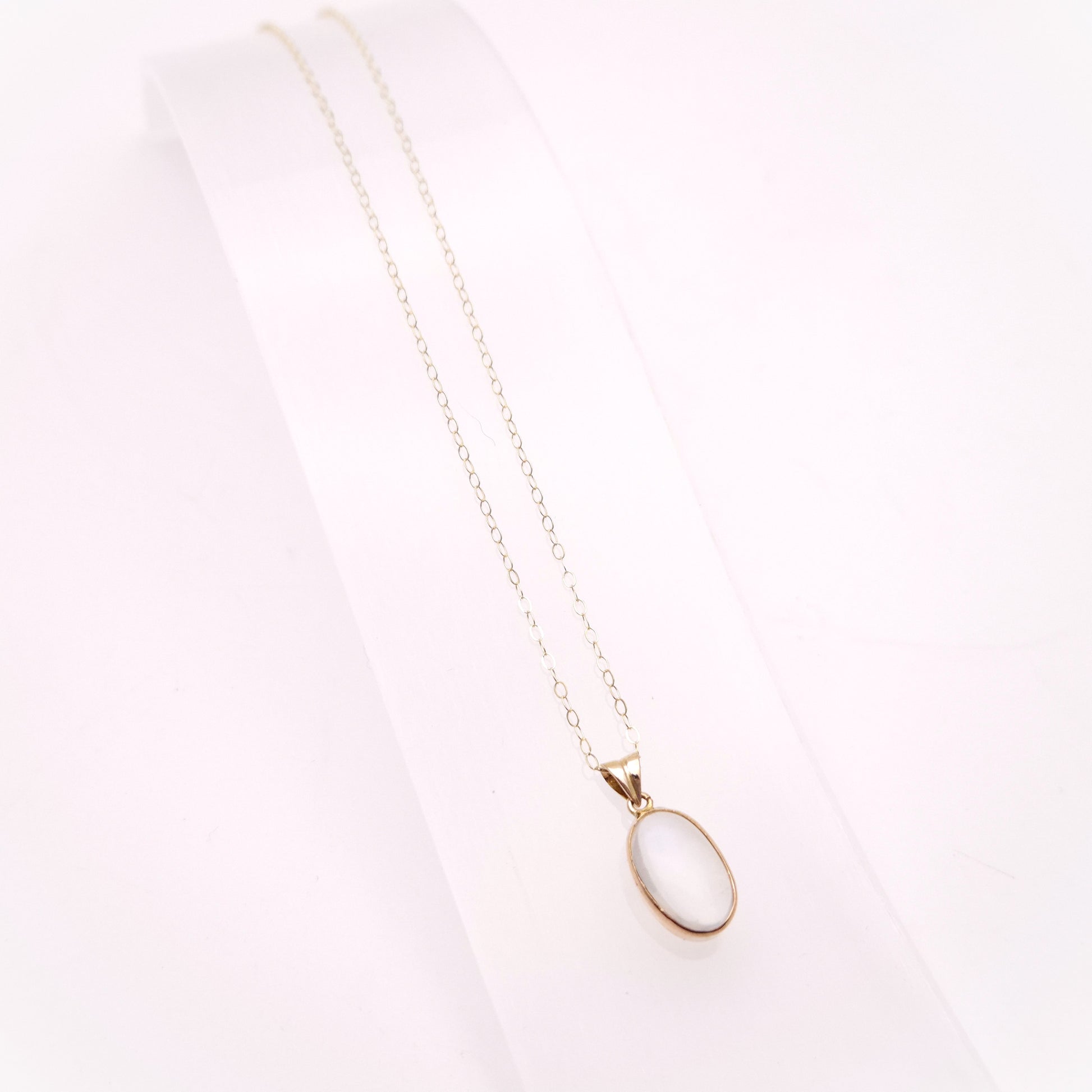 9ct Yellow Gold Vintage Oval Cabochon Moonstone Solitaire Pendant Necklace
