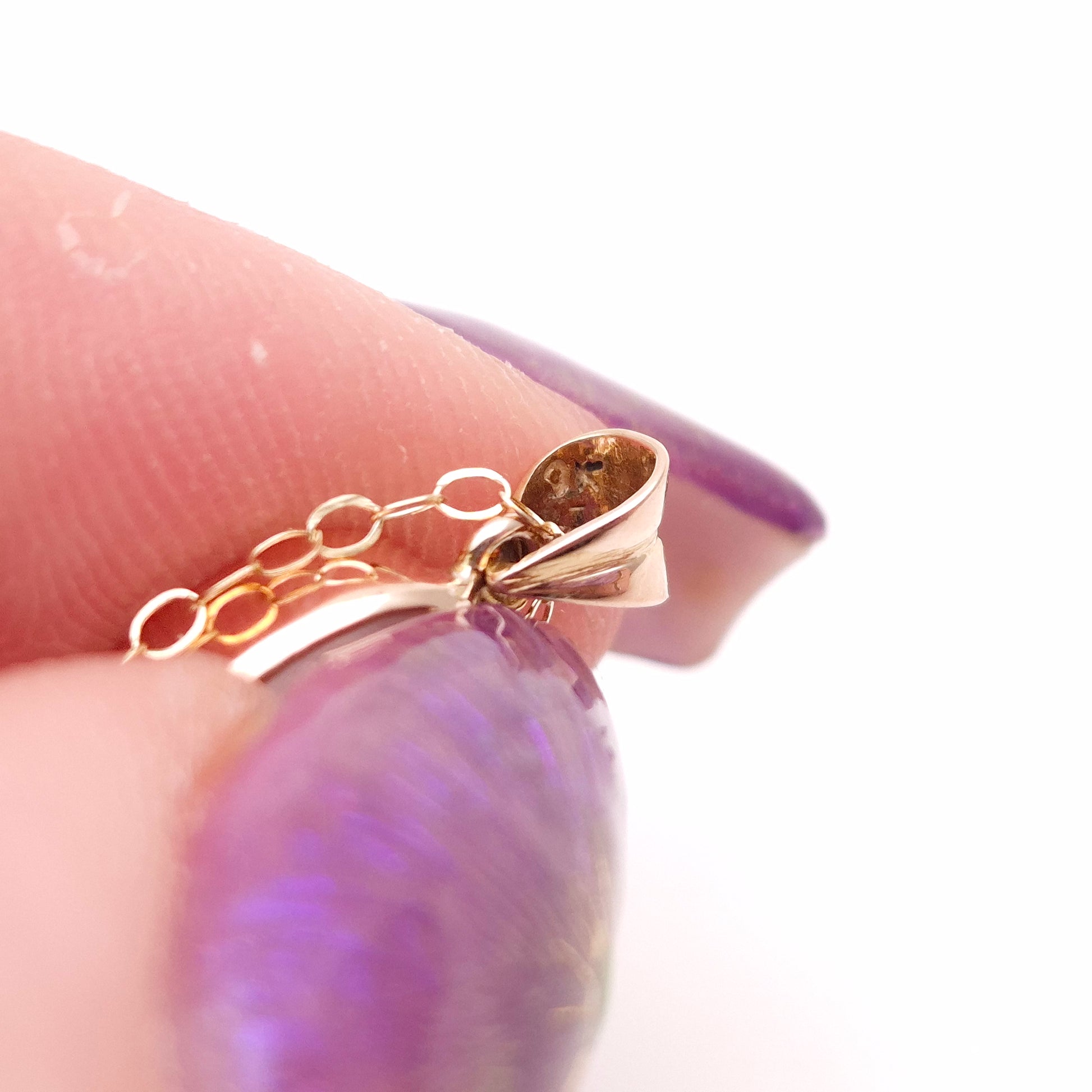 This exquisite necklace is a captivating and mystical piece, embodying the delicate beauty favoured in vintage jewellery designs. It is crafted in warm 9ct yellow gold, offering a gentle, complementary setting for the luminous gemstone.