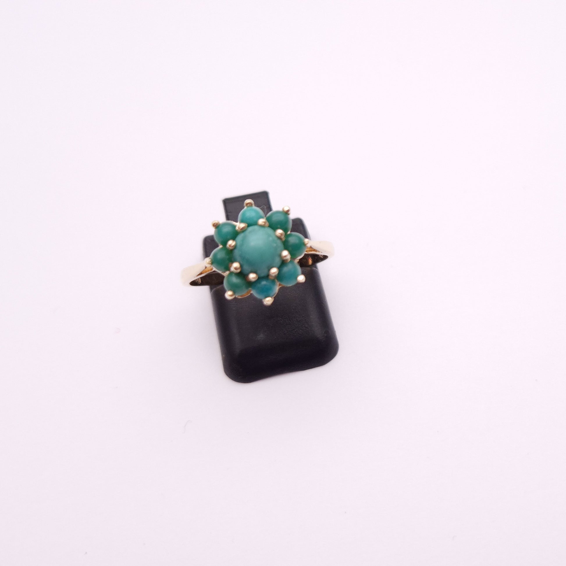 9ct Yellow Gold Vintage Turquoise Cluster Ring