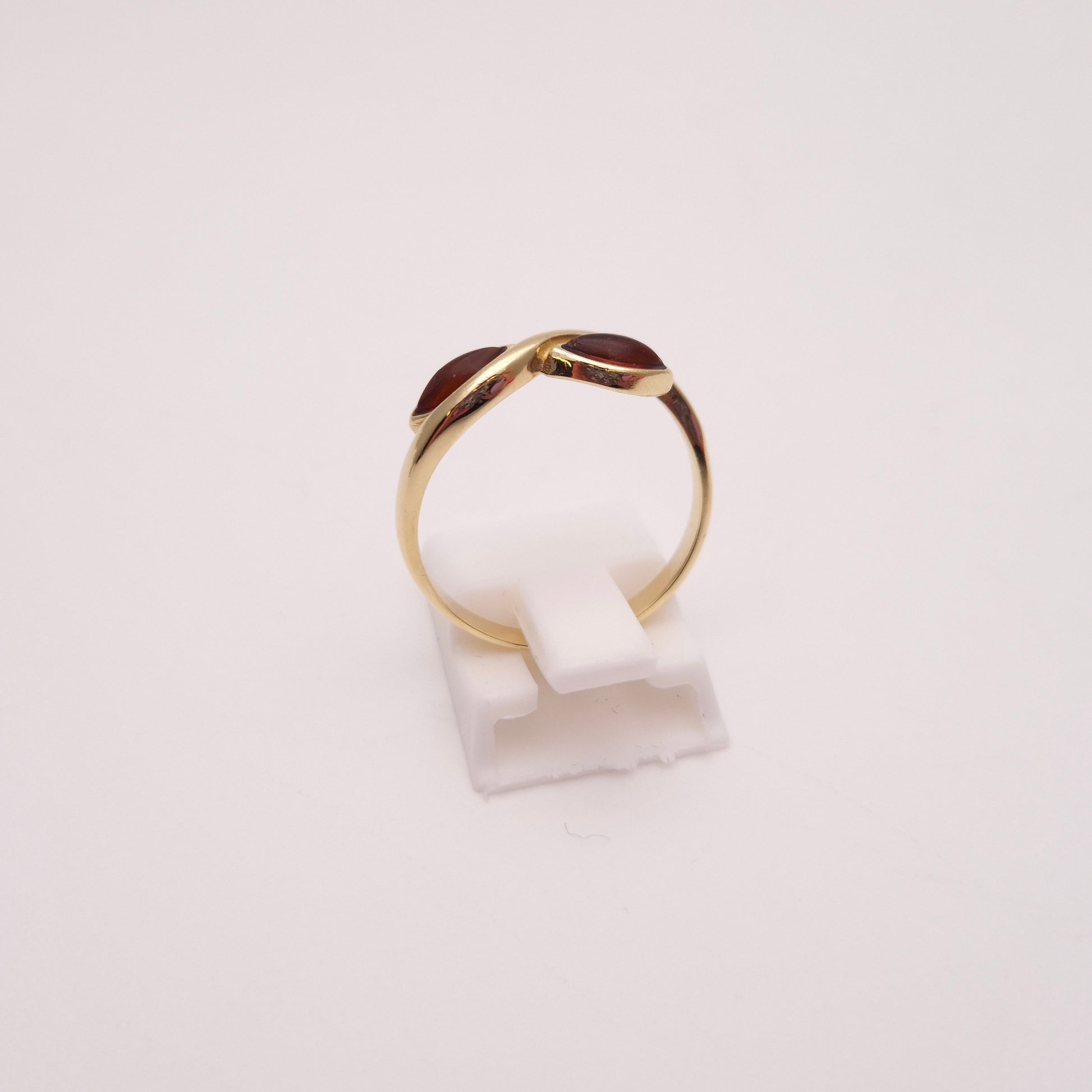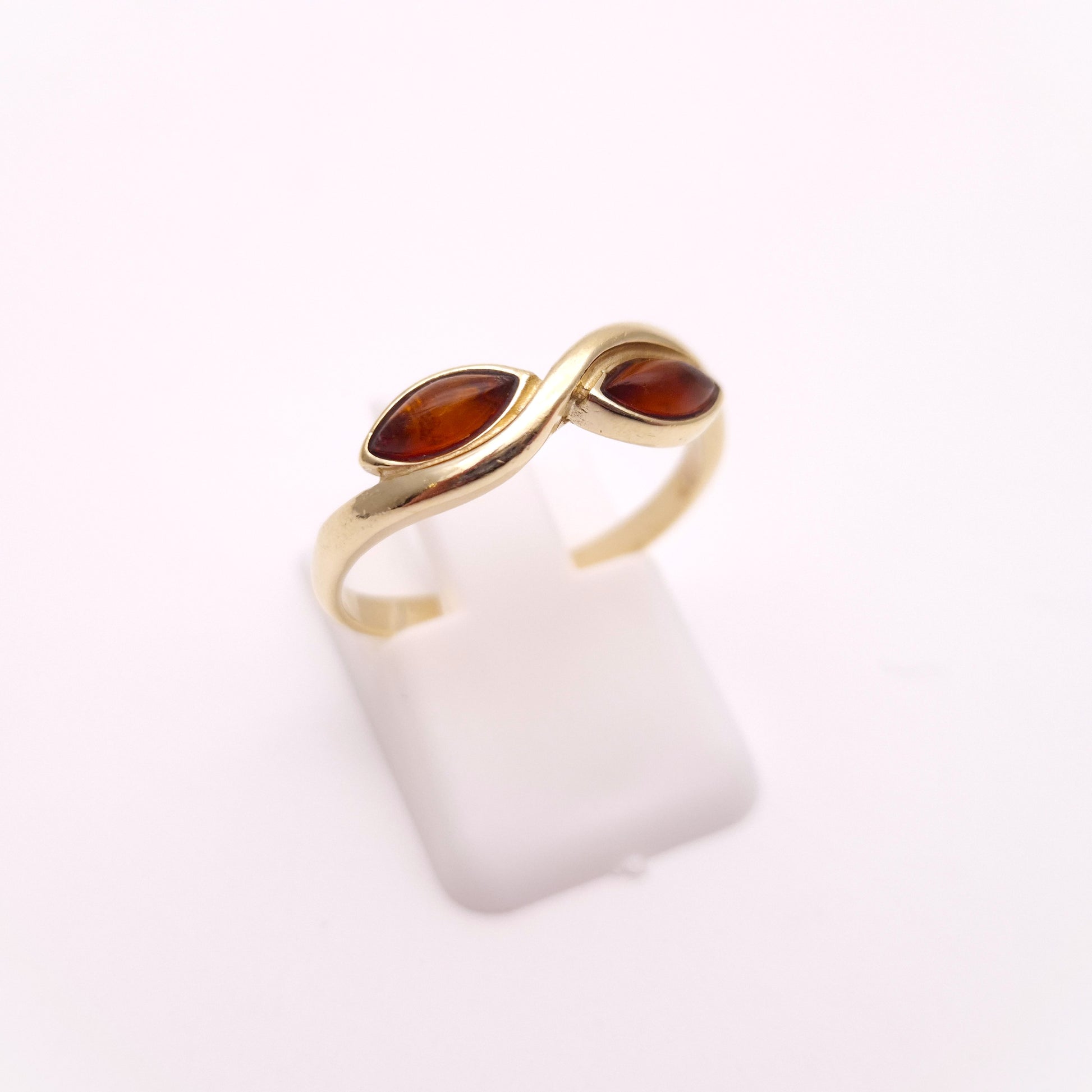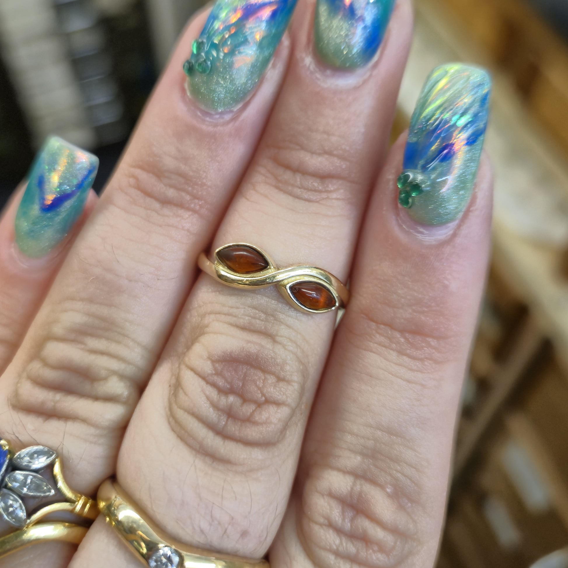 The amber stones themselves are a warm, honey-toned cognac colour, perfectly complementing the yellow gold setting giving a warm feel. This ring is a timeless piece that combines a graceful design with the natural, organic beauty of amber. It's a perfect choice for someone who loves vintage style and unique, natural gemstones.