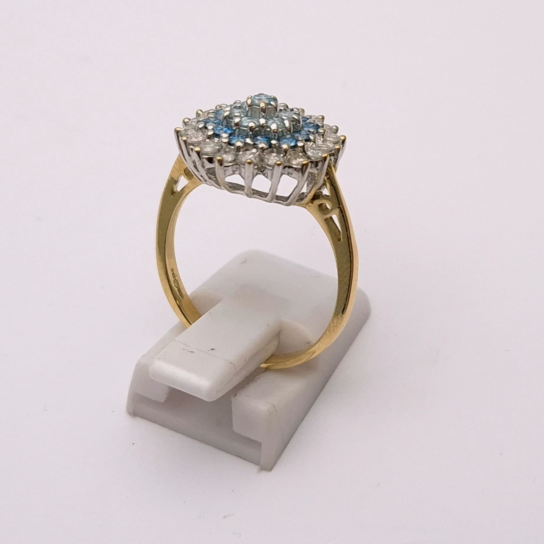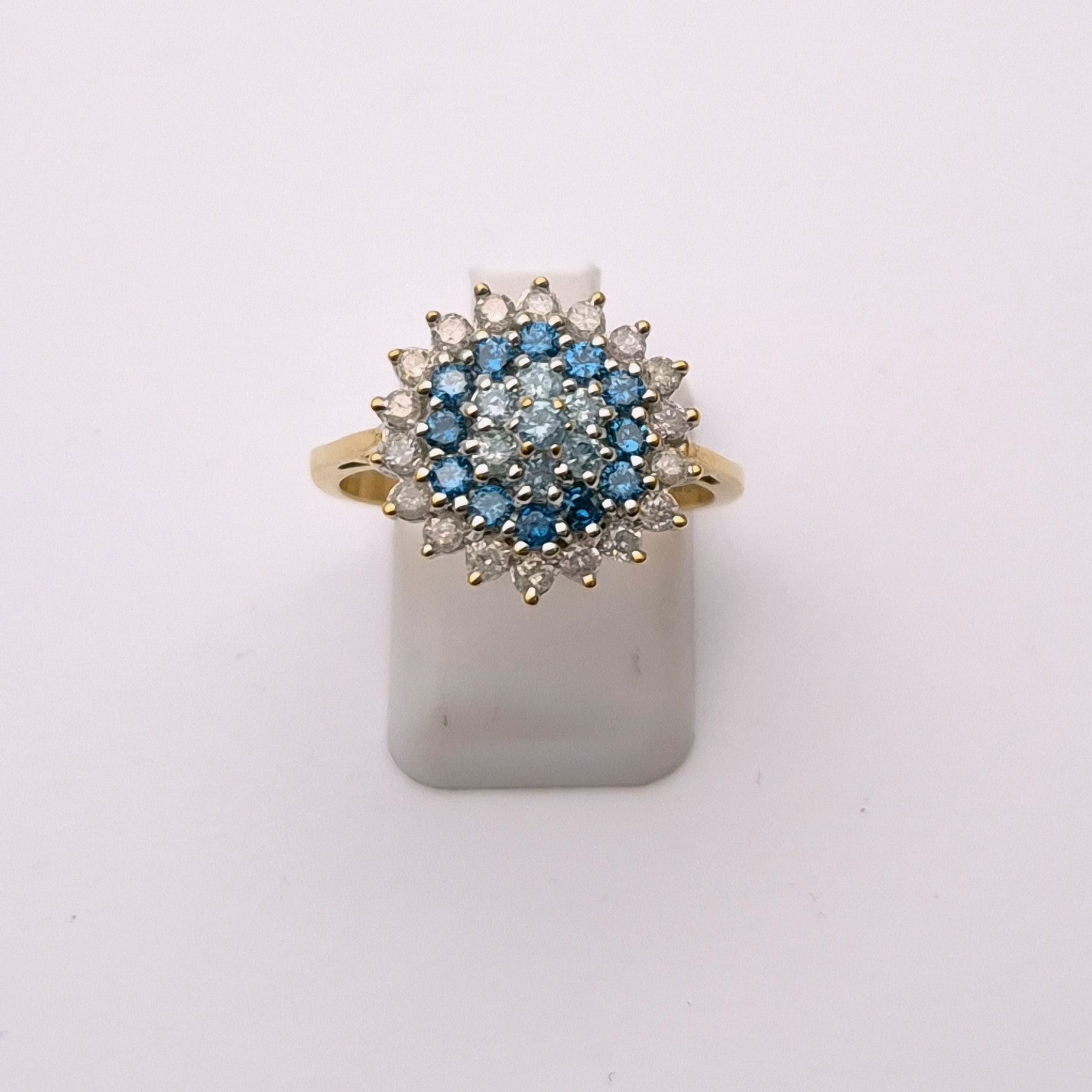 9ct Yellow Gold White and Blue Diamond Cluster Ring