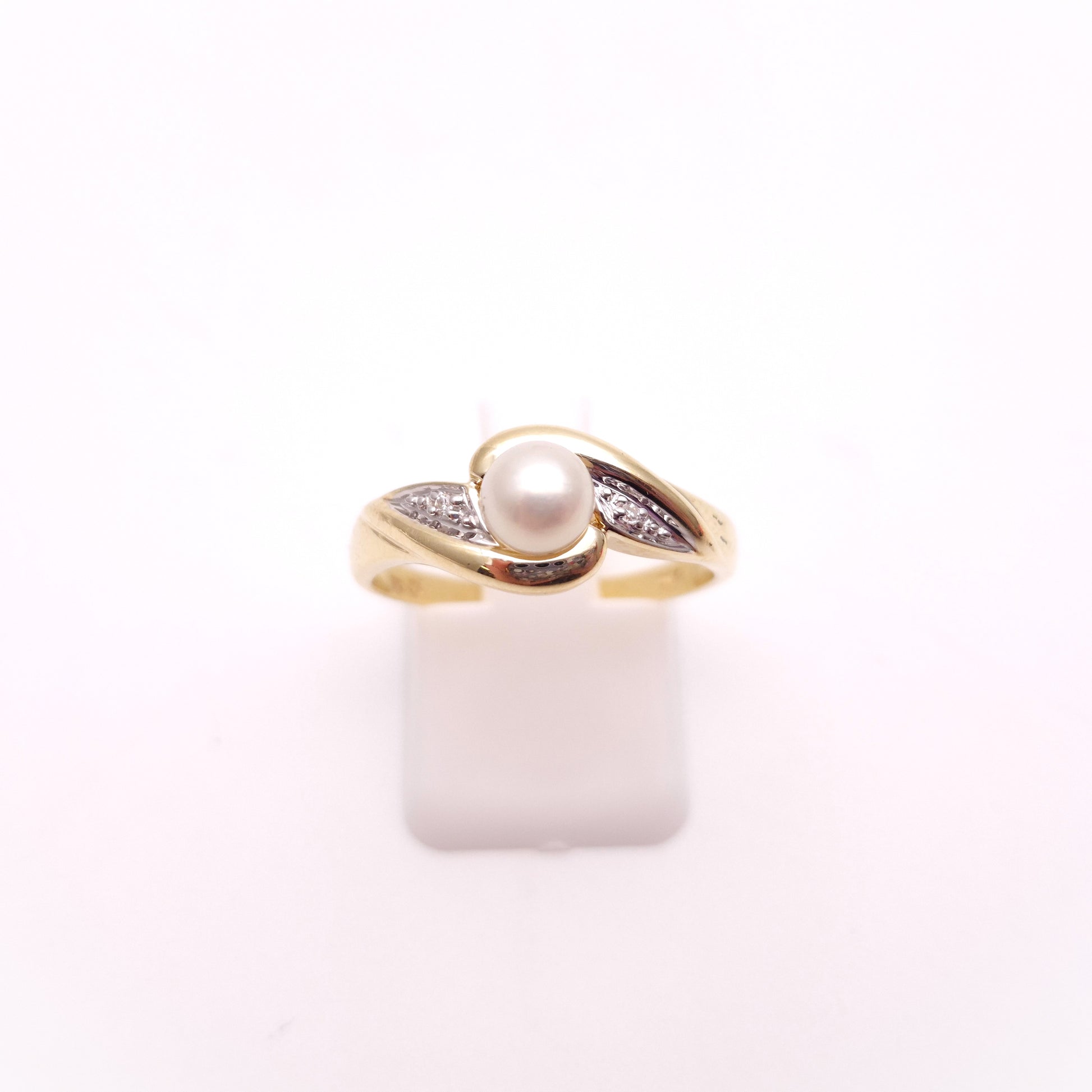 9ct Yellow gold White Pearl and Diamond Set Shoulders Swirl Ring